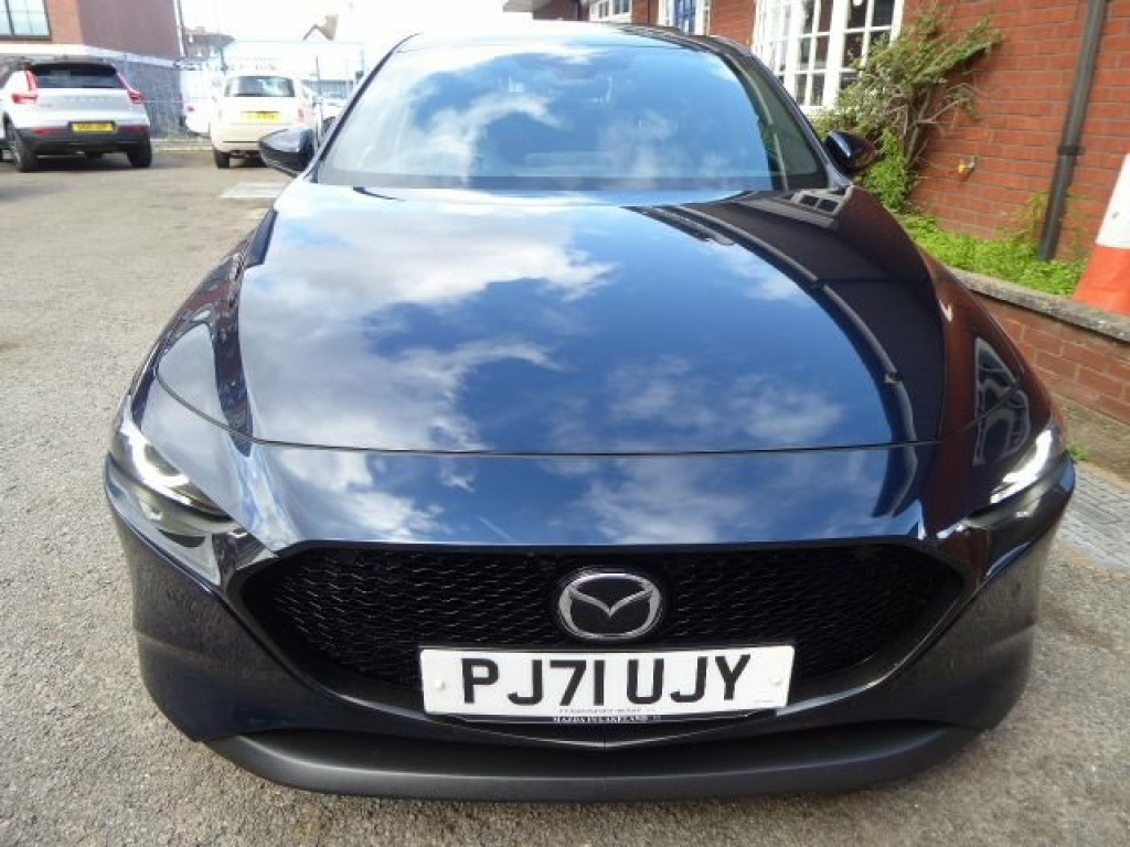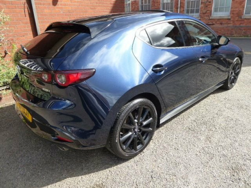 This 2022 Mazda3 e SKYACTIV-X Sport Lux is a superb example, having had only one owner and boasting a clear vehicle history check.  As a Euro 6 compliant model, it features a responsive 2.0L petrol engine and is presented in the desirable Sport Lux trim.  You'll appreciate the convenience of front and rear parking sensors, along with Mazda Radar Cruise Control for effortless journeys.  The striking 18in Black Alloy Wheels complement the car's sleek design, while the power tilt and slide sunroof adds an extra touch of refinement.  Furthermore, Blind Spot Monitoring with Rear Cross Traffic Alert provides enhanced safety and awareness.  This Mazda3 offers impressive performance, achieving 0-60mph in just 8.1 seconds, demonstrating its dynamic capability. Its fuel economy is a notable highlight, achieving an excellent 53 mpg, which indicates it is more economical than many similar vehicles. The car also benefits from low CO2 emissions, making it an environmentally conscious choice. Practicality is also key, with a large boot space offering ample room for luggage or shopping, further enhancing its appeal as a versatile and well equipped hatchback. 12V Electrical Power Outlet, 18in Alloy Wheels - Black, 2 USB Charging Ports, 7in Colour TFT Display, 8.8in TFT Colour Centre Display, ABS - Anti Lock Braking System, Airbags - Front Dual Stage Driver and Si, AM-FM-DAB Radio with 8 Speakers, Apple CarPlay and Android Auto, B-Pillar Garnish - Piano Black, Blind Spot Monitoring with Rear Cross Tr, Bumper - Front Body Coloured with Black , Bumper - Rear Colour Coded with Gloss Bl, Chrome Interior Trim Accents - Steering , Colour Active Driving Display - Colour H, Door Mirrors - Electrically Adjustable-H, Door Mirrors with Auto Dimming Function, Door Pockets - Driver - Front Passenger , Door Trim - Black Cloth Insert, Driver Attention Alert - DA