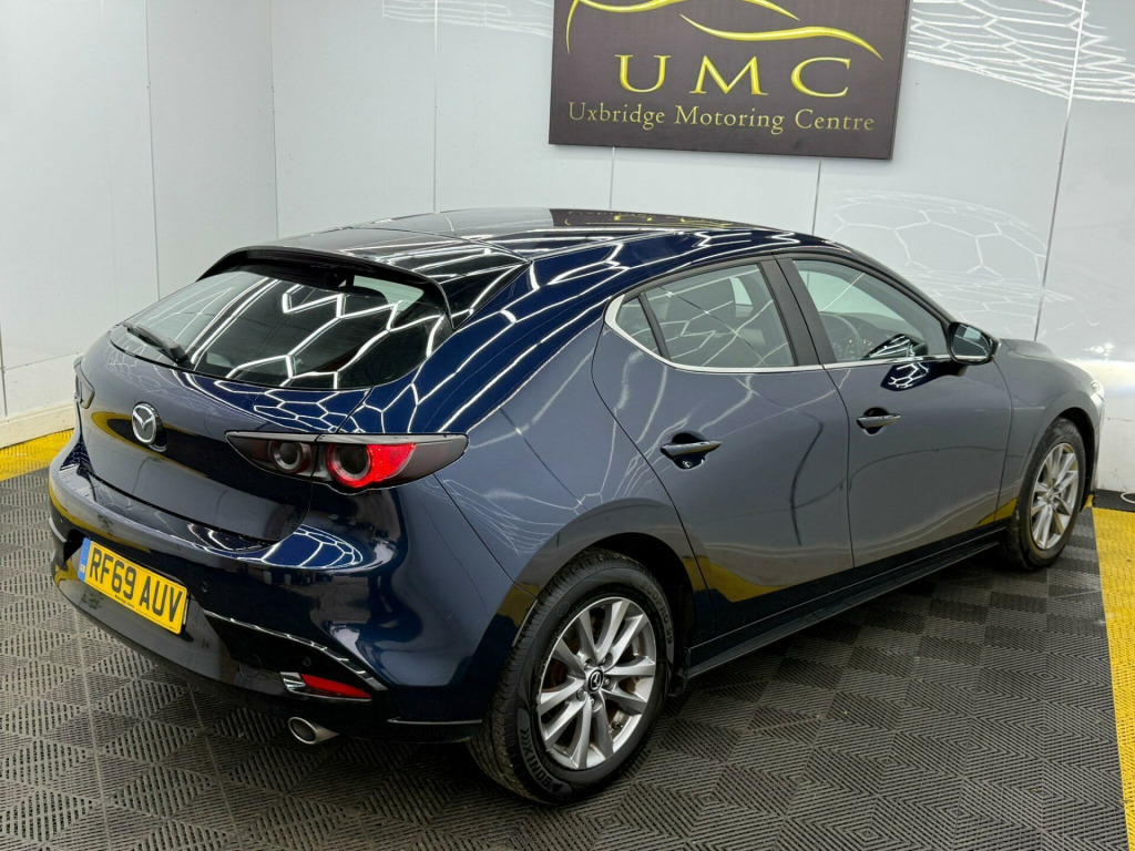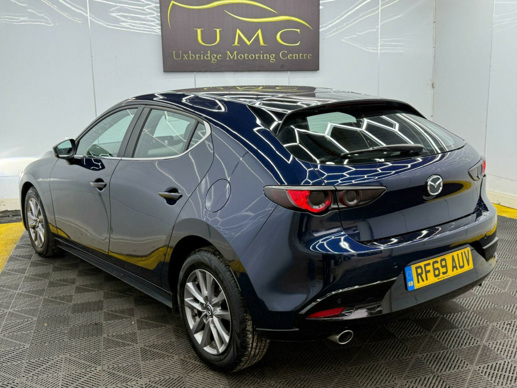 This 2020 Mazda3 SKYACTIV-G SE-L offers an excellent blend of style and practicality, making it a smart choice for any driver. Powered by a responsive 2.0 litre petrol engine and meeting Euro 6 emission standards, this SE-L trim model is designed for efficient and enjoyable journeys. You'll appreciate the convenience of integrated Bluetooth for seamless connectivity, manual air conditioning to keep you comfortable, and dusk sensing headlights that automatically illuminate when needed. Parking is made easier with rear parking sensors, and the Colour Active Driving Display provides key information directly in your line of sight.The Mazda3 stands out with its generous boot space, offering ample room for shopping or luggage, and its low CO2 emissions contribute to a more environmentally conscious drive. Furthermore, its low insurance group rating means more affordable ownership, a significant advantage over many other vehicles in its class. This Mazda3 also boasts an acceleration of 0 to 62 miles per hour in just 10.4 seconds, demonstrating a capable performance that complements its efficient design.To add to your peace of mind, we offer a 3-month warranty, 12 months of AA Breakdown Cover, and a minimum 6 months of both MOT and service. Your satisfaction and the longevity of your investment are our top priorities.Explore financing options by contacting us at 07405357469. The financing package includes a 12-month AA Breakdown Cover, and while a minimum 6 months MOT is provided (though not applicable to all vehicles), please be aware that an admin charge may apply.Our commitment to customer satisfaction extends to flexible viewing hours until late, allowing you ample time to inspect and appreciate this vehicle. Additionally, we provide warranty and delivery options to cater to your preferences. If you have a vehicle for exchange, we are open to considering it.To ensure transparency and clarity, we encourage customers to verify the car's specifications, advert description, and mileage with our salesperson before finalizing the purchase. in alloy wheels - silver metallic, 7in colour tft display, 8.8in tft colour centre display, abs - anti lock braking system, am-fm-dab radio with 8 speakers, air conditioning - manual, apple carplay and android auto, blind spot monitoring with rear cross traffic alert, bumper - rear gloss black lower moulding, colour active driving display - colour head-up display, dsc - dynamic stability control, daytime running lights, door mirrors - electrically adjustable-heated-auto power-folding, door pockets - driver and front passenger, door trim - cloth, driver attention alert - daa, dual front airbags, ebd - electronic brakeforce distribution, electric power assisted steering - epas, electric windows - front and rear with one-touch auto down - up, electronic parking brake with auto-disengage function - auto-hold function, emergency stop signalling system - ess, emergency tyre repair kit, engine start-stop button, front fog lights - led, front knee airbag for driver, front passenger airbag cut-off switch, front side airbags, front smart city brake support, front and rear courtesy lamps, front and rear curtain airbags, g-vectoring control plus - gvc plus, gear shift - leather-wrapped, gear shift indicator, glovebox with light, grab handles - front passenger and two rear with coat hooks, grille - dark metallic finish signature wing, grille - gloss black finish, headlights - coming-leaving home, headlights - dusk-sensing lights, headlights - led with auto headlight levelling, high beam control, hill launch assist - hla, isofix child seat anchorage for outer rear seats, integrated bluetooth, intelligent speed assist, interior led lighting, lane keep assist with lane departure warning system, luggage compartment - light, mazda radar cruise control, multimedia commander, rain-sensing front wipers, rear fog light, rear parking sensors, rear roof spoiler - gloss black, rear seats - folding centre armrest equipped with two cup holders, remote central locking with deadlocking and automatic door lock when driving, roof mounted sunglasses holder, satellite navigation system, seatbelt reminder audible warning - driver-passenger and rear seat, seatbelts - front - 3 point - elr x 2 with pre-tensioners, seatbelts - rear - 3-point - elr, seats - 60-40 split folding rear, seats - drivers manual slide - recline - height and lumbar adjustment, seats - front passenger manual slide - recline and height adjustment, steering wheel - leather wrapped, steering wheel - mounted audio and bluetooth controls, steering wheel - tilt and height adjustment, storage spaces - front centre console with two cupholders, sunvisors - drivers and passengers with covered vanity mirror-ticket holder, tcs - traction control system, tail lights - led rear combination lights with led rear turn lights, thatcham accredited alarm and immobiliser, three height adjustable rear head restraints, trip computer, tyre pressure monitoring system, usb charging port, wipers - rear adjustable speed with intermittent