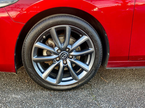in alloy wheels - grey metallic, bumper - front body coloured with black - bright lower bezel, bumper - rear gloss black lower moulding, door mirrors - electrically adjustable-heated-auto power-folding, door mirrors with auto dimming function, electric windows - front and rear with one-touch auto down - up, emergency tyre repair kit, grille - dark metallic finish signature wing, grille - gloss black finish, privacy glass - rear and rear side windows, rear roof spoiler - gloss black, 7in colour tft display, 8.8in tft colour centre display, am-fm-dab radio - single cd-mp3 with 8 speakers, apple carplay and android auto, integrated bluetooth, satellite navigation system, usb charging port, abs - anti lock braking system, dsc - dynamic stability control, dual front airbags, ebd - electronic brakeforce distribution, electronic parking brake with auto-disengage function - auto-hold function, emergency stop signalling system - ess, front knee airbag for driver, front passenger airbag cut-off switch, front side airbags, front smart city brake support, front and rear curtain airbags, g-vectoring control plus - gvc plus, hill launch assist - hla, isofix child seat anchorage for outer rear seats, lane keep assist with lane departure warning system, remote central locking with deadlocking and automatic door lock when driving, seatbelt reminder audible warning - driver-passenger and rear seat, seatbelts - front - 3 point - elr x 2 with pre-tensioners, seatbelts - rear - 3-point - elr, smart keyless entry, tcs - traction control system, thatcham accredited alarm and immobiliser, wipers - rear adjustable speed with intermittent, blind spot monitoring with rear cross traffic alert, colour active driving display - colour head-up display, driver attention alert - daa, electric power assisted steering - epas, gear shift indicator, intelligent speed assist, mazda radar cruise control, multimedia commander, parking sensors - front and rear, reversing camera, trip computer, tyre pressure monitoring system, door pockets - driver and front passenger, door trim - cloth, dual-zone climate control air conditioning, engine start-stop button, frameless auto dimming rear view mirror, front and rear courtesy lamps, gear shift - leather-wrapped, glovebox with light, grab handles - front passenger and two rear with coat hooks, interior led lighting, luggage compartment - light, rain-sensing front wipers, rear fog light, rear seats - folding centre armrest equipped with two cup holders, roof mounted sunglasses holder, seats - 60-40 split folding rear, seats - drivers manual slide - recline - height and lumbar adjustment, seats - front passenger manual slide - recline and height adjustment, steering wheel - leather wrapped, steering wheel - mounted audio and bluetooth controls, steering wheel - tilt and height adjustment, storage spaces - front centre console with two cupholders, sunvisors - drivers and passengers with covered vanity mirror-ticket holder, three height adjustable rear head restraints, front fog lights - led, headlights - adaptive front lighting system, headlights - coming-leaving home, headlights - dusk-sensing lights, headlights - led with auto headlight levelling, high beam control, led signature daytime running lights, signature led lights, signature led rear combination lights with led rear turn lights