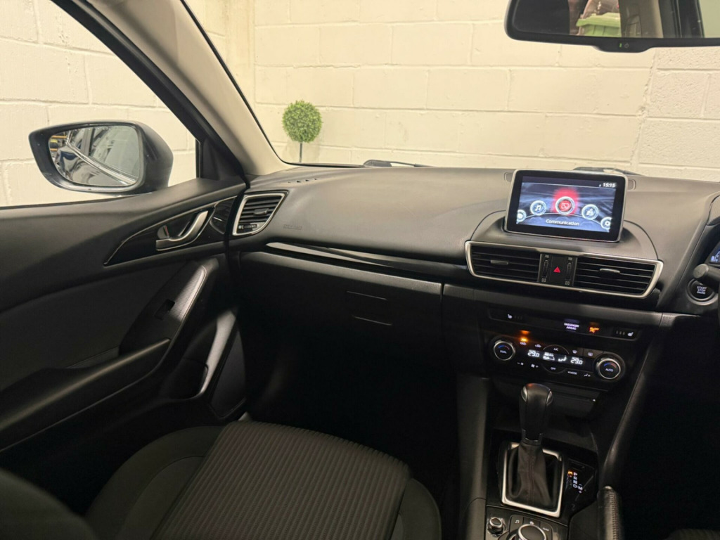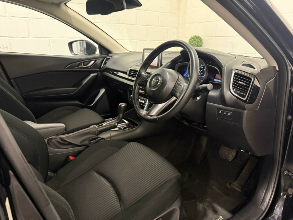 This 2016 Mazda3 SKYACTIV-G SE-L Nav is a well maintained example, offering a compelling blend of style and practicality. Powered by a responsive 2.0 litre petrol engine, this SE-L Nav trim level comes equipped with essential features designed for your convenience and comfort. Enjoy peace of mind with rear parking sensors and a combined Bluetooth system for seamless phone and audio streaming. The vehicle also boasts Bi-Xenon headlights, which automatically activate at dusk, ensuring optimal visibility in varying light conditions. Inside, you'll appreciate the dual zone climate control, allowing you to set individual temperatures for driver and passenger.The Mazda3 stands out with its generous boot space, making it ideal for everyday errands and longer journeys alike. Its acceleration from 0 to 62 miles per hour in 10.4 seconds demonstrates a capable performance for its class. Furthermore, this particular model benefits from a low insurance group, which can help to reduce your running costs. These highlights collectively indicate that this Mazda3 offers a superior ownership experience compared to many other vehicles in its segment. v power socket - front, 16in alloy wheels, abs - anti lock braking system, adjustable speed limiter, aha app and stitcher app integration, air conditioning - dual zone climate control, airbags - curtain front and rear, airbags - driver, airbags - front passenger, airbags - front passenger deactivation system, armrest - front centre with storage box, armrest - rear centre with cupholders x2, audio systems - am-fm radio-cd player, auto dimming rear view mirror, body coloured door mirrors, combined bluetooth phone and audio streaming system, cruise control, cupholder - front x2, dsc - dynamic stability control, dashboard decoration panel - piano black, deadlocking, door handles - body coloured, door mirrors - electrically adjustable-heated-folding, door pockets - front, dusk sensing automatic headlights, electric windows - front and rear with one touch auto up and down on drivers side, emergency stop signalling system - ess, engine start-stop button, front fog lights, front side airbags, gear knob - leather, glovebox illumination, grab handles - front passenger and two rear with coat hooks, handbrake - leather wrapped, head restraints - rear, headlights - automatic levelling, headlights - bi-xenon, headlights - cleaning, hill hold assist, isofix child seat anchorage for outer rear seats, immobiliser, interior light dome with integral spot light, led daytime running lights, luggage compartment - light, multimedia commander, overhead console with sunglassess holder, power assisted steering - electronic, privacy glass - rear and rear side windows, rain-sensing front wipers, rear lights - led, rear parking sensors, remote central locking, scr - secondary collision reduction, satellite navigation system, seatback pocket - passenger side, seatbelt reminder for front and rear, seats - 60-40 split folding rear, seats - drivers dial reclining and height adjustment, seats - drivers manual lumbar adjustment, seats - front heated, shark fin antenna, smart city brake support, speakers x6, spoiler - rear roof, steering wheel - leather, steering wheel - mounted remote audio controls, steering wheel - tilt and height adjustment, sunvisors - drivers and passengers with covered vanity mirror-ticket holder-illumination, tcs - traction control system, tailpipes - dual chrome, thatcham category 1 alarm and immobiliser, touch screen - 7in colour tft, trip computer, tyre pressure monitoring system, tyre repair kit, usb and aux connection, ipod connectivity
