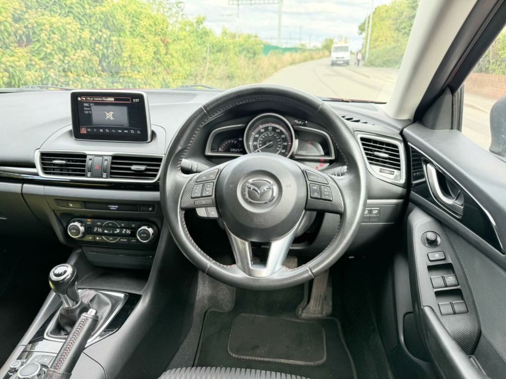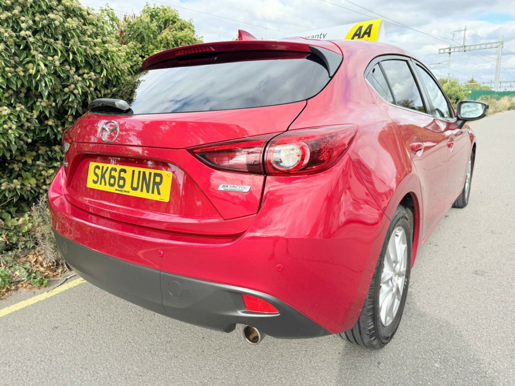 This 2016 Mazda3 SKYACTIV-G SE-L Nav offers a refined driving experience with its efficient 2.0 litre petrol engine. As a SKYACTIV-G SE-L Nav model, it comes equipped with the SE-L Nav trim, providing a well appointed interior. You can enjoy the comfort of front heated seats, perfect for cooler mornings, and the convenience of dual zone climate control to keep everyone comfortable. Navigation is made simple with the integrated system, and the combined Bluetooth phone and audio streaming allows for seamless connectivity on the go.The Mazda3 also features Bi-Xenon headlights for superior visibility, complemented by dusk sensing automatic headlights that adjust to changing light conditions. These features demonstrate how this Mazda3 is designed to enhance your journey, offering a higher level of comfort and convenience compared to many other vehicles in its class. The inclusion of these thoughtful details ensures a more pleasant and practical driving experience for everyday use.. 12V Power Socket - Front, 16in Alloy Wheels, ABS - Anti Lock Braking System, Adjustable Speed Limiter, Aha App and Stitcher App Integration, Air Conditioning - Dual Zone Climate Control, Airbags - Curtain Front and Rear, Airbags - Driver, Airbags - Front Passenger, Airbags - Front Passenger Deactivation System, Armrest - Front Centre with Storage Box, Armrest - Rear Centre with Cupholders x2, Audio Systems - AM-FM Radio-CD Player, Auto Dimming Rear View Mirror, Body Coloured Door Mirrors, Combined Bluetooth Phone and Audio Streaming System, Cruise Control, Cupholder - Front x2, DSC - Dynamic Stability Control, Dashboard Decoration Panel - Piano Black, Deadlocking, Door Handles - Body Coloured, Door Mirrors - Electrically Adjustable-Heated-Folding, Door Pockets - Front, Dusk Sensing Automatic Headlights, Electric Windows - Front and Rear with One Touch Auto Up and Down on Drivers Side, Emergency Stop Signalling System - ESS, Engine Start-Stop Button, Front Fog Lights, Front Side Airbags, Gear Knob - Leather, Glovebox Illumination, Grab Handles - Front Passenger and Two Rear with Coat Hooks, Handbrake - Leather Wrapped, Head Restraints - Rear, Headlights - Automatic Levelling, Headlights - Bi-Xenon, Headlights - Cleaning, Hill Hold Assist, ISOFIX Child Seat Anchorage for Outer Rear Seats, Immobiliser, Interior Light Dome with Integral Spot Light, LED Daytime Running Lights, Luggage Compartment - Light, Multimedia Commander, Overhead Console with Sunglassess Holder, Power Assisted Steering - Electronic, Privacy Glass - Rear and Rear Side Windows, Rain-Sensing Front Wipers, Rear Lights - LED, Rear Parking Sensors, Remote Central Locking, SCR - Secondary Collision Reduction, Satellite Navigation System, Seatback Pocket - Passenger Side, Seatbelt Reminder for Front and Rear, Seats - 60-40 Split Folding Rear, Seats - Drivers Dial Reclining and Height Adjustment, Seats - Drivers Manual Lumbar Adjustment, Seats - Front Heated, Shark Fin Antenna, Smart City Brake Support, Speakers x6, Spoiler - Rear Roof, Steering Wheel - Leather, Steering Wheel - Mounted Remote Audio Controls, Steering Wheel - Tilt and Height Adjustment, Sunvisors - Drivers and Passengers with Covered Vanity Mirror-Ticket Holder-Illumination, TCS - Traction Control System, Tailpipes - Dual Chrome, Thatcham Category 1 Alarm and Immobiliser, Touch Screen - 7in Colour TFT, Trip Computer, Tyre Pressure Monitoring System, Tyre Repair Kit, USB and AUX Connection, iPod Connectivity. Full service history