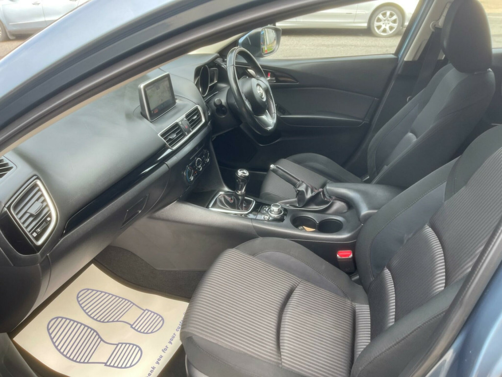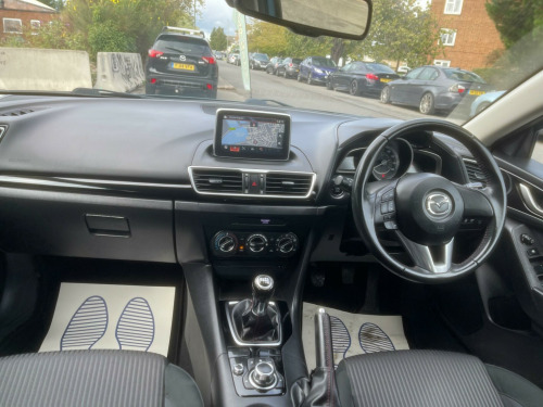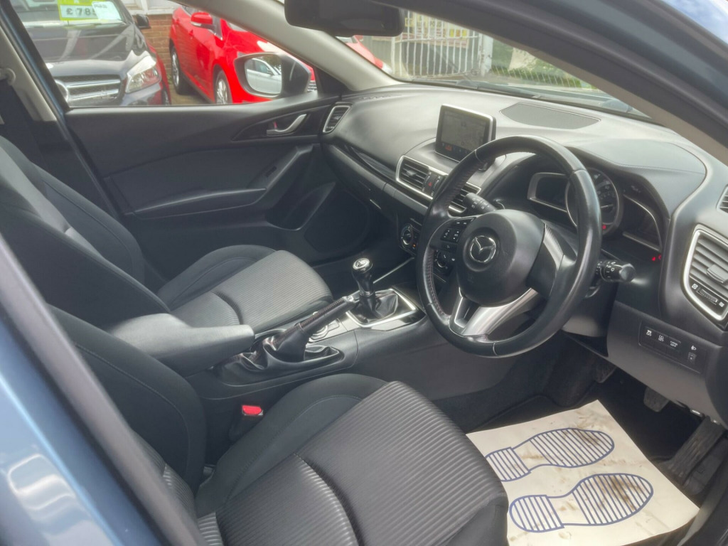 Beautiful Mazda Mazda3 2.0 SKYACTIV-G SE Nav in excellent condition. Top Specs, Navigation, Electric Windows, Electric Side Mirrors, Climate Control, Steering Control, Bluetooth Connection, Aux Connection, Alloys, Isofix, Arm Rest and many more...., Great Mpg, cheap to Tax and Insure. ULEZ compliant, 2 Previous Owners & 2 Keys. The car has been very well looked after and comes with FULL-Service history. We had it serviced recently at 62500 miles on 10/09/2025. It has also been MOTed till 01/06/2026 with no advisory. 3 Months essential warranty with Customer Protect is also included for your peace of mind. It is in very good condition and drives very smoothly with no fault whatsoever. ALL OUR CARS ARE FULLY INSPECTED BY PROFESSIONALS PRIOR TO ADVERTISEMENT & COME WITH 12 MONTHS FREE BASIC AA BREAKDOWN COVER. Finance is also available on request. DRIVE-AWAY INSURANCE IS ALSO AVAILABLE AT A COST. TO VIEW MORE STOCK PLEASE VISIT OUR WEBSITE AT: WWW.MEGAMOTORSUK.CO.UK , v power socket - front, 16in alloy wheels, abs - anti lock braking system, aha app and stitcher app integration, air conditioning, airbags - curtain front and rear, airbags - driver, airbags - front passenger, airbags - front passenger deactivation system, armrest - front centre with storage box, armrest - rear centre with cupholders x2, audio systems - am-fm radio-cd player, auto dimming rear view mirror, body coloured door mirrors, combined bluetooth phone and audio streaming system, cupholder - front x2, dsc - dynamic stability control, dashboard decoration panel - piano black, daytime running lights, deadlocking, door handles - body coloured, door mirrors - electrically adjustable-heated-folding, door pockets - front, electric windows - front and rear with one touch auto up and down on drivers side, emergency stop signalling system - ess, engine start-stop button, front side airbags, gear knob - leather, glovebox illumination, grab handles - front passenger and two rear with coat hooks, handbrake - leather wrapped, head restraints - rear, headlights - halogen, headlights - manual levelling, hill hold assist, isofix child seat anchorage for outer rear seats, immobiliser, interior light dome with integral spot light, luggage compartment - light, multimedia commander, overhead console with sunglassess holder, power assisted steering - electronic, remote central locking, scr - secondary collision reduction, satellite navigation system, seatback pocket - passenger side, seatbelt reminder for front and rear, seats - 60-40 split folding rear, seats - drivers dial reclining and height adjustment, seats - drivers manual lumbar adjustment, shark fin antenna, smart city brake support, speakers x6, spoiler - rear roof, steering wheel - leather, steering wheel - mounted remote audio controls, steering wheel - tilt and height adjustment, sunvisors - drivers and passengers with covered vanity mirror-ticket holder-illumination, tcs - traction control system, tailpipes - dual chrome, thatcham category 1 alarm and immobiliser, touch screen - 7in colour tft, trip computer, tyre pressure monitoring system, tyre repair kit, usb and aux connection, ipod connectivity, cloth - black
