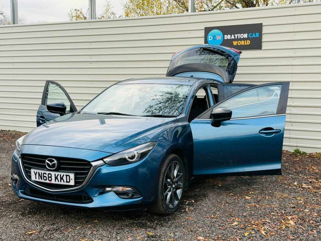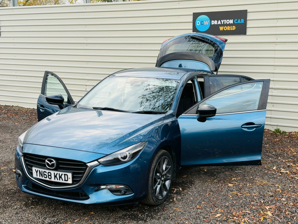 **HOME DELIVERY AVAILABLE**Drayton Car World are delighted to offer this stunning Mazda3 2.0 petrol the car is presented in excellent condition both inside and out. It has clearly been cherished by its 2 previous keeper from new. It benefits from a full-service history and new MOT. HPI clear. ulez compliant ,we offer a 3-month warranty and 12 months of AA Breakdown Cover, home delivery is available so you can buy from the comfort of your own home. we are open from 10am to 7pm ,7 DAYS A WEEK,ALL PART EXCHANGE ARE WELCOME ***ADDRESS *** Willowdene, The Common West Drayton UB7 7HQ*** in alloy wheels - dark, 7in colour touch-screen display, am-fm-dab radio - single cd player-mp3 with premium bose centrepoint surround-sound system with nine speakers, adjustable speed limiter, aha app and stitcher app integration, analogue speedometer, anti-lock braking system with electronic brake-force distribution and emergency brake assist, armrest - front centre with slide function, auto dimming rear view mirror, auxiliary - aux - and two usb input, cruise control with manual speed adjustment, dashboard panel - silver, dome interior courtesy light with integrated spotlight, door mirrors - electrically adjustable - heated - auto power folding with integrated indicator lights, door mirrors - jet black, driver and front passenger airbags, dual chrome exhaust tailpipe, dual-zone climate control air conditioning, dynamic stability control with traction control system, electric power assisted steering - epas, electric windows - front and rear with one touch auto up and down on drivers side, electronic parking brake with auto-disengage function, emergency stop signalling system - ess, emergency tyre repair kit, engine start-stop button, front fog lights - led, front passenger airbag cut-off switch, front passenger seat - manual height adjustment, front side airbags, front and rear curtain airbags, gear shift indicator, glovebox with light, grab handles - front passenger and two rear with coat hooks, head restraints - rear, headlights - adaptive front lighting system, headlights - coming-leaving home, headlights - dusk-sensing lights, headlights - led with auto headlight levelling, heated front seats with 3-stage settings, heated steering wheel, hill hold assist, isofix child seat anchorage for outer rear seats, integrated bluetooth, jet black rear roof spoiler, led signature daytime running lights, led signature rear lights, leather-wrapped gear knob and handbrake, luggage compartment - light, multimedia commander, privacy glass - rear and rear side windows, rain-sensing front wipers, rear parking sensors, rear seats - centre armrest with two cupholders, remote central locking with deadlocking, reversing camera, skyactiv-body engineered triple h body structure to help protect occupants from impact forces, satellite navigation system, seatback pocket - rear of front passenger seat, seatbelts - front 3-point - elr - x2 with pre-tensioners and load-limiters - height-adjustment, seatbelts - rear 3-point - elr - x3 with pre-tensioners, seatbelts - reminder screen with audible warning, seats - 60-40 split folding rear, seats - drivers manual lumbar adjustment, seats - drivers manual slide-recline and height adjustment, self-supporting rigid and torsion-resistant all-steel body with defined crush zones for the front and rear sections - stable passenger safety cell with side impact reinforcement in the doors, shark fin antenna, smart city brake support, smart keyless entry, steering wheel - leather wrapped, steering wheel - mounted audio and bluetooth controls, steering wheel - telescopic and tilt adjust, storage spaces - door pockets, storage spaces - front centre console with two cupholders, storage spaces - inside front centre armrest, sun visors - drivers and front passengers, sunglasses holder, thatcham category 1 alarm and immobiliser, trip computer, tyre pressure monitoring system, wipers - front adjustable speed with intermittent, wipers - rear adjustable speed with intermittent