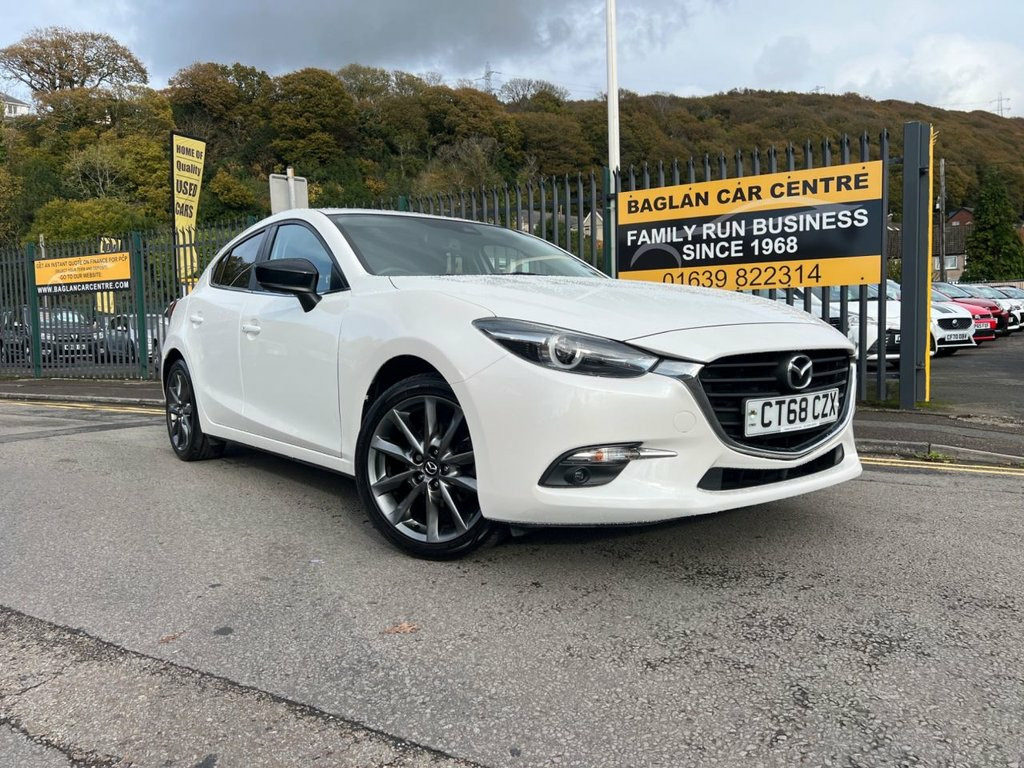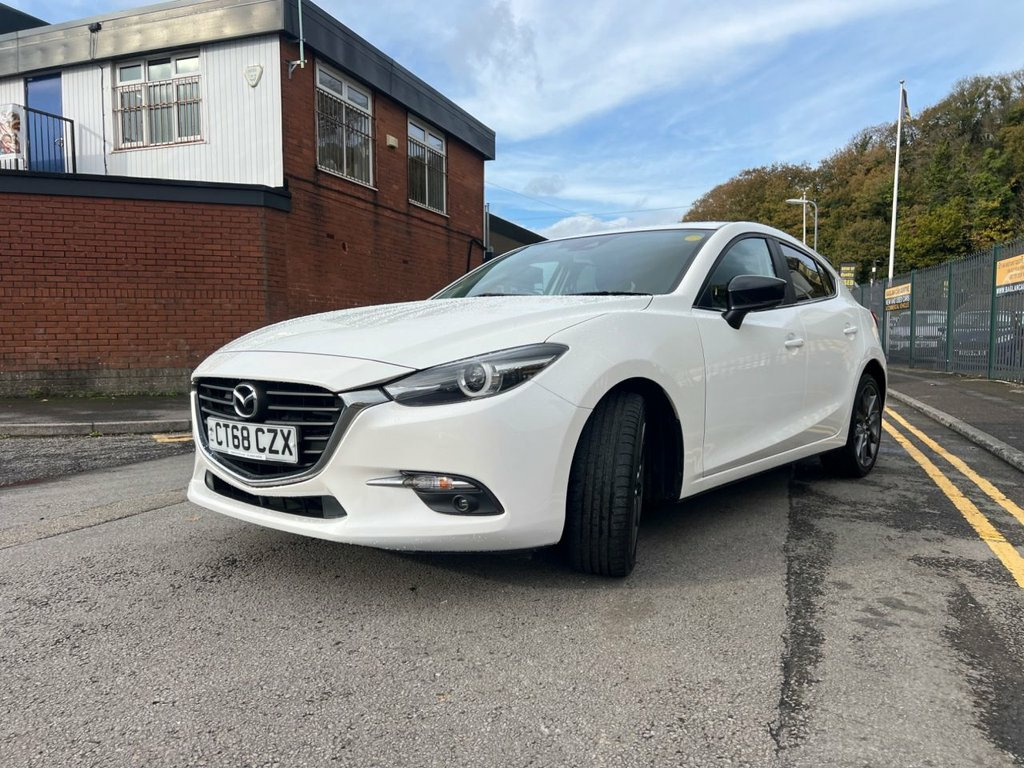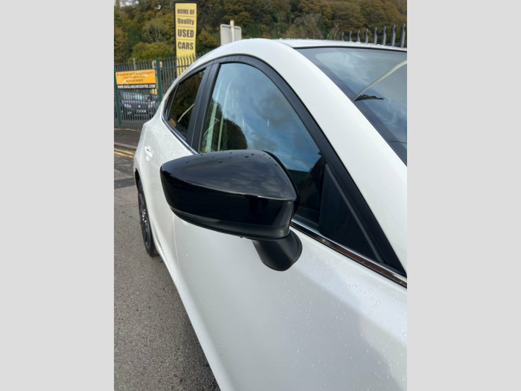 Boasting supplying dealership service history consisting of pdi & 5 x services with last service 13/09/2024 and having had only one owner, this 2019 Mazda3 SKYACTIV-G Sport Black presents a compelling proposition. This 2.0 litre petrol model, compliant with Euro 6 emissions standards, offers a refined driving experience. It comes equipped with Smart Keyless Entry for effortless access, and for your comfort, features heated steering wheel, heated front seats with three stage settings and dual zone climate control air conditioning. Stay connected and entertained with integrated Bluetooth and an impressive AM-FM-DAB radio with a single CD player and MP3 compatibility, all delivered through a premium Bose Centrepoint Surround sound system featuring nine speakers. Also satellite navigation. This Mazda3 is designed to impress, offering a blend of performance and efficiency. Its acceleration from 0-60mph in just 8.9 seconds demonstrates its responsive nature, while an impressive fuel economy of 55 mpg highlights its cost effectiveness. Furthermore, its low insurance group rating indicates that running costs are kept to a minimum, making it a sensible choice. This particular model benefits from a 6 month warranty, providing peace of mind for its next owner. Cloth - Black, Snowflake White, 18in Alloy Wheels - Dark, 7in Colour Touch-screen Display, AM-FM-DAB Radio - Single CD Player-MP3 w, Adjustable Speed Limiter, Aha App and Stitcher App Integration, Analogue Speedometer, Anti-lock Braking System with Electronic, Armrest - Front Centre with Slide Functi, Auto Dimming Rear View Mirror, Auxiliary - AUX - and Two USB Input, Cruise Control with Manual Speed Adjustm, Dashboard Panel - Silver, Dome Interior Courtesy Light with Integr, Door Mirrors - Electrically Adjustable -, Door Mirrors - Jet Black, Driver and Front Passenger Airbags, Dual Chrome Exhaust Tailpipe, Dual-Zone Climate Control Air Conditioni, Dynamic Stability Control with Traction , E