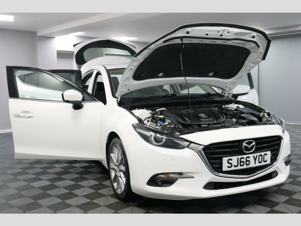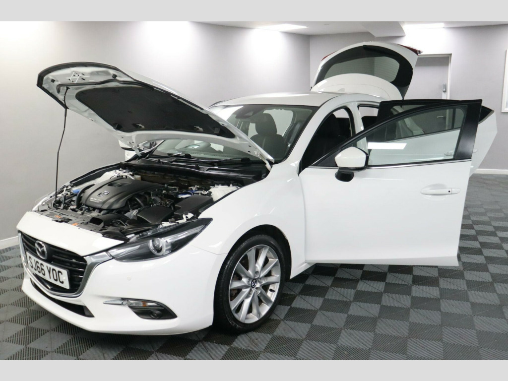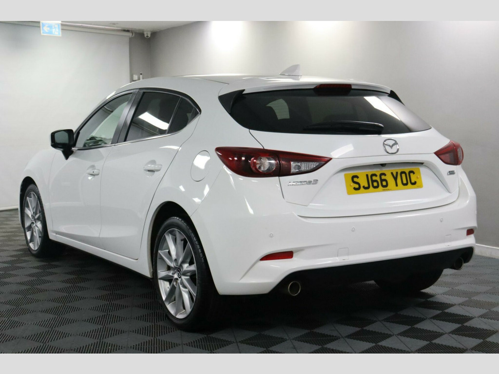 SJ66YOC. Very Low Mileage. One Owner. Full Service History. The Mazda 3 2.0 SKYACTIV-G Sport Nav Auto was built for drivers who value quality, comfort, and a strong connection to the road. With smooth handling, refined steering, and Better Fuel Economy, this hatchback suits commuters, small families, or anyone wanting a stylish car that feels rewarding to drive. Supplied with a Full 12-Month MOT.The interior feels upmarket, with a smart design and well chosen materials throughout. A 7 Inch Colour Touchscreen houses Built In Satellite Navigation, Bluetooth, and DAB Radio, while Smart Keyless Entry and an Engine Start Stop Button add convenience. The driving position feels natural, giving a clear view of the road ahead.For ease around town, Front and Rear Parking Sensors work alongside a Reversing Camera. Sport Mode sharpens performance for when the road opens up, while Cruise Control with Speed Limiter keeps motorway driving steady. Dual Zone Climate Control and Heated Front Seats bring comfort in all seasons, with Steering Wheel Controls and Paddle Shift keeping everything within easy reach.This ONE OWNER vehicle has just been serviced and comes with a FULL SERVICE HISTORY, featuring 7 service printouts. This vehicle also has a full 12-month MOT with no advisories, a clean HPI report, 2 KEYS and a National Mileage Register Check. With a fantastic list of specifications, this could be the perfect car for you!While we use reliable third-party data, some details may vary. We recommend double-checking any specific features you're particularly interested in. We're happy to help verify this for you on request. Please note features such as Apple Carplay may require a subscription. If you have any questions please feel free to contact us ☎️ 0113 257 00 00.. Satellite Navigation System, Reversing Camera, Heated Front Seats with 3-Stage Settings, Cruise Control with Speed Limiter, Parking Sensors - Front and Rear, Sport Mode, Auto Dimming Rear View Mirror, DAB Radio, Steering Wheel - Paddle Shift, Engine Start-Stop Button, Steering Wheel - Mounted Audio and Bluetooth Controls, USB Audio - iPod Connectivity, Door Mirrors - Electrically Adjustable - Heated - Auto Power Folding with Integrated Indicator Lights, 7in Colour Touch-screen Display, Smart Keyless Entry, Dual-Zone Climate Control Air Conditioning, ISOFIX Child Seat Anchorage for Outer Rear Seats, Integrated Bluetooth, EURO 6, Stop/Start, Electronic Parking Brake with Auto-Disengage Function, 18in Alloy Wheels, Cloth - Black. Full service history