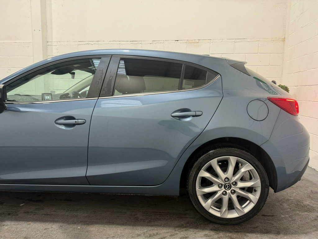 This 2015 Mazda3 SKYACTIV-G Sport Nav has been cherished by just one owner since new, offering a well maintained example of this popular model. Powered by a responsive 2.0 litre petrol engine, this Sport Nav variant comes equipped with a suite of desirable features. Drivers will appreciate the convenience of front and rear parking sensors, complemented by a helpful Head Up Display. For an enhanced audio experience, the cabin boasts a premium BOSE Centrepoint Surround System with nine speakers, while Bi-Xenon headlights provide excellent visibility.The Mazda3 SKYACTIV-G Sport Nav stands out with its impressive performance, achieving 0-62mph in just 8.9 seconds, demonstrating its brisk acceleration. This model also offers practical advantages, including a generous boot space that makes it ideal for everyday use and longer journeys. Furthermore, its placement in a low insurance group means that running costs are kept more affordable, making this Mazda3 a compelling choice for those seeking a blend of performance, practicality, and value. v power socket - front, 18in alloy wheels, abs - anti lock braking system, adjustable speed limiter, aha app and stitcher app integration, air conditioning - dual zone climate control, airbags - curtain front and rear, airbags - driver, airbags - front passenger, airbags - front passenger deactivation system, armrest - front centre with storage box, armrest - rear centre with cupholders x2, audio systems - am-fm radio-cd player, auto dimming rear view mirror, body coloured door mirrors, combined bluetooth phone and audio streaming system, cruise control, cupholder - front x2, dsc - dynamic stability control, dashboard decoration panel - silver, deadlocking, digital speedometer, door handles - body coloured, door mirrors - electrically adjustable-heated-folding, door pockets - front, dusk sensing automatic headlights, electric windows - front and rear with one touch auto up and down on drivers side, emergency stop signalling system - ess, engine start-stop button, front fog lights with chrome surround, front side airbags, gear knob - leather, glovebox illumination, grab handles - front passenger and two rear with coat hooks, handbrake - leather wrapped, head restraints - rear, head up display, headlights - adaptive front lighting system, headlights - automatic levelling, headlights - bi-xenon, headlights - cleaning, hill hold assist, isofix child seat anchorage for outer rear seats, immobiliser, interior light dome with integral spot light, led daytime running lights, luggage compartment - light, multimedia commander, overhead console with sunglassess holder, parking sensors - front, power assisted steering - electronic, premium bose centrepoint surround system - speakers x9, privacy glass - rear and rear side windows, rain-sensing front wipers, rear lights - led, rear parking sensors, remote central locking, scr - secondary collision reduction, satellite navigation system, seatback pocket - passenger side, seatbelt reminder for front and rear, seats - 60-40 split folding rear, seats - drivers dial reclining and height adjustment, seats - drivers manual lumbar adjustment, seats - front heated, shark fin antenna, smart city brake support, smart keyless entry, spoiler - rear roof, steering wheel - leather, steering wheel - mounted remote audio controls, steering wheel - tilt and height adjustment, sunvisors - drivers and passengers with covered vanity mirror-ticket holder-illumination, tcs - traction control system, tailpipes - dual chrome, thatcham category 1 alarm and immobiliser, touch screen - 7in colour tft, trip computer, tyre pressure monitoring system, tyre repair kit, usb and aux connection, ipod connectivity