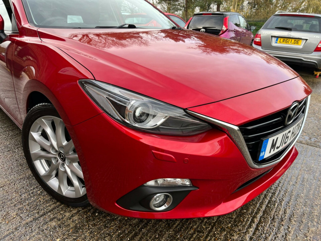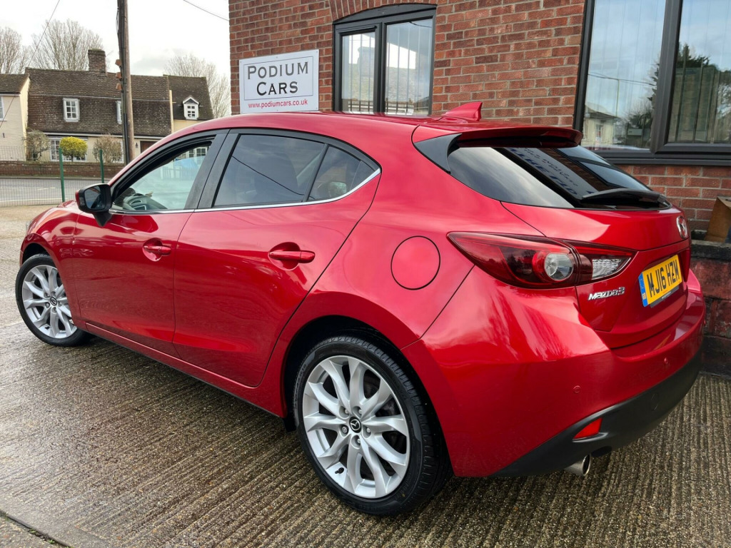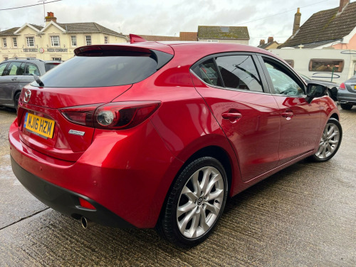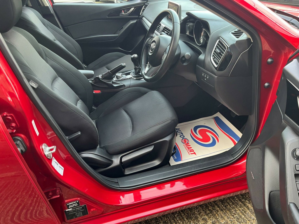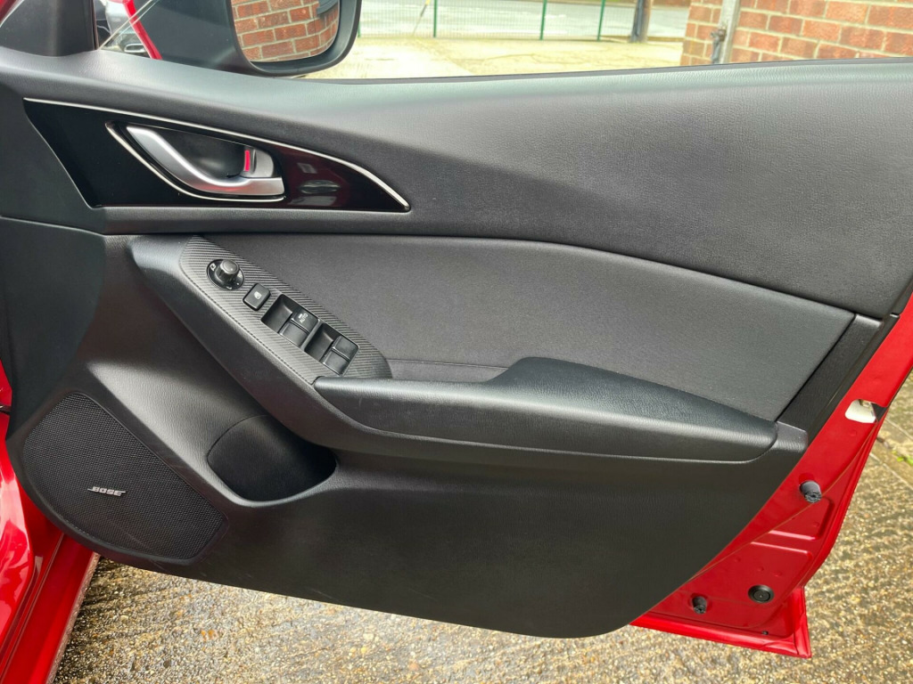 Podium Cars are proud to offer this outstanding Mazda 3. This is the highly desirable top of the range Petrol Sport Nav model. 1 Private Owner. Very low mileage supported by a Full Mazda Dealership Service History. Serviced at 7k, 16k, 24k, 31k, 32k, 35k, 40k, 46k and 52k in June 2025. A new MOT will be issued when purchased. Just £35 Road Tax. ULEZ Compliant. High Spec includes Satellite Navigation with the SD Card, Reverse Camera, HUD Head Up Display, Heated Seats, Alloy Wheels on premium brand tyres, Rear Privacy Glass, Electric Folding Door Mirrors, Electric Windows, Remote Central Locking with Keyless Entry, Power Steering, Front and Rear Parking Sensors, Cruise Control, BOSE Speakers, 2 x Mazda Keys, plus more. Exceptionally well maintained and cared for since new. This car is Hpi Clear. All of our cars are supplied with a 6 Month Bluechip Premium Warranty for your peace of mind. Extended Warranties are available at very competitive prices. A deposit to secure this car can be paid by Debit Card. The balance payment is required by Bank Transfer. We do not accept Credit Cards. PLEASE NOTE If you would like to reserve this vehicle please speak to us directly. We cannot guarantee this vehicle will be reserved for you if reserved via Autotrader as we may be in the process of selling the vehicle to another customer. Please read our Customer Reviews, we are very proud of our reputation. We are a self financed family business with a passion for Product Quality, Customer Service and Satisfaction. We have operated from our current Brantham location since June 2014. All Part Exchanges are considered, please talk to us before you sell your vehicle elsewhere. Please call us on 07875 599213 before travelling to us to ensure this vehicle is still available, and that we are able to give you the time and attention that you deserve.. 12V Power Socket - Front, 18in Alloy Wheels, ABS - Anti Lock Braking System, Adjustable Speed Limiter, Aha App and Stitcher App Integration, Air Conditioning - Dual Zone Climate Control, Airbags - Curtain Front and Rear, Airbags - Driver, Airbags - Front Passenger, Airbags - Front Passenger Deactivation System, Armrest - Front Centre with Storage Box, Armrest - Rear Centre with Cupholders x2, Audio Systems - AM-FM Radio-CD Player, Auto Dimming Rear View Mirror, Body Coloured Door Mirrors, Combined Bluetooth Phone and Audio Streaming System, Cruise Control, Cupholder - Front x2, DSC - Dynamic Stability Control, Dashboard Decoration Panel - Silver, Deadlocking, Digital Speedometer, Door Handles - Body Coloured, Door Mirrors - Electrically Adjustable-Heated-Folding, Door Pockets - Front, Dusk Sensing Automatic Headlights, Electric Windows - Front and Rear with One Touch Auto Up and Down on Drivers Side, Emergency Stop Signalling System - ESS, Engine Start-Stop Button, Front Fog Lights with Chrome Surround, Front Side Airbags, Gear Knob - Leather, Glovebox Illumination, Grab Handles - Front Passenger and Two Rear with Coat Hooks, Handbrake - Leather Wrapped, Head Restraints - Rear, Head Up Display, Headlights - Adaptive Front Lighting System, Headlights - Automatic Levelling, Headlights - Bi-Xenon, Headlights - Cleaning, Hill Hold Assist, ISOFIX Child Seat Anchorage for Outer Rear Seats, Immobiliser, Interior Light Dome with Integral Spot Light, LED Daytime Running Lights, Luggage Compartment - Light, Multimedia Commander, Overhead Console with Sunglassess Holder, Parking Sensors - Front, Power Assisted Steering - Electronic, Premium BOSE Centrepoint Surround System - Speakers x9, Privacy Glass - Rear and Rear Side Windows, Rain-Sensing Front Wipers, Rear Lights - LED, Rear Parking Sensors, Remote Central Locking, SCR - Secondary Collision Reduction, Satellite Navigation System, Seatback Pocket - Passenger Side, Seatbelt Reminder for Front and Rear, Seats - 60-40 Split Folding Rear, Seats - Drivers Dial Reclining and Height Adjustment, Seats - Drivers Manual Lumbar Adjustment, Seats - Front Heated, Shark Fin Antenna, Smart City Brake Support, Smart Keyless Entry, Spoiler - Rear Roof, Steering Wheel - Leather, Steering Wheel - Mounted Remote Audio Controls, Steering Wheel - Tilt and Height Adjustment, Sunvisors - Drivers and Passengers with Covered Vanity Mirror-Ticket Holder-Illumination, TCS - Traction Control System, Tailpipes - Dual Chrome, Thatcham Category 1 Alarm and Immobiliser, Touch Screen - 7in Colour TFT, Trip Computer, Tyre Pressure Monitoring System, Tyre Repair Kit, USB and AUX Connection, iPod Connectivity, 1 Private Owner, Full Mazda Dealership Service History, £35 Annual Road Tax, Reverse Camera, 2 x Mazda Keys, Cloth - Black, Excellent Condition Throughout, Low Rate Finance Available, No Admin Fees or Hidden Charges. Full dealership history