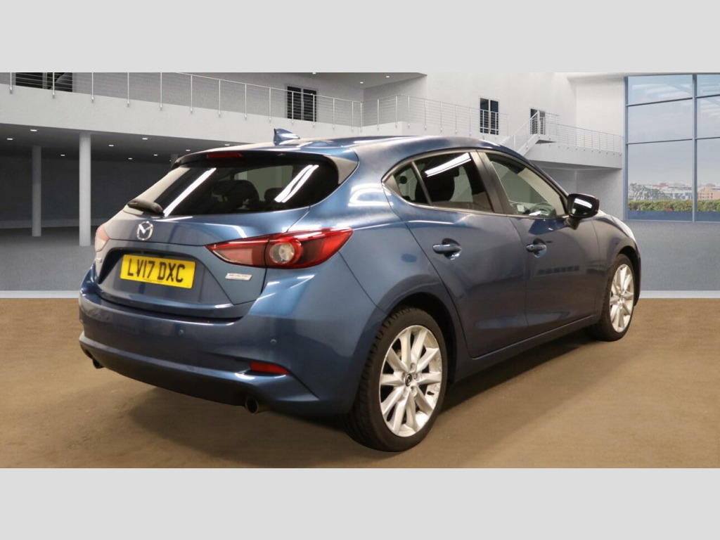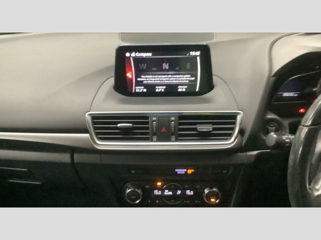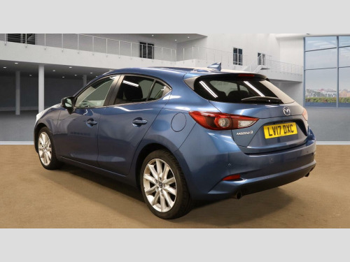 This 2017 Mazda3 SKYACTIV-G Sport Nav is a superb example, having been cherished by only two owners. It boasts a responsive 2.0 litre petrol engine, meeting the Euro 6 emissions standard, and comes equipped with the desirable Sport Nav trim. Inside, you'll find a Safety Pack featuring Blind Spot Assistance and LED headlights for enhanced visibility, alongside dual zone climate control air conditioning to keep everyone comfortable. Entertainment is provided by an AM-FM-DAB radio with a single CD player and MP3 compatibility, all delivered through a premium Bose Centrepoint surround sound system with nine speakers. Manoeuvring is made easier with a reversing camera and the convenience of smart keyless entry.This Mazda3 offers impressive efficiency, achieving a remarkable 55 miles per gallon, which is a significant advantage over many similar vehicles. Its low insurance group rating further contributes to lower running costs. You'll also appreciate the generous boot space, perfect for luggage or shopping. For those who enjoy a dynamic driving experience, this model accelerates from 0 to 62 miles per hour in just 8.9 seconds, demonstrating its capable performance. fety pack, 18in alloy wheels, 7in colour touch-screen display, am-fm-dab radio - single cd player-mp3 with premium bose centrepoint surround-sound system with nine speakers, adjustable speed limiter, aha app and stitcher app integration, anti-lock braking system with electronic brake-force distribution and emergency brake assist, armrest - front centre with slide function, auto dimming rear view mirror, auxiliary - aux - and two usb input, cruise control with manual speed adjustment, dashboard panel - silver, digital speedometer, dome interior courtesy light with integrated spotlight, door mirrors - electrically adjustable - heated - auto power folding with integrated indicator lights, driver and front passenger airbags, dual chrome exhaust tailpipe, dual-zone climate control air conditioning, dynamic stability control with traction control system, electric power assisted steering - epas, electric windows - front and rear with one touch auto up and down on drivers side, electronic parking brake with auto-disengage function, emergency stop signalling system - ess, emergency tyre repair kit, engine start-stop button, front fog lights - led, front passenger airbag cut-off switch, front passenger seat - manual height adjustment, front side airbags, front and rear curtain airbags, gear shift indicator, glovebox with light, grab handles - front passenger and two rear with coat hooks, head restraints - rear, headlights - adaptive front lighting system, headlights - coming-leaving home, headlights - dusk-sensing lights, headlights - led with auto headlight levelling, heated front seats with 3-stage settings, hill hold assist, isofix child seat anchorage for outer rear seats, integrated bluetooth, led signature daytime running lights, led signature rear lights, leather-wrapped gear knob and handbrake, luggage compartment - light, meter set display - colour active driving display - head-up display, multimedia commander, parking sensors - front and rear, privacy glass - rear and rear side windows, rain-sensing front wipers, rear seats - centre armrest with two cupholders, remote central locking with deadlocking, reversing camera, skyactiv-body engineered triple h body structure to help protect occupants from impact forces, satellite navigation system, seatback pocket - rear of front passenger seat, seatbelts - front 3-point - elr - x2 with pre-tensioners and load-limiters - height-adjustment, seatbelts - rear 3-point - elr - x3 with pre-tensioners, seatbelts - reminder screen with audible warning, seats - 60-40 split folding rear, seats - drivers manual lumbar adjustment, seats - drivers manual slide-recline and height adjustment, self-supporting rigid and torsion-resistant all-steel body with defined crush zones for the front and rear sections - stable passenger safety cell with side impact reinforcement in the doors, shark fin antenna, smart city brake support, smart keyless entry, steering wheel - leather wrapped, steering wheel - mounted audio and bluetooth controls, steering wheel - telescopic and tilt adjust, storage spaces - door pockets, storage spaces - front centre console with two cupholders, storage spaces - inside front centre armrest, sun visors - drivers and front passengers, sunglasses holder, thatcham category 1 alarm and immobiliser, trip computer, tyre pressure monitoring system, usb audio - ipod connectivity, wipers - front adjustable speed with intermittent, wipers - rear adjustable speed with intermittent