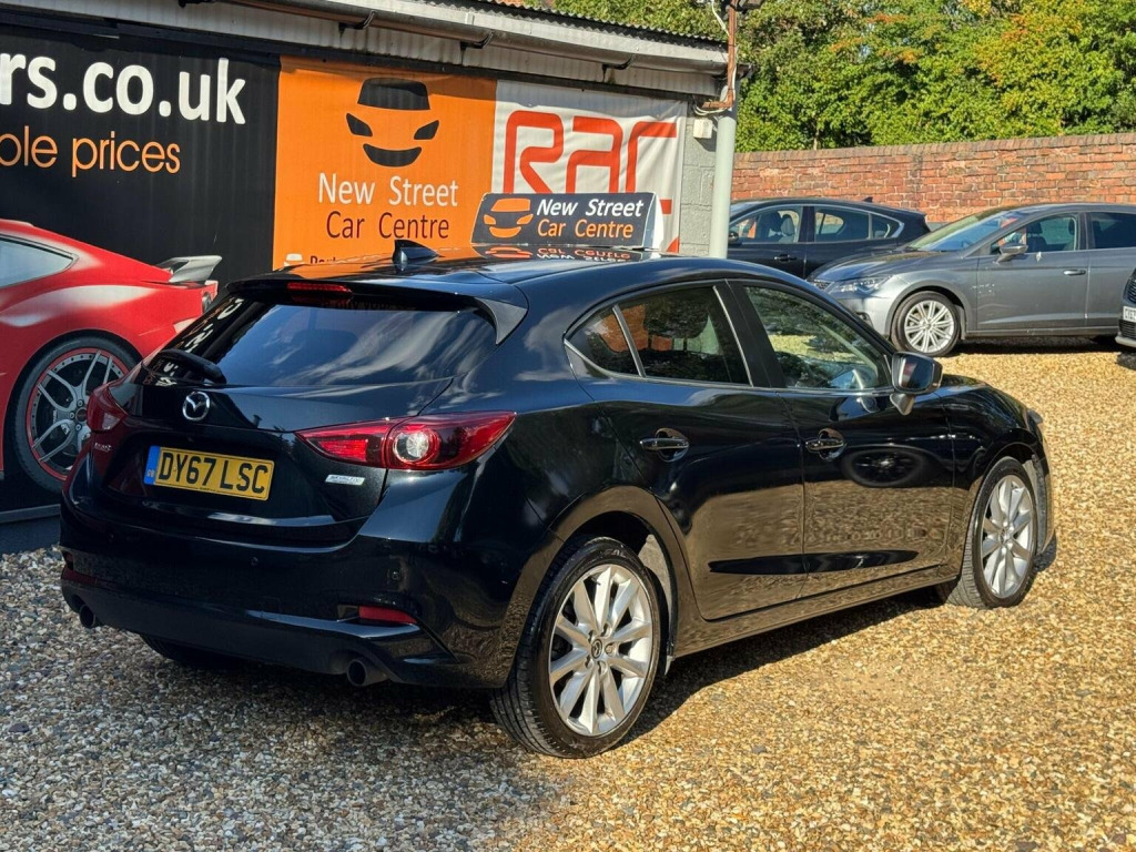 This 2017 Mazda3 SKYACTIV-G Sport Nav boasts a clear vehicle history, offering you peace of mind. Powered by a responsive 2.0 litre petrol engine, this Euro 6 compliant hatchback delivers an engaging driving experience with a 0-62mph acceleration time of just 8.9 seconds. Inside, youll find a well appointed cabin featuring Dual Zone Climate Control Air Conditioning for personalised comfort, and a premium Bose Centrepoint Surround sound system with nine speakers, paired with an AM-FM-DAB radio and CD player, ensuring your journeys are accompanied by excellent audio. For added convenience and safety, this Mazda3 includes dusk sensing headlights, front and rear parking sensors, and a reversing camera, all contributing to a smooth and confident drive. The Mazda3 SKYACTIV-G Sport Nav is designed to impress with its impressive fuel economy, achieving a remarkable 55 miles per gallon, which indicates it is more economical than many similar vehicles. Furthermore, its low insurance group rating suggests that running costs will be kept to a minimum, making it an attractive option for a wide range of drivers. The generous boot space provides ample room for shopping or luggage, highlighting its practicality for everyday use and longer trips. We are proud to present this Mazda Mazda3 2.0 SKYACTIV-G Sport Nav Euro 6 (s/s) 5dr that comes with a service history for added peace of mind. It comes with 2 keys and has just been serviced. 12 months MOT included, You have the option to purchase RAC warranty with the option to extend.At New Street Car Centre we have over 25 years experience as the largest and most trusted used car dealership in Telford. We offer award winning customer service, great prices and excellent preparation standards. Each vehicle undergoes quality control inspections and a complimentary history check for your added peace of mind.we have also included additional specification but please always check the exact specification details with ourselves prior to purchase as models can vary