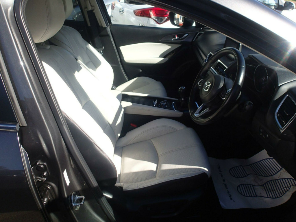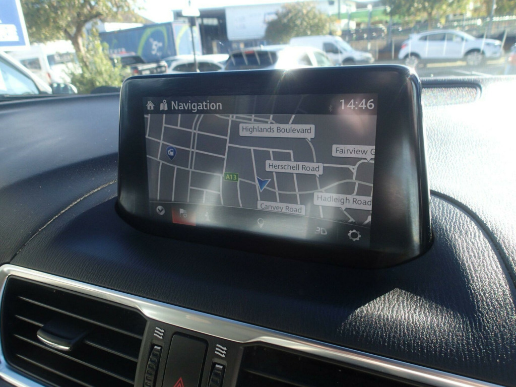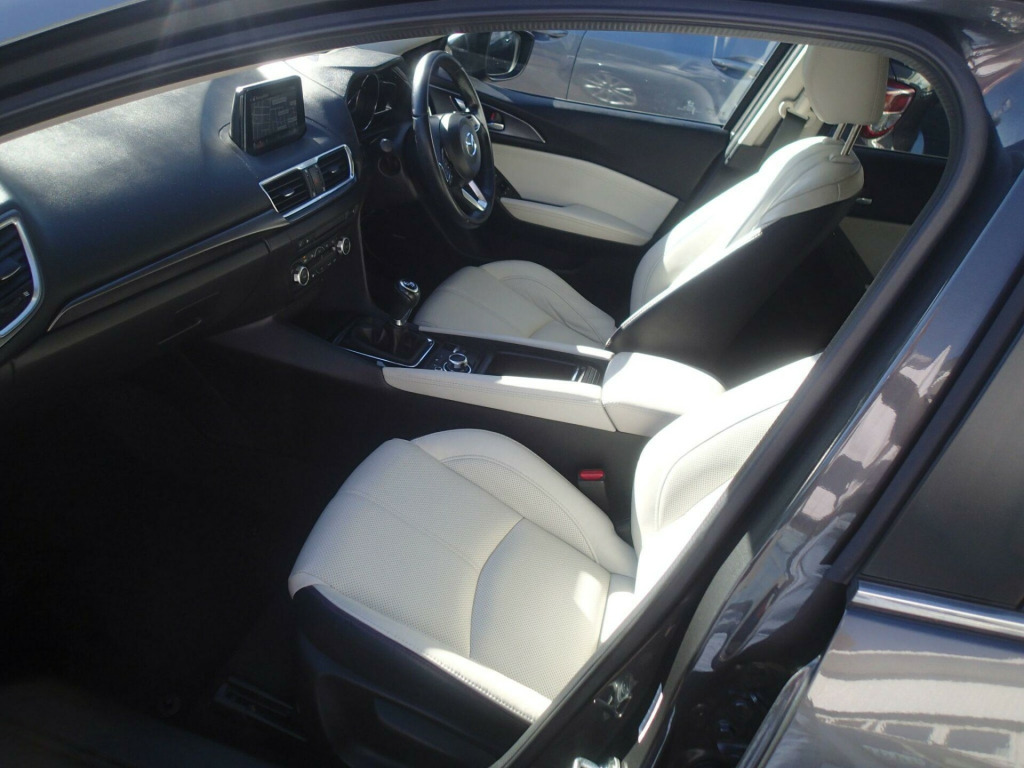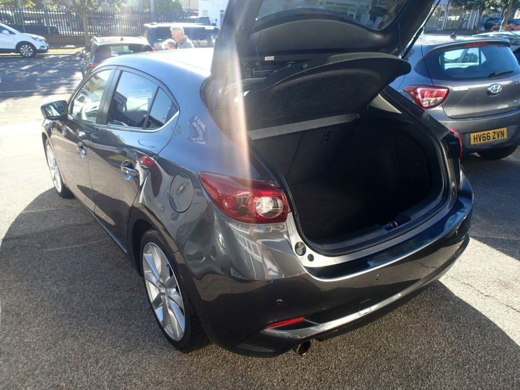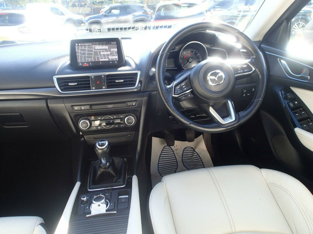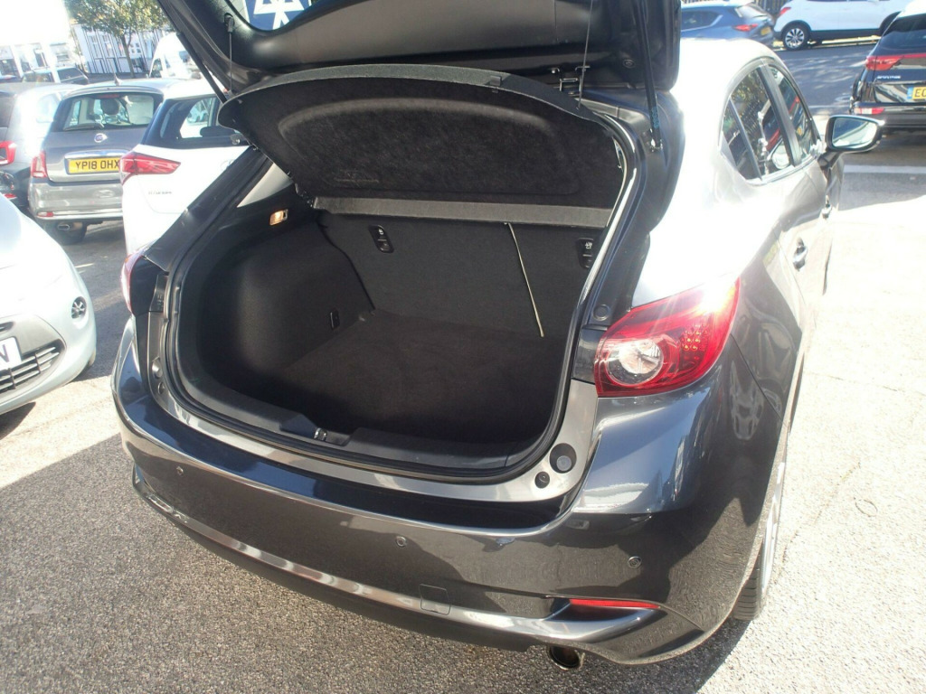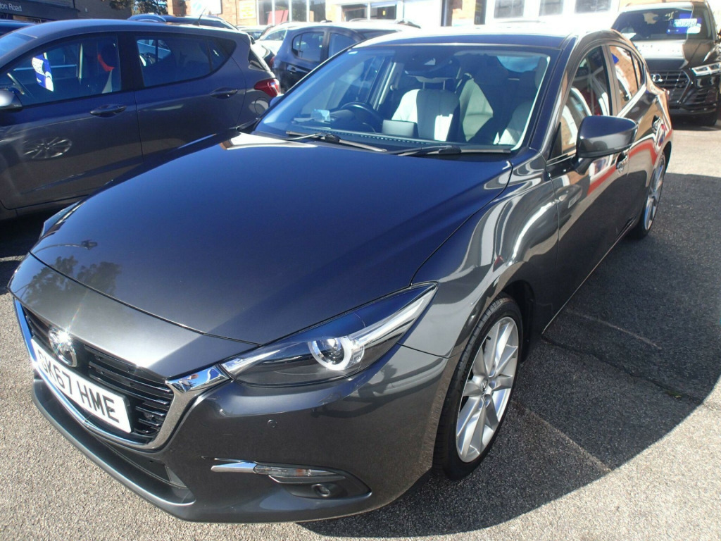 Discover this 2017 Mazda3 SKYACTIV-G Sport Nav, a well presented example of Mazda's popular hatchback. This model boasts a responsive 2.0 litre petrol engine, compliant with Euro 6 emissions standards, and features a Sport Nav trim for an enhanced driving experience. Inside, you'll find a premium Bose surround sound system with nine speakers, integrated Bluetooth for seamless connectivity, and smart keyless entry for convenience. The car also benefits from LED headlights with automatic levelling and dusk sensing lights, ensuring optimal visibility in all conditions.This Mazda3 offers an impressive fuel economy of 55 miles per gallon, making it an economical choice for your daily journeys. Its acceleration from 0 to 62 miles per hour in just 8.9 seconds indicates a lively performance. Furthermore, its low insurance group rating and generous boot space highlight its practicality and affordability compared to similar vehicles., en 7 days, finance available subject to status, long mot on all vehicles, 18in alloy wheels, 7in colour touch-screen display, am-fm-dab radio - single cd player-mp3 with premium bose centrepoint surround-sound system with nine speakers, adjustable speed limiter, aha app and stitcher app integration, anti-lock braking system with electronic brake-force distribution and emergency brake assist, armrest - front centre with slide function, auto dimming rear view mirror, auxiliary - aux - and two usb input, cruise control with manual speed adjustment, dashboard panel - silver, digital speedometer, dome interior courtesy light with integrated spotlight, door mirrors - electrically adjustable - heated - auto power folding with integrated indicator lights, driver and front passenger airbags, dual chrome exhaust tailpipe, dual-zone climate control air conditioning, dynamic stability control with traction control system, electric power assisted steering - epas, electric windows - front and rear with one touch auto up and down on drivers side, electronic parking brake with auto-disengage function, emergency stop signalling system - ess, emergency tyre repair kit, engine start-stop button, front fog lights - led, front passenger airbag cut-off switch, front passenger seat - manual height adjustment, front side airbags, front and rear curtain airbags, gear shift indicator, glovebox with light, grab handles - front passenger and two rear with coat hooks, head restraints - rear, headlights - adaptive front lighting system, headlights - coming-leaving home, headlights - dusk-sensing lights, headlights - led with auto headlight levelling, heated front seats with 3-stage settings, hill hold assist, isofix child seat anchorage for outer rear seats, integrated bluetooth, led signature daytime running lights, led signature rear lights, leather-wrapped gear knob and handbrake, luggage compartment - light, meter set display - colour active driving display - head-up display, multimedia commander, parking sensors - front and rear, privacy glass - rear and rear side windows, rain-sensing front wipers, rear seats - centre armrest with two cupholders, remote central locking with deadlocking, reversing camera, skyactiv-body engineered triple h body structure to help protect occupants from impact forces, satellite navigation system, seatback pocket - rear of front passenger seat, seatbelts - front 3-point - elr - x2 with pre-tensioners and load-limiters - height-adjustment, seatbelts - rear 3-point - elr - x3 with pre-tensioners, seatbelts - reminder screen with audible warning, seats - 60-40 split folding rear, seats - drivers manual lumbar adjustment, seats - drivers manual slide-recline and height adjustment, self-supporting rigid and torsion-resistant all-steel body with defined crush zones for the front and rear sections - stable passenger safety cell with side impact reinforcement in the doors, shark fin antenna, smart city brake support, smart keyless entry, steering wheel - leather wrapped, steering wheel - mounted audio and bluetooth controls, steering wheel - telescopic and tilt adjust, storage spaces - door pockets, storage spaces - front centre console with two cupholders, storage spaces - inside front centre armrest, sun visors - drivers and front passengers, sunglasses holder, thatcham category 1 alarm and immobiliser, trip computer, tyre pressure monitoring system, usb audio - ipod connectivity, wipers - front adjustable speed with intermittent, wipers - rear adjustable speed with intermittent, for more information 01702 474206, xxx full stock list at www.leighservicestationcarsales.co.uk xxx many more cars in stock xxx