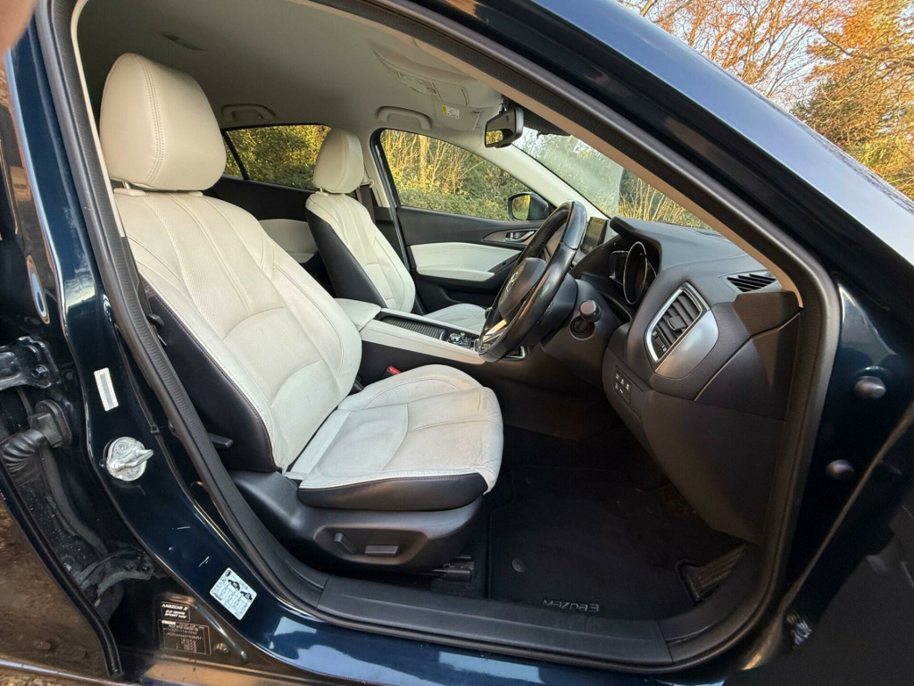 Offered for sale is a very well looked after Mazda 3 2.0 Skyactiv-G Sport Nav Euro 6 (petrol, 6 speed manual)This car has a full up to date service history and a new 12 month MOT with no advisories. It also has 2 keys.Very low running costs- these have excellent MPG figures and also ULEZ compliant.Specification includes heated front seats, electric drivers seat, heated steering wheel, multimedia system including navigation, DAB, media input and Bluetooth connectivity with media streaming, BOSE audio, front and rear parking sensors, 18 inch alloy wheels, multifunction steering wheel, dual zone climate control, cruise control, automatic lights and wipers, electric folding mirrors etcHere at RP Motors we are a family run, independent and trusted used car retailer in Netley, Southampton. We have always taken pride in offering a zero pressure approach, proven by our 5 star AutoTrader dealer rating. All of our vehicles have a full or mostly full service history, minimum of 9 months MOT and a 72 point check, providing our customers with the highest quality used cars. We have a team of in-house technicians allowing us to carry out our own mechanical preparation and remedial work. FOR YOUR PEACE OF MIND ALL OUR CARS COME WARRANTIED, MOT'ed, HPi'ed. PART EXCHANGE WELCOME *** NATIONWIDE DELIVERY AVAILABLE ***Viewings by appointment only, we are open 7 days a week.RP MOTORSGRANGE ROADNETLEYSOUTHAMPTONSO31 8GDFind us at: WWW.RPMOTORSSOUTHAMPTON.CO.UKThis car is presented in beautiful condition throughout, no damage to any of the alloy wheels, excellent tyre condition all round in alloy wheels, 7in colour touch-screen display, am-fm-dab radio - single cd player-mp3 with premium bose centrepoint surround-sound system with nine speakers, adjustable speed limiter, aha app and stitcher app integration, anti-lock braking system with electronic brake-force distribution and emergency brake assist, armrest - front centre with slide function, auto dimming rear view mirror, auxiliary - aux - and two usb input, cruise control with manual speed adjustment, dashboard panel - silver, digital speedometer, dome interior courtesy light with integrated spotlight, door mirrors - electrically adjustable - heated - auto power folding with integrated indicator lights, driver and front passenger airbags, dual chrome exhaust tailpipe, dual-zone climate control air conditioning, dynamic stability control with traction control system, electric power assisted steering - epas, electric windows - front and rear with one touch auto up and down on drivers side, electronic parking brake with auto-disengage function, emergency stop signalling system - ess, emergency tyre repair kit, engine start-stop button, front fog lights - led, front passenger airbag cut-off switch, front passenger seat - manual height adjustment, front side airbags, front and rear curtain airbags, gear shift indicator, glovebox with light, grab handles - front passenger and two rear with coat hooks, head restraints - rear, headlights - adaptive front lighting system, headlights - coming-leaving home, headlights - dusk-sensing lights, headlights - led with auto headlight levelling, heated front seats with 3-stage settings, hill hold assist, isofix child seat anchorage for outer rear seats, integrated bluetooth, led signature daytime running lights, led signature rear lights, leather-wrapped gear knob and handbrake, luggage compartment - light, meter set display - colour active driving display - head-up display, multimedia commander, parking sensors - front and rear, privacy glass - rear and rear side windows, rain-sensing front wipers, rear seats - centre armrest with two cupholders, remote central locking with deadlocking, reversing camera, skyactiv-body engineered triple h body structure to help protect occupants from impact forces, satellite navigation system, seatback pocket - rear of front passenger seat, seatbelts - front 3-point - elr - x2 with pre-tensioners and load-limiters - height-adjustment, seatbelts - rear 3-point - elr - x3 with pre-tensioners, seatbelts - reminder screen with audible warning, seats - 60-40 split folding rear, seats - drivers manual lumbar adjustment, seats - drivers manual slide-recline and height adjustment, self-supporting rigid and torsion-resistant all-steel body with defined crush zones for the front and rear sections - stable passenger safety cell with side impact reinforcement in the doors, shark fin antenna, smart city brake support, smart keyless entry, steering wheel - leather wrapped, steering wheel - mounted audio and bluetooth controls, steering wheel - telescopic and tilt adjust, storage spaces - door pockets, storage spaces - front centre console with two cupholders, storage spaces - inside front centre armrest, sun visors - drivers and front passengers, sunglasses holder, thatcham category 1 alarm and immobiliser, trip computer, tyre pressure monitoring system, usb audio - ipod connectivity, wipers - front adjustable speed with intermittent, wipers - rear adjustable speed with intermittent, safety pack, leather - light stone