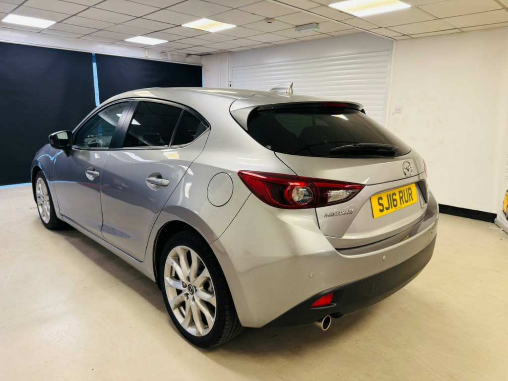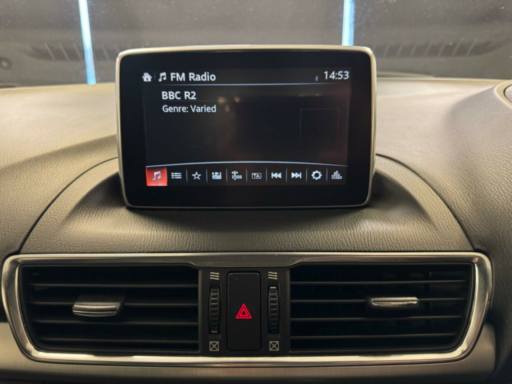 This 2016 Mazda3 SKYACTIV-G Sport Nav presents an exceptional ownership proposition with only two previous owners and a remarkably low mileage of 50,000 miles. This petrol variant, featuring a 2.0L engine and meeting Euro 6 emissions standards, is equipped with a host of desirable features. Enjoy the convenience of dusk sensing automatic headlights and dual zone climate control, ensuring comfort in all conditions. The premium BOSE Centrepoint Surround System with nine speakers delivers an immersive audio experience, while rear parking sensors and Bi-Xenon headlights add to the practicality and safety of this Sport Nav trim.The Mazda3 SKYACTIV-G Sport Nav stands out with its impressive acceleration, reaching 0-62mph in just 8.9 seconds, demonstrating its responsive performance. Further enhancing its appeal are its low insurance group rating and generous boot space, making it a practical and economical choice for everyday use. These aspects, combined with its well maintained provenance, indicate that this Mazda3 offers a superior driving and ownership experience compared to other vehicles in its class. v power socket - front, 18in alloy wheels, abs - anti lock braking system, aux socket, adjustable speed limiter, aha app and stitcher app integration, air conditioning - dual zone climate control, airbags - curtain front, airbags - curtain rear, airbags - driver, airbags - front passenger, airbags - front passenger deactivation system, armrest - front centre with storage box, armrest - rear, audio systems - am-fm radio-cd player, auto dimming rear view mirror, body coloured door mirrors, cruise control, cupholder - front x2, cupholder - rear x2, dsc - dynamic stability control, dashboard decoration panel - silver, deadlocking, digital speedometer, door handles - body coloured, door mirrors - electrically adjustable-heated-folding, door pockets - front, dusk sensing automatic headlights, electric windows - front and rear with one touch auto up and down on drivers side, emergency stop signalling system - ess, engine start-stop button, front fog lights with chrome surround, front side airbags, gear knob - leather, glovebox illumination, grab handles - front passenger and two rear with coat hooks, handbrake - leather wrapped, head restraints - rear, head up display, headlights - adaptive front lighting system, headlights - automatic levelling, headlights - bi-xenon, headlights - cleaning, hill hold assist, isofix child seat anchorage for outer rear seats, immobiliser, integrated bluetooth system, interior light dome with integral spot light, led daytime running lights, luggage compartment - light, multimedia commander, overhead console with sunglassess holder, parking sensors - front, pollen filter, power assisted steering - electronic, premium bose centrepoint surround system - speakers x9, privacy glass - rear and rear side windows, rain-sensing front wipers, rear lights - led, rear parking sensors, remote central locking, scr - secondary collision reduction, satellite navigation - european mapping with 3-years map updates, satellite navigation system, seatback pocket - passenger side, seatbelt reminder for front and rear, seats - 60-40 split folding rear, seats - drivers dial reclining and height adjustment, seats - drivers manual lumbar adjustment, seats - front heated, shark fin antenna, smart city brake support, smart keyless entry, spoiler - rear roof, steering wheel - leather, steering wheel - mounted audio and bluetooth controls, steering wheel - tilt and height adjustment, sunvisors - drivers and passengers with covered vanity mirror-ticket holder-illumination, tcs - traction control system, tailpipes - dual chrome, thatcham category 1 alarm and immobiliser, touch screen - 7in colour tft, trip computer, tyre pressure monitoring system, tyre repair kit, usb - ipod connectivity, usb connection x2, wipers - front adjustable speed with intermittent, wipers - rear adjustable speed with intermittent
