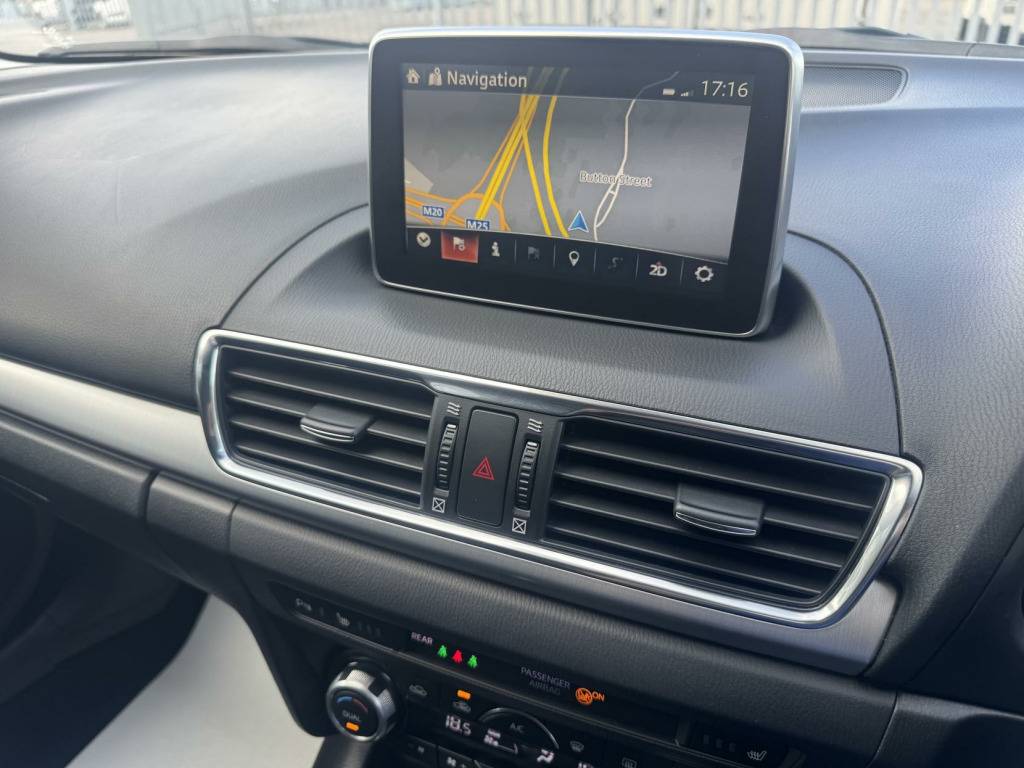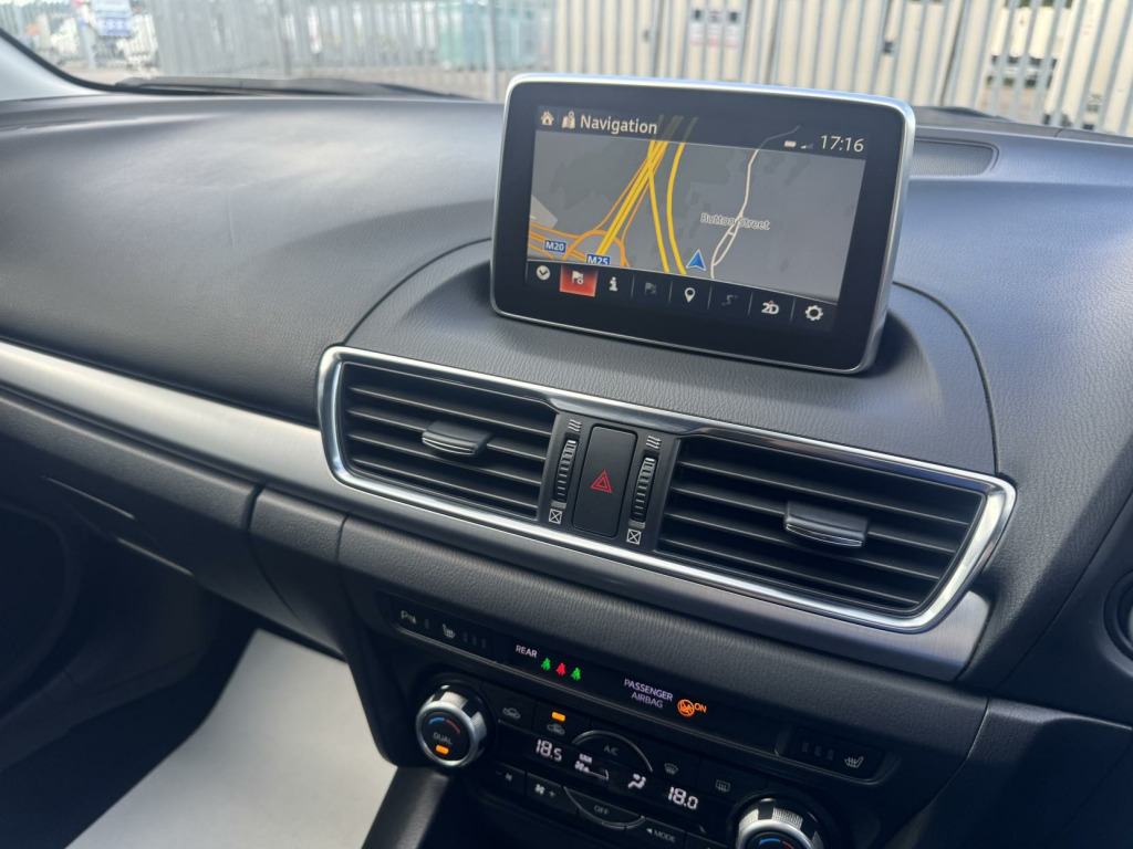 With only one owner and very low mileage of just 32686 miles, this 2015 Mazda Mazda3 SKYACTIV-G Sport Nav is a rare find. Equipped with a 2.0L petrol engine and a Sport Nav trim, this vehicle comes with a clear vehicle history check and a MOT valid until August 2026, offering peace of mind. The last service was carried out at 31792 miles. Enjoy a comfortable drive with features such as dual-zone climate control, heated front seats, and a head-up display. Stay connected on the road with the combined Bluetooth phone and audio streaming system, and benefit from the convenience of smart keyless entry.