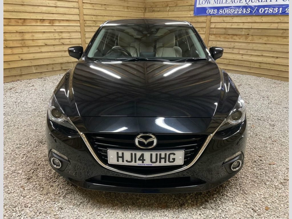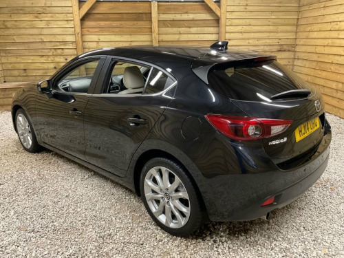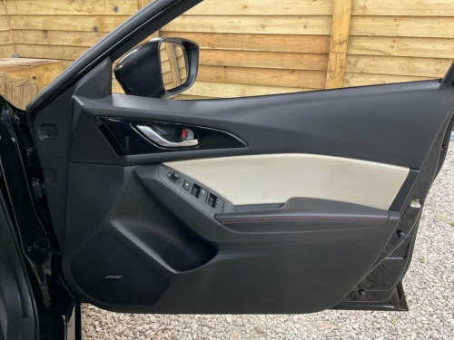 7,475 MILES ONLY…YES JUST 7,475 MILES FSH…ONE LOCAL PRIVATE OWNER FROM NEW…UNIQUE OPPORTUNITY NOT TO BE MISSED…THIS MUCH SOUGHT AFTER HIGH SPEC MAZDA 3 AUTOMATIC IS FINISHED IN BEAUTIFUL BLACK METALLIC WITH LIGHT STONE / BROWN LEATHER UPHOLSTERY…SPEC INCLUDES…18'ALLOYS. 6 SPEED AUTOMATIC WITH PADDLE SHIFTS. CRUISE. TRACTION. RVM. AFS. LANE ASSIT. HEADS UP DISPLAY. MULTI FUNCTION STEERING WHEEL. COLOUR TOUCH SCREEN DISPLAY. RADIO C/D. SAT/NAV. BLUETOOTH. F/R PARKING ASSIT. MEDIA  2 X USB PORTS. HEATED FRONT SEATS. ELEC DRIVERS SEAT. ELEC FOLDING MIRRORS. PRIVACY GLASS. LED RUNNING LIGHTS. MAZDA 3 OVER MATS. ETC…TRULY EXCELLENT EXTERIOR & INTERIOR CONDITION….DOES DRIVE EXTREMELY WELL…MUST BE SEEN TO BE APPRECIATED…FULL DEALER FACILITIES…FAMILY RUN BUSINESS…. 12V Power Socket - Front, 18in Alloy Wheels, ABS - Anti Lock Braking System, Adjustable Speed Limiter, Aha App and Stitcher App Integration, Air Conditioning - Dual Zone Climate Con, Airbags - Curtain Front and Rear, Airbags - Driver, Airbags - Front Passenger, Airbags - Front Passenger Deactivation S, Armrest - Front Centre with Storage Box, Armrest - Rear Centre with Cupholders x2, Audio Systems - AM-FM Radio-CD Player, Auto Dimming Rear View Mirror, Body Coloured Door Mirrors, Combined Bluetooth Phone and Audio Strea, Cruise Control, Cupholder - Front x2, Dashboard Decoration Panel - Silver, Deadlocking, Digital Speedometer, Door Handles - Body Coloured, Door Mirrors - Electrically Adjust