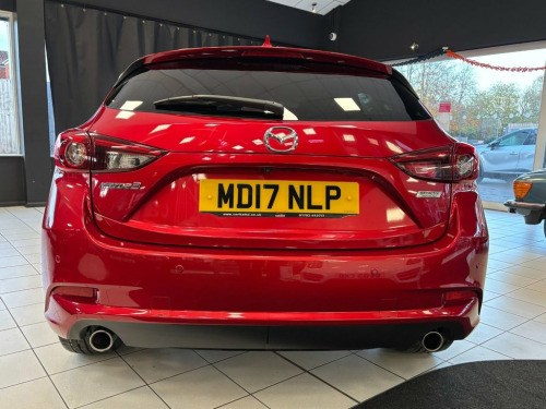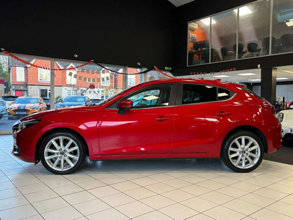 **AWAITING PREP** This is an extremely bright-looking example and one that is bound to catch your eye, finished in its Soul Red paint. Reflecting that of a well-loved example, displayed in excellent condition throughout and further offers a superb drive. This Mazda 3 is an absolute credit to its two previous owners, who have taken great care of it, with everything driving just as it should. Coming with a FULL Mazda and independent service history recorded across the following miles: 5006 + 8984 + 12,578 + 13,327 + 25,412 + 31,933. Amongst its bright appearance and great service record, this Mazda 3 comes with a terrific spec. Features include: Safety Pack, Leather - Black, AM-FM-DAB Radio - Single CD Player-MP3 with Premium Bose Centrepoint Surround-sound System with Nine Speakers, Cruise Control with Manual Speed Adjustment, Dual-Zone Climate Control Air Conditioning, Engine Start-Stop Button, Heated Front Seats with 3-Stage Settings, Hill Hold Assist, Integrated Bluetooth, Meter Set Display - Colour Active Driving Display - Head-up Display, Parking Sensors - Front and Rear, Reversing Camera, SKYACTIV-Body Engineered Triple H Body Structure to Help Protect Occupants from Impact Forces, Satellite Navigation System, Smart City Brake Support, Smart Keyless Entry, USB Audio - iPod Connectivity and more. Comes complete with two keys, an 82-point health check, 6 months warranty (extendable up to 3 years) and a HPI clear certificate. As these are used cars, please ensure that a veh Safety Pack, Soul Red, Leather - Black, 18in Alloy Wheels, 7in Colour Touch-screen Display, Adjustable Speed Limiter, Aha App and Stitcher App Integration, Anti-lock Braking System with Electronic, Armrest - Front Centre with Slide Functi, Auto Dimming Rear View Mirror, Auxiliary - AUX - and Two USB Input, Cruise Control with Manual Speed Adjustm, Dashboard Panel - Silver, Digital Speedometer, Dome Interior Courtesy Light with Integr, Door Mirrors - Electrically Adjustable -, Driver and Front Passenger Airbags, Dual Chrome Exhaust Tailpipe, Dual-Zone Climate Control Air Conditioni, Dynamic Stability Control with Traction , Electric Power Assisted Steering - EPAS, Electric Windows - Front and