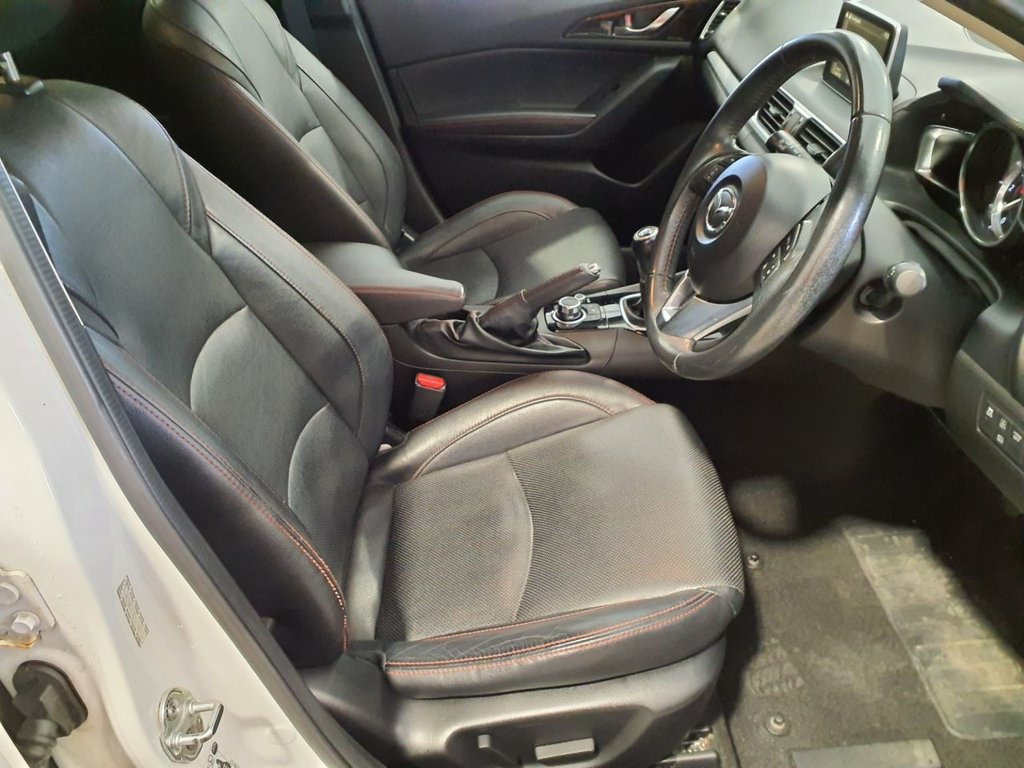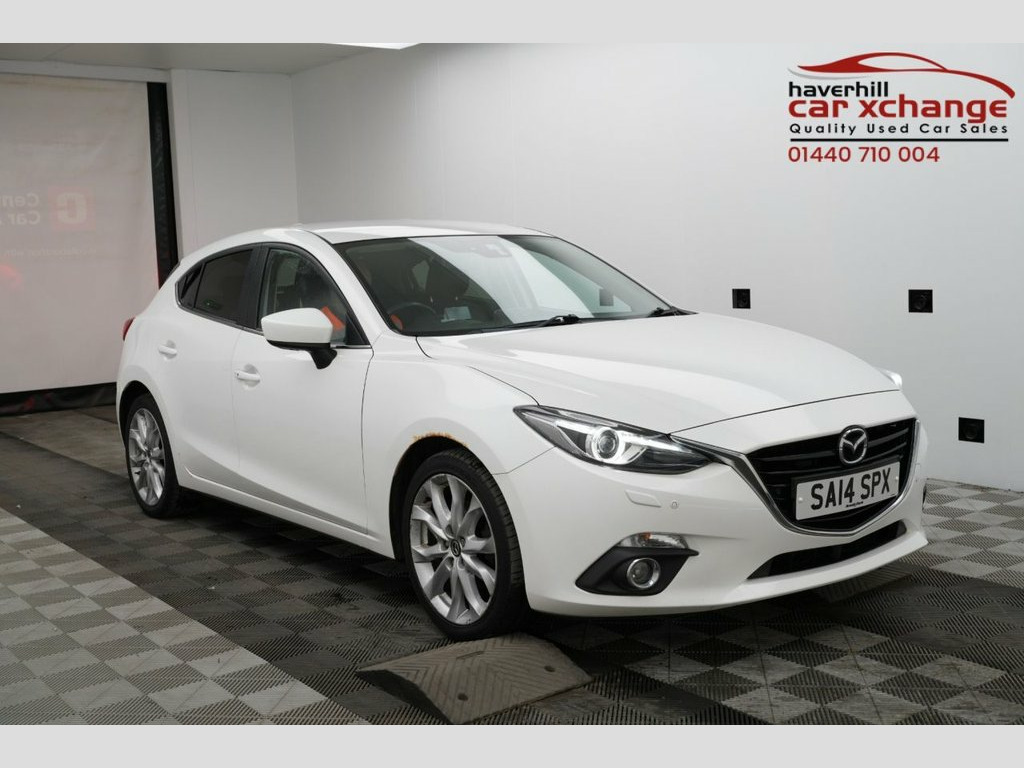 12 MONTHS MOT+7 INCH COLOUR TOUCHSCREEN WHICH FETAURES SATELLITE NAVIGATION SYSTEM+PREMIUM BOSE SURROUND SOUND SYSTEM+BLUETOOTH+DUAL ZONE CLIMTAE CONTROL AIR-CONDIITONING+DUSK-SENSING HEADLIGHTS+HEATED LEATHER SEATS+FRONT & REAR PARKING ASSISTANCE+'ARTIC WHITE' PAINT+18 INCH ALLOY WHEELS. At Haverhill Car Xchange we would like to offer you our Mazda 3 Skyactiv-G Sport Nav Hatchback which has been finished in an 'Artic White' paint with luxurious Black HEATED Leather Upholstery. Specification Includes a 7 Inch Colour Touchscreen which features Satellite Navigation System, Combined Bluetooth Phone and Audio Streaming System, USB and AUX Connection, iPod Connectivity, Premium BOSE Centrepoint Surround System, Dual Zone Climate Control Air-Conditioning, Cruise Control, Front and Rear Electric Window with One-Touch and Auto Up and Down on Drivers Side, Body Coloured Bumpers/Rear Roof Spoiler and Door Mirrors with Integrated Side Indicators, Dusk-Sensing Automatic Bi-Xenon Headlights, LED Daytime Running Lights, Front Fog Lights with Chrome Surround, Front and Rear Parking Sensors, Heated Leather Seats, Leather Multifunction Steering Wheel, 18 Inch Alloy Wheels, ABS Breaking System, Airbags, Keyless Entry, Alarm, Immobiliser, Remote Central Locking and ISOFIX Anchorage Points for Child Seats. Arctic White, Leather - Black, 12V Power Socket - Front, 18in Alloy Wheels, ABS - Anti Lock Braking System, Adjustable Speed Limiter, Aha App and Stitcher App Integration, Air Conditioning - Dual Zone Climate Con, Airbags - Curtain Front and Rear, Airbags - Driver, Airbags - Front Passenger, Airbags - Front Passenger Deactivation S, Armrest - Front Centre with Storage Box, Armrest - Rear Centre with Cupholders x2, Audio Systems - AM-FM Radio-CD Player, Auto Dimming Rear View Mirror, Body Coloured Door Mirrors, Combined Bluetooth Phone and Audio Strea, Cruise Control, Cupholder - Front x2, DSC - Dynamic Stability Control, Dashboard Decoration Panel - Silver, Deadlocking, Digital Speedometer,