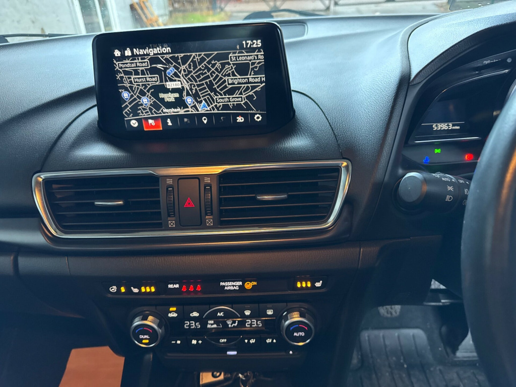 This 2018 Mazda 2.0 SKYACTIV-G Sport Nav Hatchback with only 53942 miles is a stylish and efficient choice for those in search of a reliable petrol vehicle. With 5 seats and 5 doors, it's practical for everyday use, and its ULEZ compliance means it's environmentally friendly as well. Boasting a manual transmission and Euro 6 (s/s) emission standards, this car is not only powerful with 121 ps, but also meets the latest environmental regulations. The MOT is valid until 29/09/2026, providing peace of mind for the future. The car includes 18in Alloy Wheels, Electrically Adjustable and Heated Door Mirrors, Dual Chrome Exhaust Tailpipe, Electric Windows, and an Emergency Tyre Repair Kit, making it a well-equipped and attractive choice for anyone in the market for a hatchback., in alloy wheels, door mirrors - electrically adjustable - heated - auto power folding with integrated indicator lights, dual chrome exhaust tailpipe, electric windows - front and rear with one touch auto up and down on drivers side, emergency tyre repair kit, privacy glass - rear and rear side windows, 7in colour touch-screen display, am-fm-dab radio - single cd player-mp3 with premium bose centrepoint surround-sound system with nine speakers, aha app and stitcher app integration, auxiliary - aux - and two usb input, integrated bluetooth, satellite navigation system, shark fin antenna, usb audio - ipod connectivity, adjustable speed limiter, cruise control with manual speed adjustment, digital speedometer, electric power assisted steering - epas, gear shift indicator, meter set display - colour active driving display - head-up display, multimedia commander, parking sensors - front and rear, reversing camera, trip computer, tyre pressure monitoring system, anti-lock braking system with electronic brake-force distribution and emergency brake assist, driver and front passenger airbags, dynamic stability control with traction control system, electronic parking brake with auto-disengage function, emergency stop signalling system - ess, front passenger airbag cut-off switch, front side airbags, front and rear curtain airbags, hill hold assist, isofix child seat anchorage for outer rear seats, remote central locking with deadlocking, skyactiv-body engineered triple h body structure to help protect occupants from impact forces, seatbelts - front 3-point - elr - x2 with pre-tensioners and load-limiters - height-adjustment, seatbelts - rear 3-point - elr - x3 with pre-tensioners, seatbelts - reminder screen with audible warning, self-supporting rigid and torsion-resistant all-steel body with defined crush zones for the front and rear sections - stable passenger safety cell with side impact reinforcement in the doors, smart city brake support, smart keyless entry, thatcham category 1 alarm and immobiliser, wipers - rear adjustable speed with intermittent, armrest - front centre with slide function, auto dimming rear view mirror, dashboard panel - silver, dome interior courtesy light with integrated spotlight, dual-zone climate control air conditioning, engine start-stop button, front passenger seat - manual height adjustment, glovebox with light, grab handles - front passenger and two rear with coat hooks, head restraints - rear, heated front seats with 3-stage settings, leather-wrapped gear knob and handbrake, luggage compartment - light, rain-sensing front wipers, rear seats - centre armrest with two cupholders, seatback pocket - rear of front passenger seat, seats - 60-40 split folding rear, seats - drivers manual lumbar adjustment, seats - drivers manual slide-recline and height adjustment, steering wheel - leather wrapped, steering wheel - mounted audio and bluetooth controls, steering wheel - telescopic and tilt adjust, storage spaces - door pockets, storage spaces - front centre console with two cupholders, storage spaces - inside front centre armrest, sun visors - drivers and front passengers, sunglasses holder, wipers - front adjustable speed with intermittent, front fog lights - led, headlights - adaptive front lighting system, headlights - coming-leaving home, headlights - dusk-sensing lights, headlights - led with auto headlight levelling, led signature daytime running lights, led signature rear lights, 6 months rac warranty, free delivery service up to 100 miles., hand books, heated steering wheel, never been smoked in, no admin fees, part exchange a pleasure., two keys
