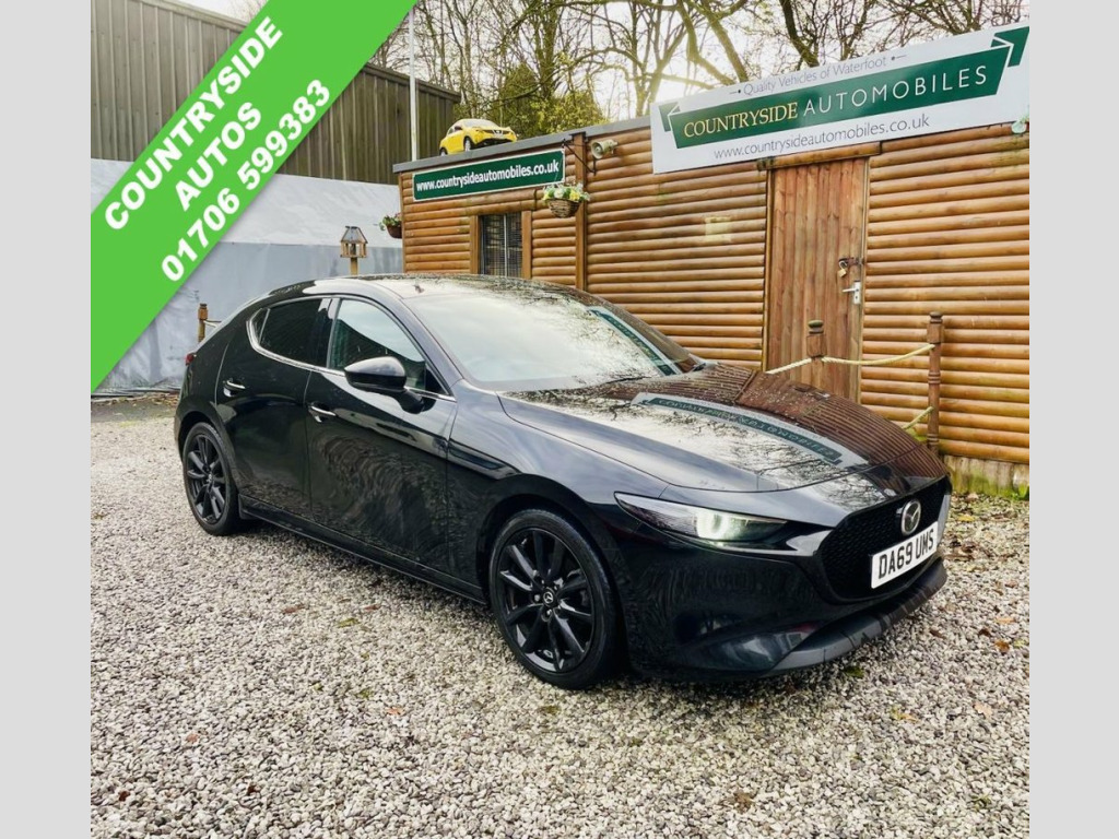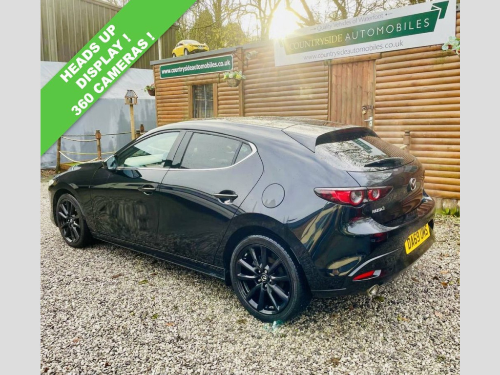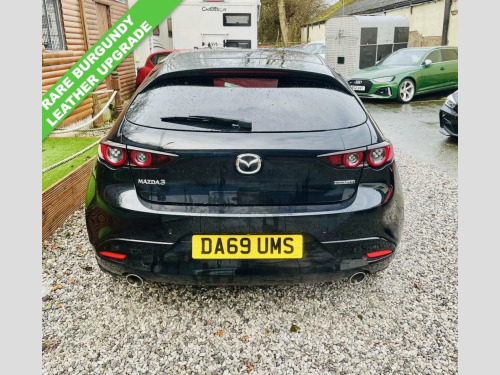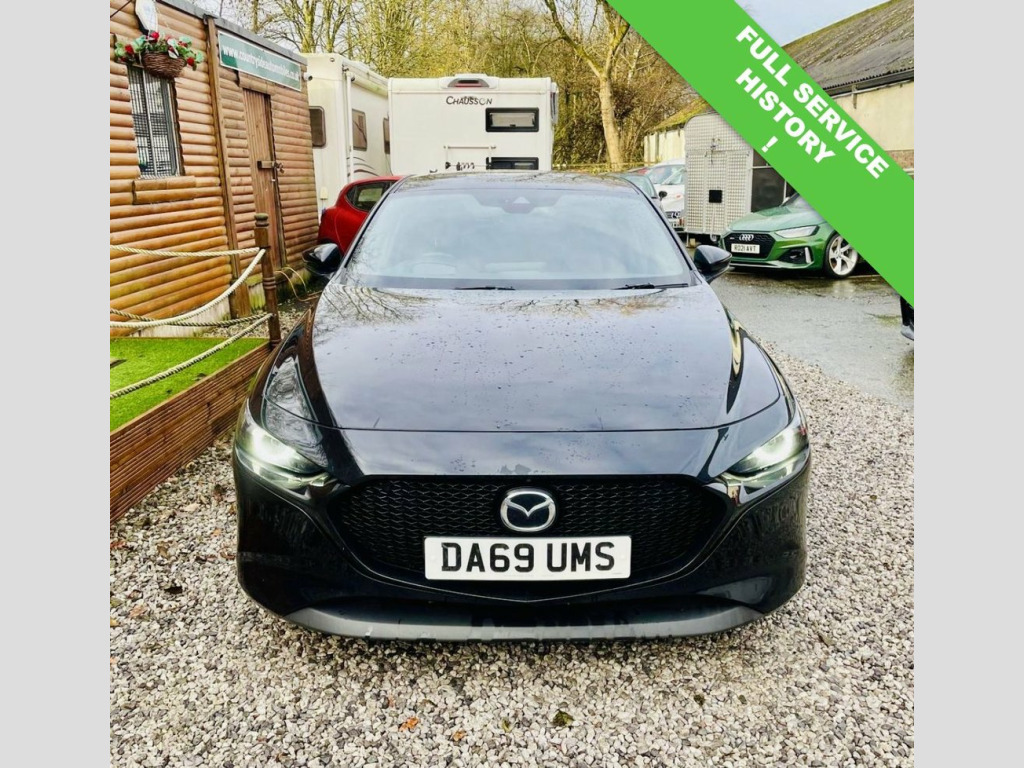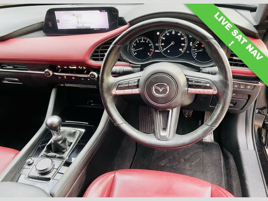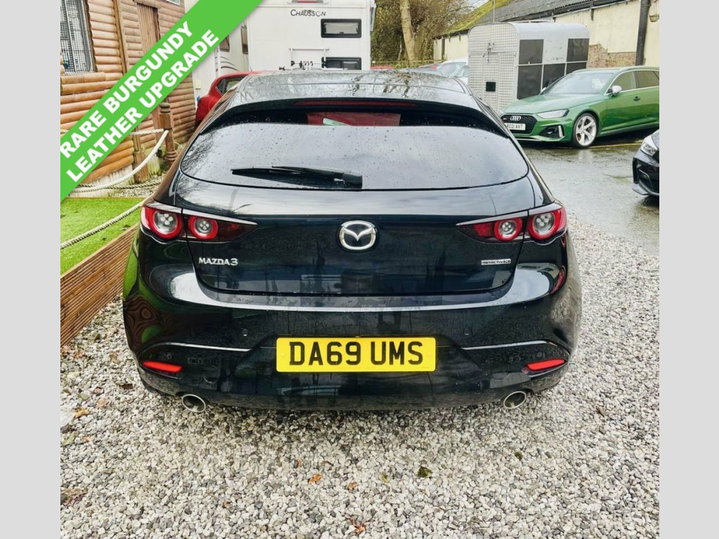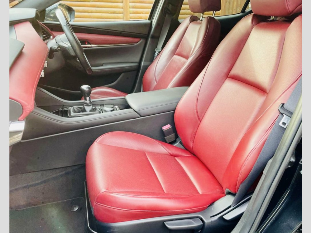 Boasting a full service history and an MOT valid until October 2026, this 2019 Mazda Mazda3 SKYACTIV-X GT Sport Tech presents a compelling proposition. This Euro 6 compliant 2.0L petrol model comes with an 18 month warranty for your peace of mind. Its provenance is further assured with a clear vehicle history check, and it was last serviced on 30 October 2025 at 66,289 miles. Inside, you'll find luxurious Burgundy leather upholstery, dual zone climate control air conditioning, and integrated Bluetooth for seamless connectivity. With head up display, BLIS Blind spot, Power fold mirrors, 360 camera system, USB integrated for Smart phone integration. Heated seats, steering wheel and mirrors. Experience the responsive drive of this Mazda3, capable of accelerating from 0-62mph in just 8.2 seconds, a performance that sets it apart from similar vehicles. The GT Sport Tech trim includes adaptive LED headlights for enhanced visibility and Mazda Radar Cruise Control for effortless journeys. You'll also appreciate the generous boot space, perfect for all your needs, and the low CO2 emissions, indicating a more environmentally conscious choice compared to many other cars. Jet Black, 18in Alloy Wheels - Black Metallic, 360 Degree View Monitor, 7in Colour TFT Display, 8.8in TFT Colour Centre Display, ABS - Anti Lock Braking System, AM-FM-DAB Radio - Single CD-MP3 Featurin, Apple CarPlay and Android Auto, Blind Spot Monitoring with Rear Cross Tr, Bumper - Front Body Coloured with Black , Bumper - Rear Gloss Black Lower Moulding, Chrome Interior Trim Accents - Steering , Colour Active Driving Display - Colour H, Cruising Traffic Support - CTS, DSC - Dynamic Stability Control, Daytime Running Lights, Door Mirrors - Electrically Adjustable-H, Door Mirrors with Adjustable Memory and , Door Mirrors with Auto Dimming Function, Door Pockets - Driver - Front Passenger ,