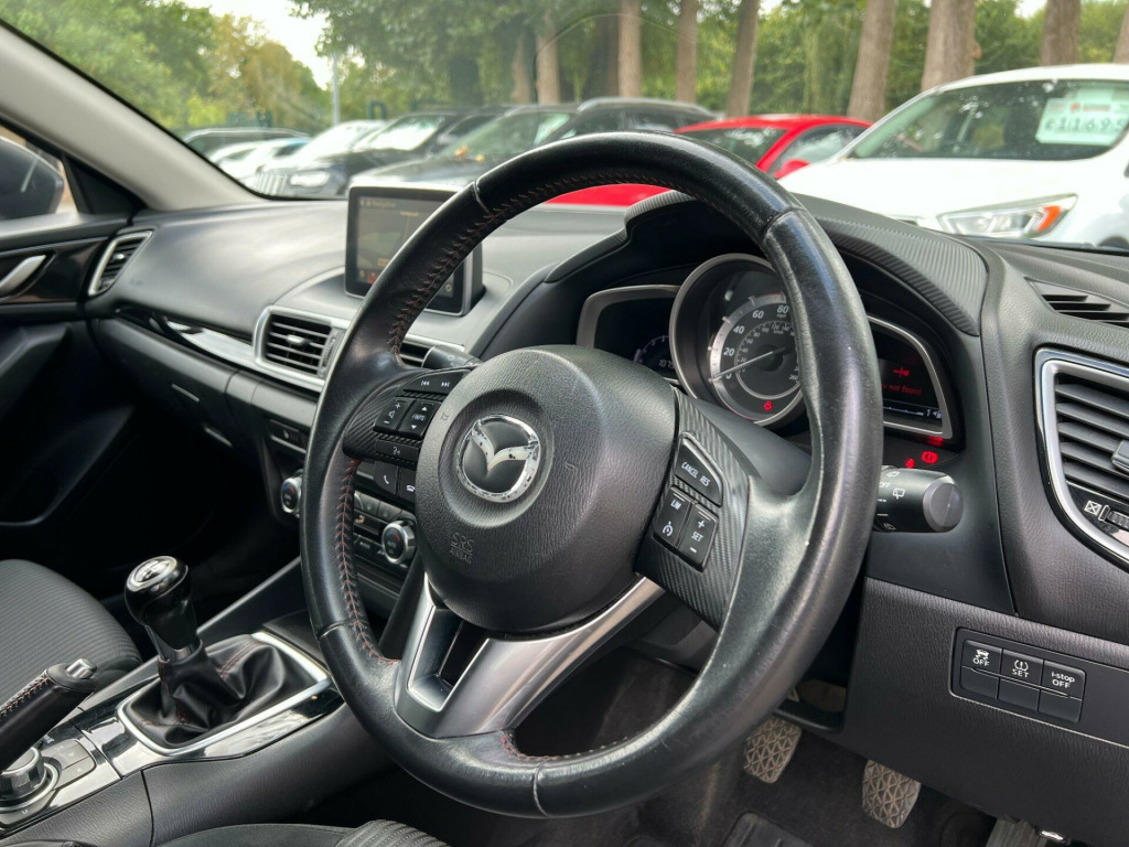 Here at A&A Auto Sales just arrived in stock we have a Mazda 3 2.2 Skyactiv – D- Se- L Nav. We are FCA regulated and offer competitive finance packages, do not hesitate to contact us if you would like to explore the option. All our vehicles come with 6 months comprehensive premium warranty which is extendable for up to 3 years. 3 previous owners, MOT till 10/02/2026, Mileage at 107501 Warranted miles. The Mazda 3 comes with full service history with service book provided. You only pay £20 tax a year which is a great bonus .The buyer will be supplied with the V5 registration document, service records, MOT certificate and a HPI clear certificate too. The vehicle comes with 2 keys.Call us on 01832359305When New This Car Came With:12V Power Socket - Front, 16in Alloy Wheels, ABS - Anti Lock Braking System, AUX Socket, Adjustable Speed Limiter, Aha App and Stitcher App Integration, Air Conditioning - Dual Zone Climate Control, Airbags - Curtain Front, Airbags - Curtain Rear, Airbags - Driver, Airbags - Front Passenger, Airbags - Front Passenger Deactivation System, Analogue Speedometer, Armrest - Front Centre with Storage Box, Armrest - Rear, Audio Systems - AM-FM Radio-CD Player, Auto Dimming Rear View Mirror, Body Coloured Door Mirrors, Cruise Control, Cupholder - Front x2, Cupholder - Rear x2, DSC - Dynamic Stability Control, Dashboard Decoration Panel - Piano Black, Deadlocking, Door Handles - Body Coloured, Door Mirrors - Electrically Adjustable-Heated-Folding, Door Pockets - Front, Dusk Sensing Automatic Headlights, Electric Windows - Front and Rear with One Touch Auto Up and Down on Drivers Side, Emergency Stop Signalling System - ESS, Engine Start-Stop Button, Front Fog Lights, Front Side Airbags, Gear Knob - Leather, Glovebox Illumination, Grab Handles - Front Passenger and Two Rear with Coat Hooks, Handbrake - Leather Wrapped, Head Restraints - Rear, Headlights - Automatic Levelling, Headlights - Bi-Xenon, Headlights - Cleaning, Hill Hold Assist, ISOFIX Child Seat Anchorage for Outer Rear Seats, Immobiliser, Integrated Bluetooth System, Interior Light Do. 12V Power Socket - Front, 16in Alloy Wheels, ABS - Anti Lock Braking System, AUX Socket, Adjustable Speed Limiter, Aha App and Stitcher App Integration, Air Conditioning - Dual Zone Climate Control, Airbags - Curtain Front, Airbags - Curtain Rear, Airbags - Driver, Airbags - Front Passenger, Airbags - Front Passenger Deactivation System, Analogue Speedometer, Armrest - Front Centre with Storage Box, Armrest - Rear, Audio Systems - AM-FM Radio-CD Player, Auto Dimming Rear View Mirror, Body Coloured Door Mirrors, Cruise Control, Cupholder - Front x2, Cupholder - Rear x2, DSC - Dynamic Stability Control, Dashboard Decoration Panel - Piano Black, Deadlocking, Door Handles - Body Coloured, Door Mirrors - Electrically Adjustable-Heated-Folding, Door Pockets - Front, Dusk Sensing Automatic Headlights, Electric Windows - Front and Rear with One Touch Auto Up and Down on Drivers Side, Emergency Stop Signalling System - ESS, Engine Start-Stop Button, Front Fog Lights, Front Side Airbags, Gear Knob - Leather, Glovebox Illumination, Grab Handles - Front Passenger and Two Rear with Coat Hooks, Handbrake - Leather Wrapped, Head Restraints - Rear, Headlights - Automatic Levelling, Headlights - Bi-Xenon, Headlights - Cleaning, Hill Hold Assist, ISOFIX Child Seat Anchorage for Outer Rear Seats, Immobiliser, Integrated Bluetooth System, Interior Light Dome with Integral Spot Light, LED Daytime Running Lights, Luggage Compartment - Light, Multimedia Commander, Overhead Console with Sunglassess Holder, Pollen Filter, Power Assisted Steering - Electronic, Privacy Glass - Rear and Rear Side Windows, Rain-Sensing Front Wipers, Rear Lights - LED, Rear Parking Sensors, Remote Central Locking, SCR - Secondary Collision Reduction, Satellite Navigation - European Mapping with 3-years Map Updates, Satellite Navigation System, Seatback Pocket - Passenger Side, Seatbelt Reminder for Front and Rear, Seats - 60-40 Split Folding Rear, Seats - Drivers Dial Reclining and Height Adjustment, Seats - Drivers Manual Lumbar Adjustment, Seats - Front Heated, Shark Fin Antenna, Smart City Brake Support, Speakers x6, Spoiler - Rear Roof, Steering Wheel - Leather, Steering Wheel - Mounted Audio and Bluetooth Controls, Steering Wheel - Tilt and Height Adjustment, Sunvisors - Drivers and Passengers with Covered Vanity Mirror-Ticket Holder-Illumination, TCS - Traction Control System, Tailpipes - Dual Chrome, Thatcham Category 1 Alarm and Immobiliser, Touch Screen - 7in Colour TFT, Trip Computer, Tyre Pressure Monitoring System, Tyre Repair Kit, USB - iPod Connectivity, USB Connection x2, Wipers - Front Adjustable Speed with Intermittent, Wipers - Rear Adjustable Speed with Intermittent. Full service history