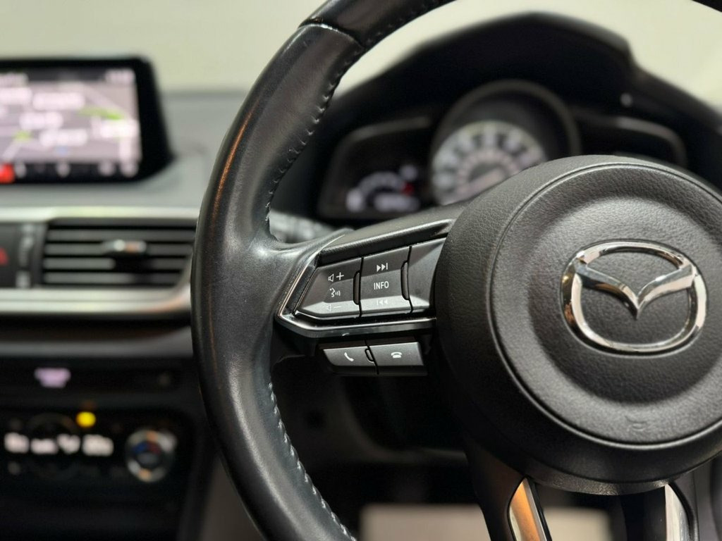 ** NATIONWIDE DELIVERY ** SAT NAV ** HEATED SEATS ** ULEZ COMPLIANT ** FULL SERVICE HISTORY ** X2 KEYS ** 1 YEAR MOT ** FRESH SERVICE ** 1 MONTH WARRANTY ** 12 MONTHS AA BREAKDOWN COVER ** Introducing our sleek Jet Black Mazda3 SE-L Nav (2019), a stylish and refined hatchback powered by Mazda's impressive 2.2 SKYACTIV-D 150PS Euro 6 diesel engine. This model offers an enjoyable and efficient driving experience, paired with Mazda's signature build quality and responsive manual gearbox. With its sporty design and 16" alloy wheels, it delivers a smart road presence that suits both daily commutes and longer journeys. Inside, the Mazda3 is packed with comfort and technology features designed to make every drive enjoyable. You'll find a 7" colour touchscreen, satellite navigation, Bluetooth, Aha and Stitcher app integration, dual-zone climate control, heated front seats, auto-dimming rear-view mirror, and auto-folding heated mirrors. Convenience is further enhanced by cruise control, rear parking sensors, an electronic parking brake with auto-disengage, and multiple USB/AUX connectivity options. The well-designed cabin also includes clever touches such as integrated lighting, cupholders, and 60/40 split-folding rear seats. Safety and stability are at the heart of this Mazda3. It features Mazda's SKYACTIV-Body structure, designed to protect occupants with reinforced impact zones, along with Smart City Brake Support, a Thatcham Category 1 alarm, tyre pr Jet Black, Cloth - Black, 16in Alloy Wheels, 7in Colour Touch-screen Display, AM-FM-DAB Radio - Single CD Player-MP3 A, Adjustable Speed Limiter, Aha App and Stitcher App Integration, Analogue Speedometer, Anti-lock Braking System with Electronic, Armrest - Front Centre with Slide Functi, Auto Dimming Rear View Mirror, Auxiliary - AUX - and Two USB Input, Cruise Control with Manual Speed Adjustm, Dashboard Panel - Silver, Dome Interior Courtesy Light with Integr, Door Mirrors - Electrically Adjustable -, Driver and Front Passenger Airbags, Dual Chrome Exhaust Tailpipe, Dual-Zone Climate Control Air Conditioni, Dynamic Stability Control with Traction , Electric Power Assisted Steering - EPAS,