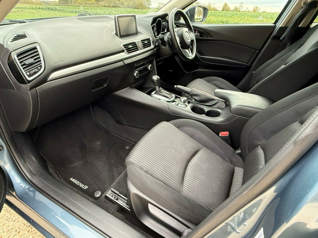 SAT NAV+HEATED SEATS+CAMERA+KEYLESS ENTRY+BOSE SOUND+HEAD UP DISPLAY+PARK SENSORS+GLOSS BLACK ALLOYS+PRIVACY GLASS+APPLE CAR PLAY+PART EX CLEARANCE+FINANCE FROM 8.9% APR.This 2016 Mazda3 SKYACTIV-D Sport Nav presents a remarkable ownership history with only two previous owners and a low mileage of 70,000 miles for its age, complemented by a full service history and a 6 month warranty for your peace of mind. This Euro 6 compliant 2.2 litre diesel model, in its Sport Nav trim, offers a refined driving experience. You'll appreciate the integrated Bluetooth system for seamless connectivity, front parking sensors to aid manoeuvring, and dusk sensing automatic headlights for convenience. For enhanced safety, it includes a Safety Pack featuring Blind Spot Assistance and LED headlights, while the premium BOSE Centrepoint Surround System with nine speakers provides an exceptional audio experience.The Mazda3 SKYcdot-D Sport Nav is designed to impress, offering a compelling blend of performance and practicality. Its acceleration from 0 to 62 miles per hour in just 9.7 seconds demonstrates its responsive nature, making it a capable performer on the road. Furthermore, the generous boot space ensures you have ample room for luggage or shopping, making it a versatile choice for everyday use and longer journeys. These attributes, combined with its well maintained provenance and desirable features, position this Mazda3 as a standout option compared to other vehicles in its class.. 12V Power Socket - Front, 18in Alloy Wheels, ABS - Anti Lock Braking System, AUX Socket, Adjustable Speed Limiter, Aha App and Stitcher App Integration, Air Conditioning - Dual Zone Climate Control, Airbags - Curtain Front, Airbags - Curtain Rear, Airbags - Driver, Airbags - Front Passenger, Airbags - Front Passenger Deactivation System, Armrest - Front Centre with Storage Box, Armrest - Rear, Audio Systems - AM-FM Radio-CD Player, Auto Dimming Rear View Mirror, Body Coloured Door Mirrors, Cruise Control, Cupholder - Front x2, Cupholder - Rear x2, DSC - Dynamic Stability Control, Dashboard Decoration Panel - Silver, Deadlocking, Digital Speedometer, Door Handles - Body Coloured, Door Mirrors - Electrically Adjustable-Heated-Folding, Door Pockets - Front, Dusk Sensing Automatic Headlights, Electric Windows - Front and Rear with One Touch Auto Up and Down on Drivers Side, Emergency Stop Signalling System - ESS, Engine Start-Stop Button, Front Fog Lights with Chrome Surround, Front Side Airbags, Gear Knob - Leather, Glovebox Illumination, Grab Handles - Front Passenger and Two Rear with Coat Hooks, Handbrake - Leather Wrapped, Head Restraints - Rear, Head Up Display, Headlights - Adaptive Front Lighting System, Headlights - Automatic Levelling, Headlights - Bi-Xenon, Headlights - Cleaning, Hill Hold Assist, ISOFIX Child Seat Anchorage for Outer Rear Seats, Immobiliser, Integrated Bluetooth System, Interior Light Dome with Integral Spot Light, LED Daytime Running Lights, Luggage Compartment - Light, Multimedia Commander, Overhead Console with Sunglassess Holder, Parking Sensors - Front, Pollen Filter, Power Assisted Steering - Electronic, Premium BOSE Centrepoint Surround System - Speakers x9, Privacy Glass - Rear and Rear Side Windows, Rain-Sensing Front Wipers, Rear Lights - LED, Rear Parking Sensors, Remote Central Locking, SCR - Secondary Collision Reduction, Satellite Navigation - European Mapping with 3-years Map Updates, Satellite Navigation System, Seatback Pocket - Passenger Side, Seatbelt Reminder for Front and Rear, Seats - 60-40 Split Folding Rear, Seats - Drivers Dial Reclining and Height Adjustment, Seats - Drivers Manual Lumbar Adjustment, Seats - Front Heated, Shark Fin Antenna, Smart City Brake Support, Smart Keyless Entry, Spoiler - Rear Roof, Steering Wheel - Leather, Steering Wheel - Mounted Audio and Bluetooth Controls, Steering Wheel - Paddle Shift, Steering Wheel - Tilt and Height Adjustment, Sunvisors - Drivers and Passengers with Covered Vanity Mirror-Ticket Holder-Illumination, TCS - Traction Control System, Tailpipes - Dual Chrome, Thatcham Category 1 Alarm and Immobiliser, Touch Screen - 7in Colour TFT, Trip Computer, Tyre Pressure Monitoring System, Tyre Repair Kit, USB - iPod Connectivity, USB Connection x2, Wipers - Front Adjustable Speed with Intermittent, Wipers - Rear Adjustable Speed with Intermittent, Cloth - Black, Apple car play. Full service history