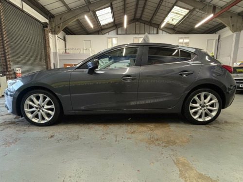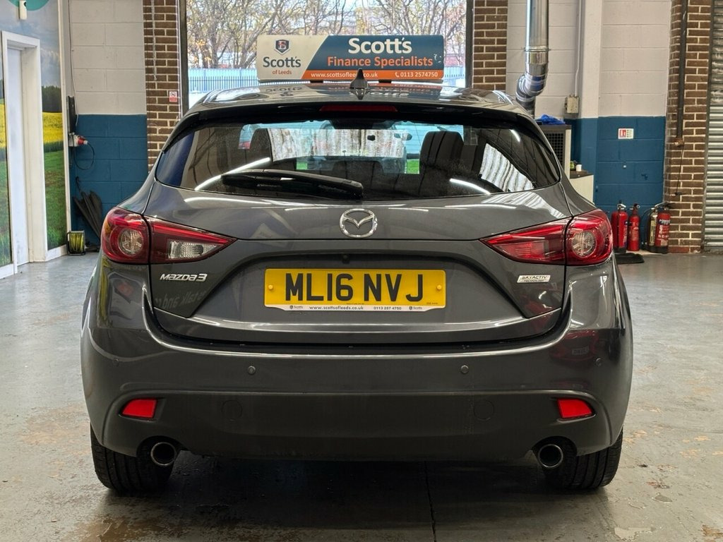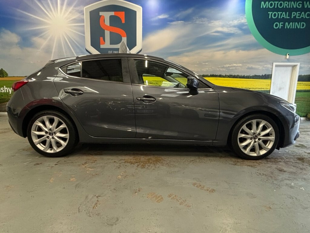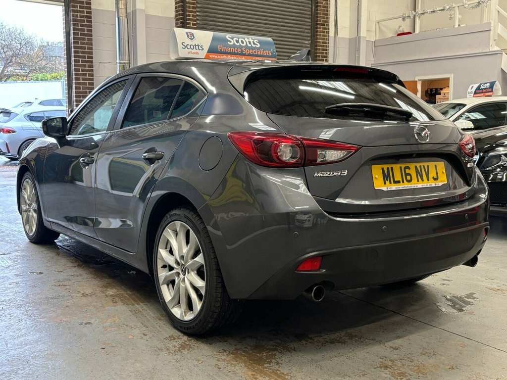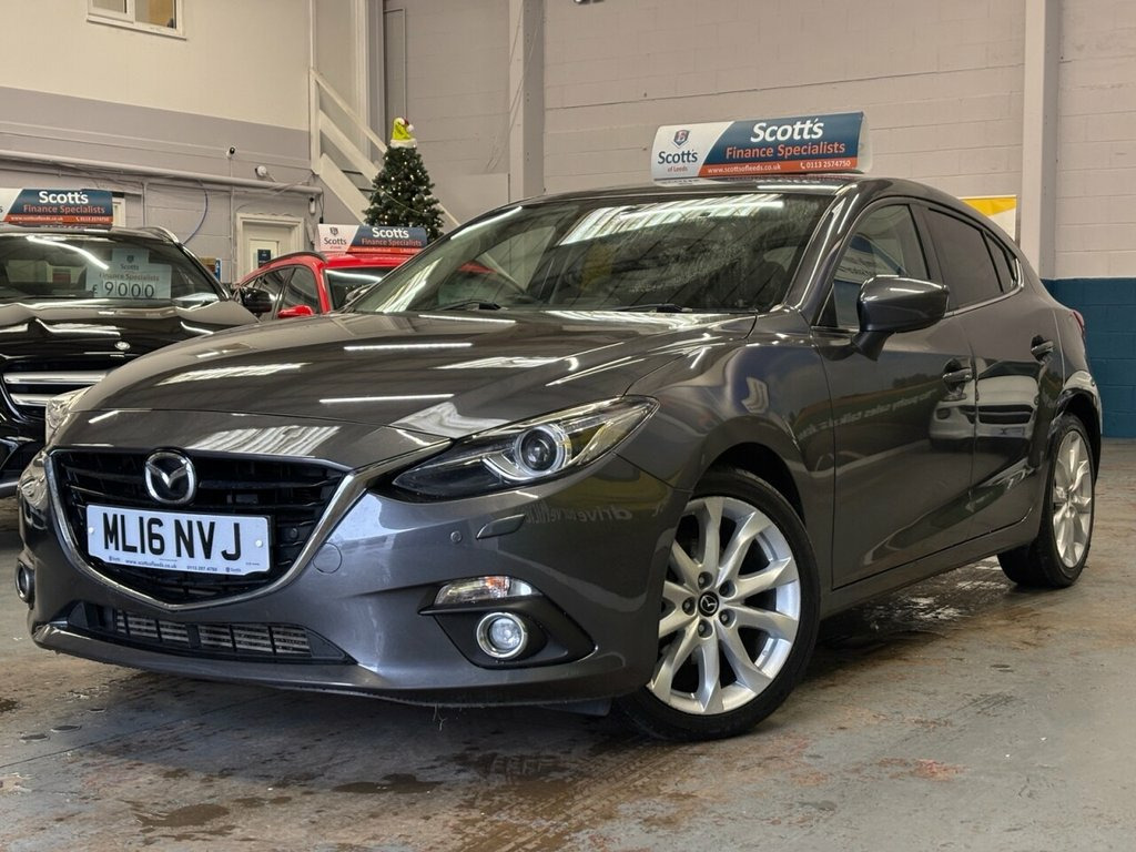 Scott's of Leeds used Car Sales are pleased to offer this MAZDA 3 2.2 SKYACTIV-D Sport Nav Hatchback 5 Door Diesel Automatic in Grey. The car is in good condition throughout, in a lovely colour combination and a great specification including Satellite Navigation, Cruise control, Speed limiter, DAB radio, apple carplay, Bluetooth, AUX and USB, reverse camera, Front and Rear parking sensors, Heated seats, privacy glass, Keyless entry, Pushbutton start, automatic lights and wipers, alloy wheels, isofix, Electric windows, Heads up Display, Bose sound, and much much more. The car will be supplied with an up to date service record including 7 services having just been serviced in our Workshop, an MOT until September 2026 and 2 Keys ready to drive away. 3 MONTH NATIONWIDE WARRANTY provided with all vehicles. NATIONWIDE DELIVERY also available. A guaranteed 12 Months MOT can be added for an extra £100. DISCLAIMER: The above specification is true and correct. Any other specification listed elsewhere can sometimes be incorrect. Please check with Sales Executive to clarify this if needed prior to purchase. 12V Power Socket - Front, 18in Alloy Wheels, ABS - Anti Lock Braking System, AUX Socket, Adjustable Speed Limiter, Aha App and Stitcher App Integration, Air Conditioning - Dual Zone Climate Con, Airbags - Curtain Front, Airbags - Curtain Rear, Airbags - Driver, Airbags - Front Passenger, Airbags - Front Passenger Deactivation S, Armrest - Front Centre with Storage Box, Armrest - Rear, Audio Systems - AM-FM Radio-CD Player, Auto Dimming Rear View Mirror, Body Coloured Door Mirrors, Cruise Control, Cupholder - Front x2, Cupholder - Rear x2, DSC - Dynamic Stability Control, Dashboard Decoration Panel - Silver, Deadlocking, Digital Speedometer, Door Handles - Body Coloured, Door Mirrors - Electr