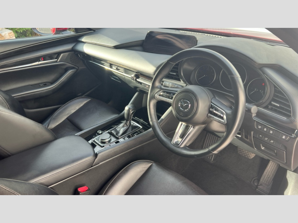 Mazda 3 2.0 e-Skyactiv G MHEV GT Sport Edition 5dr Auto 7" colour TFT display, 8.8" Colour centre touch screen display with Mazda Connect infotainment, Apple car play/Android Auto, Audio transfer from bluetooth devices, Blind spot monitoring with rear cross traffic alert, Colour active driving display inc Windscreen projected,Traffic Sign Recognition, turn-by- turn navigation and Mazda Radar Cruise Control information, Digital instrument cluster, Driver attention alert system, E-call with GPS, Emergency stop signalling system, Engine start/stop button, Front and rear parking sensor with audible and visual warning, Head up Display, Integrated bluetooth with steering wheel mounted controls, Intelligent speed assist, Lane keep assist system (LAS) with Lane departure warning system (LDWS), Mazda connected services, Mazda Navigation System with european mapping, Mazda Radar Cruise Control, Mobile App interface, Multimedia Commander, PAS, Reversing camera, Service indicator, Tailgate, Traffic sign recognition (TSR), Trip computer, Cylinder Deactivation, i-stop, Mazda Multimedia System with AM / FM / DAB radio with 8 speakers, Adaptive LED Headlights, Auto dimming driver's door mirrors, B-pillar garnish in piano black, Body coloured, electrically adjustable, heated auto power folding door mirrors with integrated indicators, Coming/leaving home lighting function, Dark metallic finish signature wing, Door mirrors with adjustable memory and tilt-down function when reversing, Dual chrome tailpipes tip, Dusk sensing headlights, Electric front/rear windows with one touch/auto up/down, Frameless auto dimming interior rear view mirror, Front body coloured bumper with black lower bezel, Front kodo turn signal, Gloss black finish front grille, Gloss black rear roof spoiler, LED indicator lights, LED third brake light, Privacy glass with dark tinting on rear side windows and rear window, Rain sensing front wipers with adjustable sensitivity and speed, Rear colour coded bumper with gloss black lower moulding, Rear fog lights, Rear side wing doors, Signature LED daytime running lights, Signature LED rear combination lights, Speed adjustable rear wash wiper with intermittent wipe, 12v electrical power outlet, 3 seat bench in 2nd row, 60/40 split fold down rear seats, Chrome interior trim accents with steering wheel centre bezel, surround of engine start / stop button and glove box handle, Dark roof headlining, ceiling and pillars, Dark vinyl leather door panel inserts, Driver seat power slide, recline, height and lumbar adjustment with driver door mirror memory, Driver, front passenger and two rear door pockets, Driver, Front passenger and two rear grab handles with coathooks, Driver/passenger sunvisors + vanity mirrors (drivers side with ticket holder), Dual zone climate control air conditioning, Folding rear centre armrest with two cup holders, Front and rear courtesy lamps, Front armrest, Front centre storage with two cupholders, Front head restraints, Front passenger seatback pocket, Front passengers seat manual slide, recline and height adjustment, Gear shift drive selection switch sport mode, Heated front seats with 3 stage setting, Heated steering wheel, Illuminated glovebox, Interior colouration dashboard and doorcards in black with dark stitching, ISOFIX child seat anchorage points attached on outer rear seats, Leather upholstery, Leather wrapped gear shift knob, Leather wrapped steering wheel, LED interior light, Luggage compartment light, Paddle shift controls, Power outlet in luggage compartment, Roof mounted sunglasses holder, Single front passenger seat, Three height adjustable rear head restraints, Tilt/height adjustable steering wheel, USB input, 3 point ELR front seatbelts with pretensioners, 3 rear 3 point seatbelts with ELR, Anti-lock braking system (ABS), Drivers knee airbag, DSC - Dynamic Stability Control, Dual stage driver and single stage passenger airbags, EBD - Electronic brakeforce distribution, Electronic parking brake with auto disengage function and auto hold function, Front and rear curtain airbags, Front passenger airbag cut-off switch, Front side airbags, Front smart city brake support, G-Vectoring control plus, Hill launch assist, Intelligent Traction Control system, Manual child lock in rear doors, Mild Hybrid system with regenerative braking, Seatbelt reminder for driver/front passenger and rear seats, Tyre pressure monitoring system (TPMS), Auto door lock when driving, Remote central locking + deadlocks, Smart keyless entry, Thatcham accredited alarm and immobiliser, 18" Grey alloy wheels, Emergency tyre repair kit