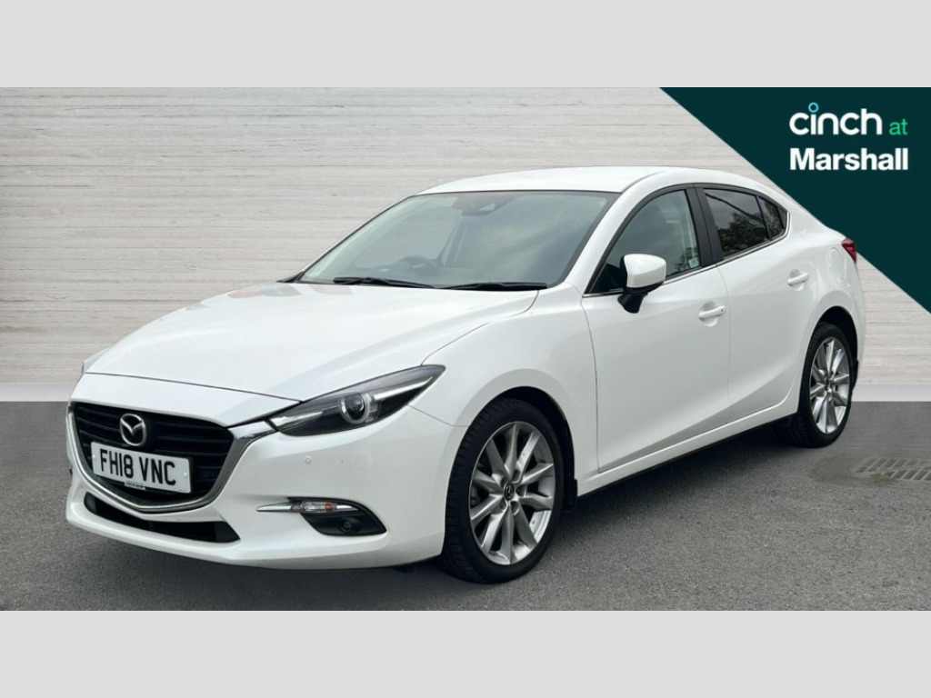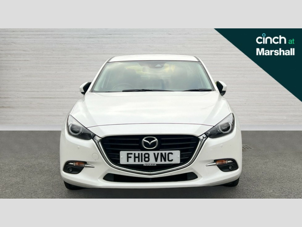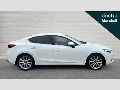 Mazda 3 2.0 Sport Nav 4dr 'Lights On' Reminder warning buzzer, 7" touch screen, Bluetooth system, Cruise control, Digital clock, Digital exterior temperature gauge, Electric hydraulic power assisted steering, Emergency stop signalling system, Front and rear parking sensors, Head up Display, Integrated navigation system, Internet access with app integration, Mobile App interface, Multi function display, Remote fuel cap release, Reversing camera, Service indicator, Tachometer, Trip computer, Dynamic stability control, Auxiliary input socket, Bose premium 9 speaker system, DAB Digital radio, Single play CD/radio with MP3 compatability, Steering wheel audio controls, USB/iPod connection, 3 speed front intermittent wipe and electric wash, Adaptive front lighting system, Auto dimming interior mirror, Automatic coming/leaving home lighting function, Body colour door handles, Body colour electric adjustable heated door mirrors with integral indicators, Body colour lip spoiler, Body colour side mouldings, Body coloured bumpers, Chrome grille, Dual exhaust pipes, Dusk sensitive headlamps, Electric folding door mirrors, Electric front/rear windows, Electric heated rear glass window, LED daytime running lights, LED front fog lights, LED Headlights, LED rear lights, Privacy glass, Rain and light sensors, Rain sensing front wipers, 5 headrests, 60/40 split rear seat back, Auxilliary 12V power socket, Cigar lighter, Cloth upholstery, Cupholders - 2 in rear centre armrest, Driver seat lumbar adjustment, Driver's seat height adjustment, Driver's vanity mirror with cover/ticket holder, Dual zone climate control, Front centre console with storage box with tray, lid + 2 cupholders, Front door pockets, Front grab handles, Heated front seats, Illuminated ashtray, Illuminated glovebox, Illuminated vanity mirrors, Instrument panel light dimmer, Interior courtesy light, Isofix child seat attachment, Leather gearknob, Leather handbrake, Leather wrapped steering wheel, Luggage compartment lighting, Passenger seat back pocket, Passenger seat height adjuster, Passenger sunvisor with vanity mirror, Pollen filter, Rear centre armrest, Rear grab handles with coathooks, Silver interior door handles, Sunglasses holder, Tilt/telescopic adjustable steering wheel, Welcome mode lighting, 3 point ELR front seatbelts with pretensioners, 3 rear 3 point seatbelts with ELR, ABS+Electronic Brake force Distribution, Active Traction Control (TRC), Crash sensor, Driver and passenger airbags, Electronic parking brake, Emergency brake assist, Front and rear curtain airbags, Front side airbags, Hill hold assist, Passenger airbag deactivate switch, Seatbelt reminder front and rear, Tyre pressure monitoring system, Deadlocking system, Immobiliser, Keyless Start, Remote central door locking, Smart entry, Thatcham Cat.1 alarm, Silver interior trim, 18" Alloy wheels, Tyre repair kit