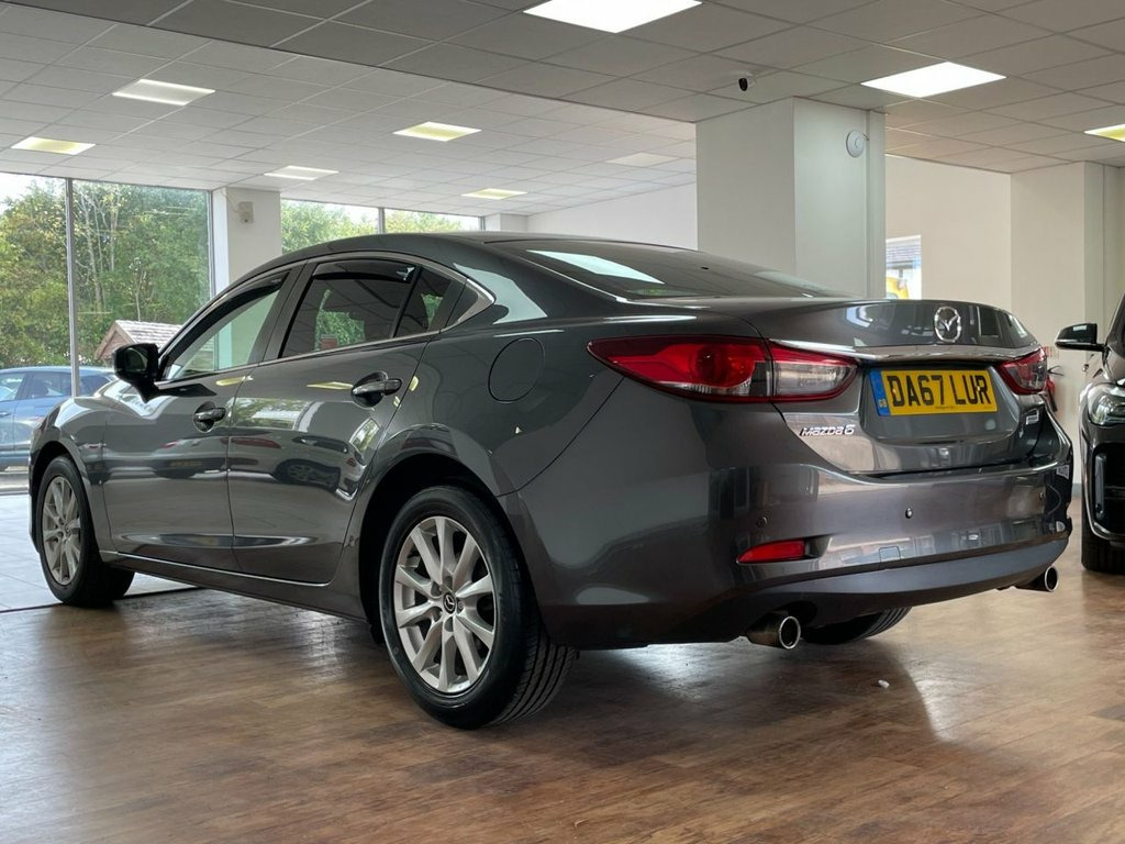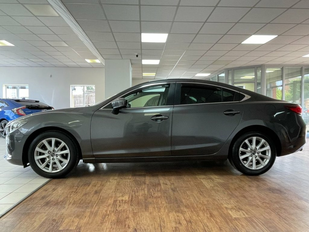 Jacksons Motor Group are proud to present this outstanding example of a Mazda 6 in Metallic Grey which is a great mileage car for its age and specification with over 10,000 miles below the national average. This is the Euro 6 Petrol version of the car which is ultra rare on this model and size of car as most were sold as diesels- this car can go in the clean air zones of Birmingham & Bath with no charge levied. This car has truly been cherished and this shows in the cars physical condition and maintenance record with the car having full service history (8 Services). The car will be serviced this month at our in house service centre. The Mazda 6 is a classy alternative to the standard saloons on the road and is destined to put a smile on the next owners face. Meteor Grey Mica, 12V Power Socket - Front, 17in Alloy Wheels, ABS - Anti Lock Braking System, AUX Socket, Adjustable Speed Limiter, Air Conditioning - Dual Zone Climate Con, Airbags - Curtain Front, Airbags - Curtain Rear, Airbags - Driver, Airbags - Front Passenger, Airbags - Front Passenger Deactivation S, Armrest - Front Centre with Slide Functi, Armrest - Rear, Armrest - Rear Centre with Cupholders x2, Auto Dimming Rear View Mirror, Box - Between Driver and Passenger Seats, Cruise Control, DAB Radio, DSC - Dynamic Stability Control, Daytime Running Lights, Deadlocking, Decoration Panel - Dark Gloss, Door Handles - Body Coloured, Door Mirrors - Electrically Adjustable-H, Door Mirrors - I
