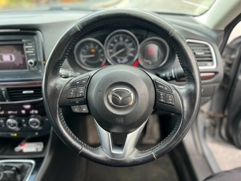 MAZDA 6 2.0 Sport Nav 4dr Manual Petrol 2.0L Saloon. Only 92377 warranted miles on the clock. MOT till 23rd March 2026. Only 1 previous owners from new. Service History Available: 7 Services. Car drives well with no mechanical faults. Full V5 Available. Good spec including: 6 Speed, Air Conditioning, Auto Climate Control, Automatic Lights, Automatic Wipers, Aux In, Bluetooth, Cruise Control, Dual Zone Climate, Leather Steering Wheel, CD/Radio/AUX, Media Connectivity, AC/Climate Control, Electric Windows, Alloy Wheels, Cruise Control, Central Locking and many more. Nationwide Delivery Available. P/X Welcome. HPI Clear. ULEZ Compliant. 2 Keys. Any questions don't hesitate to contact us on 07443456706. WhatsApp available as well v power socket - front, 19in alloy wheels, abs - anti lock braking system, aux socket, adjustable speed limiter, air conditioning - dual zone climate control, airbags - curtain front, airbags - curtain rear, airbags - driver, airbags - front passenger, airbags - front passenger deactivation system, armrest - front centre with slide function, armrest - rear, armrest - rear centre with cupholders x2, auto dimming rear view mirror, box - between driver and passenger seats, combined bluetooth phone and audio streaming system, cruise control, dsc - dynamic stability control, deadlocking, decoration panel - red gloss, door handles - body coloured, door mirrors - electrically adjustable-heated-folding, door mirrors - integrated turning signals, door pockets - front, door pockets - rear, dusk sensing automatic headlights, electric windows - front and rear with timer function, electronic power assisted steering, emergency stop signalling system - ess, engine start-stop button, exhaust tailpipes - twin, front centre console with storage box, front fog lights, front side airbags, gear knob - leather, glovebox illumination, grab handles - front passenger and two rear with coat hooks, handbrake - leather wrapped, head restraints - front height adjustment, head restraints - rear, headlights - adaptive front lighting system, headlights - automatic levelling, headlights - bi-xenon, headlights - cleaning, hill hold assist, isofix child seat anchorage for outer rear seats, immobiliser, integrated bluetooth system, interior light dome with integral spot light, led daytime running lights, luggage compartment - light, multimedia commander, multimedia system, parking sensors - front, pollen filter, premium bose centrepoint surround system - speakers x11, privacy glass - rear and rear side windows, rain-sensing front wipers, rear air vents, rear parking sensors, reversing camera, scr - secondary collision reduction, srs - supplementary restraint system, satellite navigation - powered by tomtom technology, seatback pocket - driver and front passenger, seatbelt reminder for front and rear, seats - 60-40 split folding rear, seats - drivers electric 6-way adjustment, seats - drivers electric adjustment with memory, seats - drivers electric height adjustment, seats - drivers power lumbar adjustment, seats - electric 4-way front passenger, seats - front heated, single cd player - mp3 compatibility, smart city brake support, smart keyless entry, speakers x11, steering wheel - leather, steering wheel - mounted remote audio controls, steering wheel - tilt and height adjustment, sunvisors - drivers and passengers with covered vanity mirror-ticket holder-illumination, tcs - traction control system, thatcham category 1 alarm and immobiliser, touch screen - 5.8in colour, trip computer, tyre pressure monitoring system, tyre repair kit, usb connection, voice control for navigation, i-eloop status, i-stop status, ipod connectivity