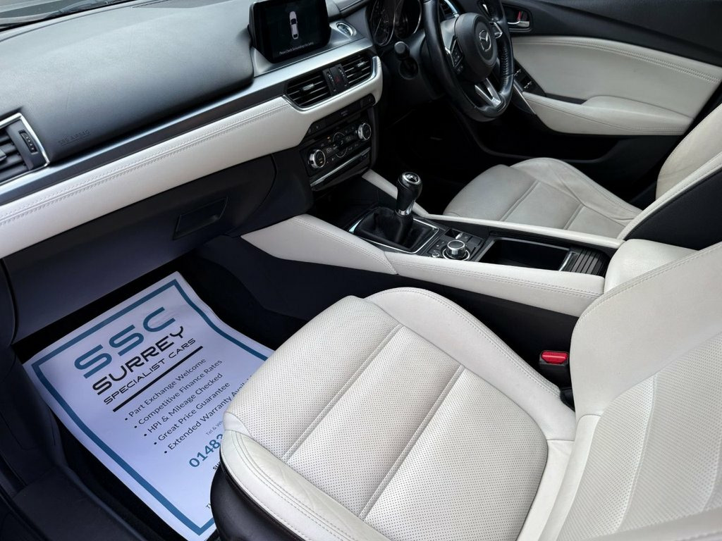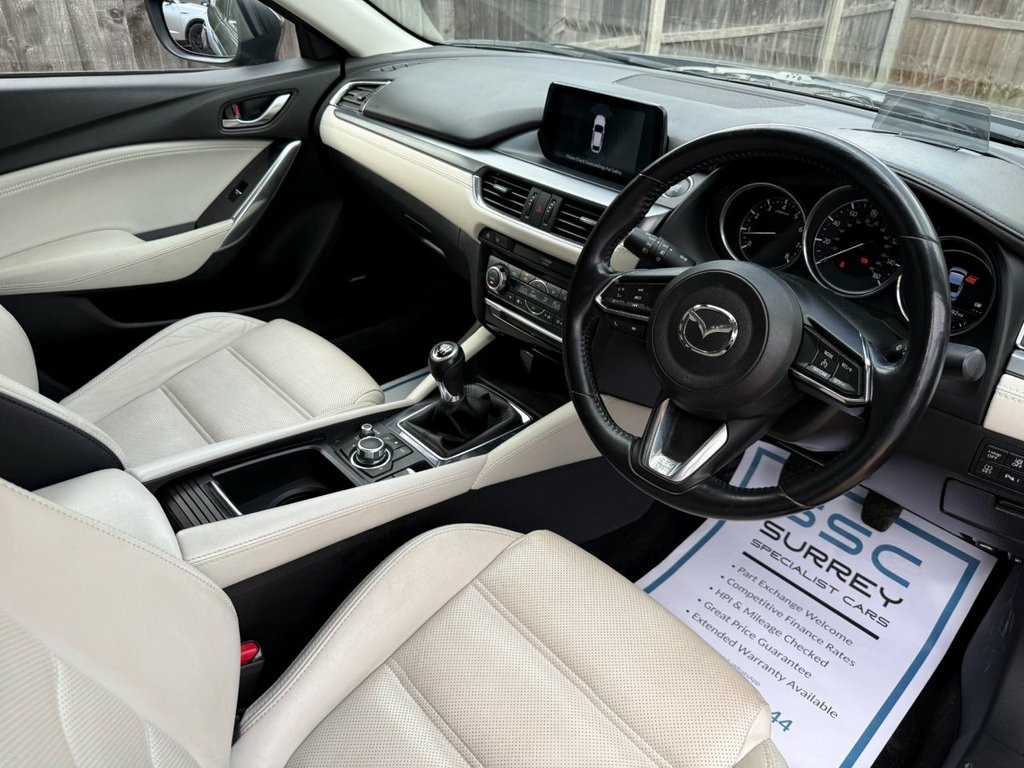 Surrey Specialist Cars are proud to present our lovely Mazda 6 Sport Nav. This amazing car comes with Service History, finished in stunning metallic grey with full leather seats. The car was last serviced in April 2025 at 47,829 miles. The car has a Long MOT until April 2026 so it is ready to go. The 2L Petrol engine offers superb economy at over 56 MPG on combined cycle. Features Include Multifunction Steering Wheel, Trip Computer, Satellite Navigation, Parking Camera,  Heated Seats, Cruise Control, Speed Limiter, Stereo/Phone Control, FM Radio, Bluetooth Audio, two USB Inputs, Parking Sensors, Dual Zone Climate Control, Heated Rear and Front Screen, CD Player, 6 Speed Manual Gearbox, 19 Inch Alloy Wheels and two Remote Control Keys to name a few.  12V Power Socket - Front, 19in Alloy Wheels - Bright Finish, ABS - Anti Lock Braking System, AUX Socket, Adjustable Speed Limiter, Air Conditioning - Dual Zone Climate Con, Airbags - Curtain Front, Airbags - Curtain Rear, Airbags - Driver, Airbags - Front Passenger, Airbags - Front Passenger Deactivation S, Armrest - Front Centre with Slide Functi, Armrest - Rear, Armrest - Rear Centre with Cupholders x2, Auto Dimming Rear View Mirror, Box - Between Driver and Passenger Seats, Cruise Control, DAB Radio, DSC - Dynamic Stability Control, Deadlocking, Decoration Panel - Red Gloss, Door Handles - Body Coloured, Door Mirrors - Electrically Adjustable-H, Door Mirrors - Integrated Turning Signal, D