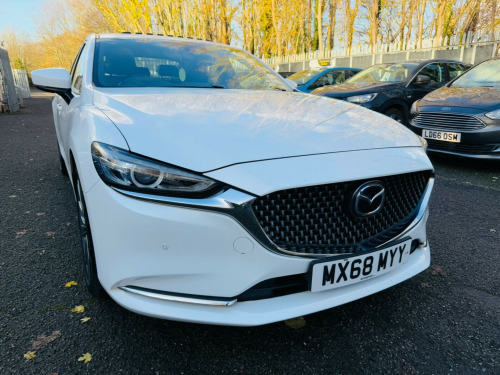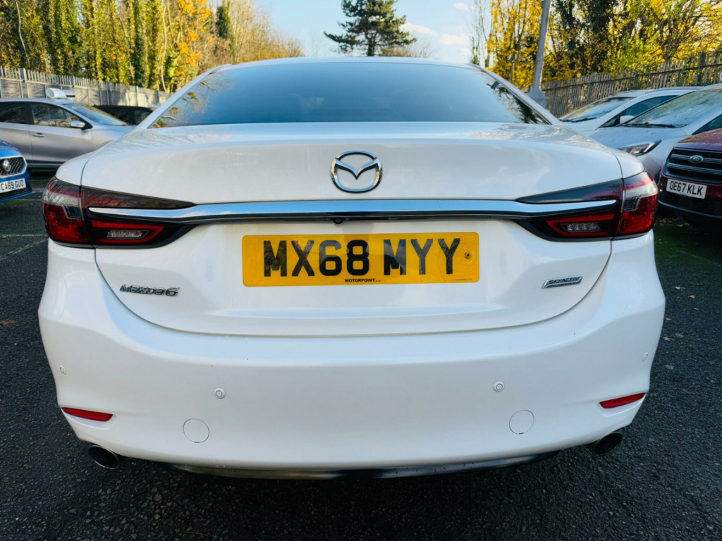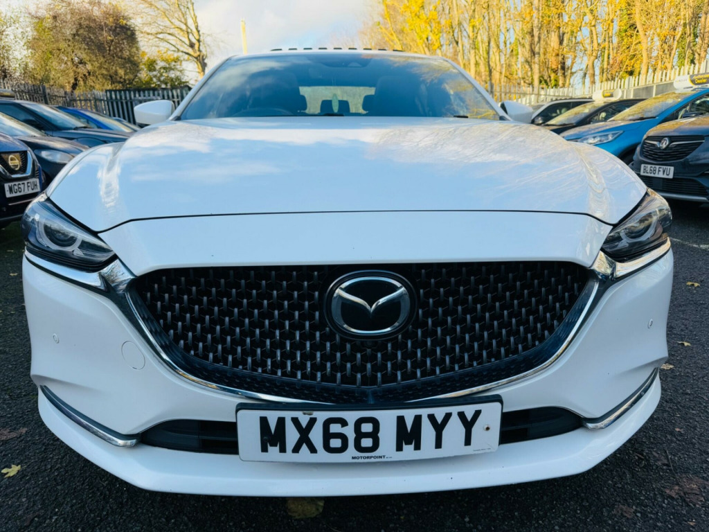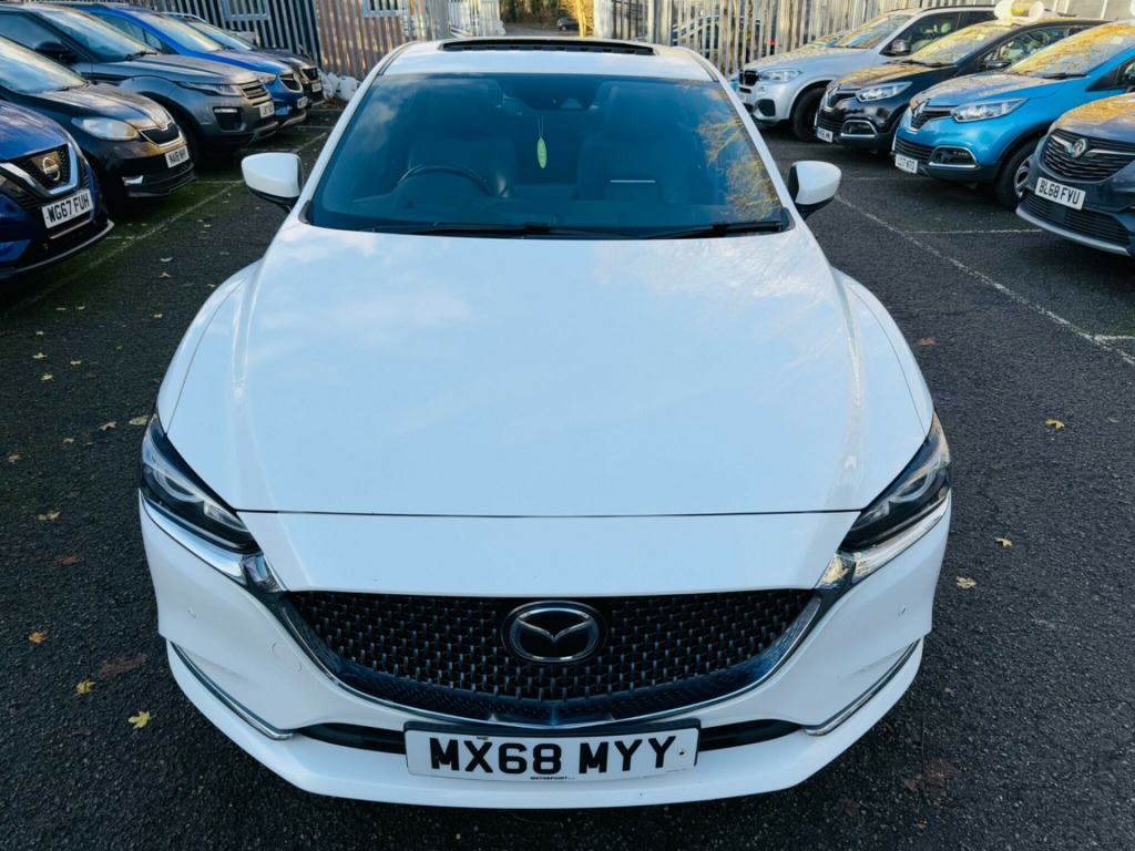 WHITE, SERVICE HISTORY, NAVIGATION SYSTEM, FRONT AND REAR PARKING CAMERA, SUN ROOF AND PANORAMIC ROOF, LEATHER AND HEATED SEATS, ONLY ONE FORMER KEEPER, SPARE KEY, ULEZ COMPLIANT, SUPERB DRIVE, VERY ECONOMICAL, ALLOY WHEELS, CLIMATE CONTROL, VERY WELL LOOKED AFTER, VERY CLEAN IN AND OUT,This 2018 Mazda6 SKYACTIV-D GT Sport Nav+ boasts a clear vehicle history check and an MOT valid until June 2026, offering peace of mind for its next owner. Powered by a 2.2 litre Euro 6 diesel engine, this GT Sport Nav+ variant combines efficiency with performance. Notable features include dusk sensing automatic headlights, a power tilt and slide sunroof, and a 360 degree view monitor for effortless parking. You'll also benefit from blind spot monitoring with rear cross traffic alert and dual zone climate control, ensuring a comfortable and safe driving experience.This Mazda6 is also in a low insurance group, making it an economical choice for many drivers. The inclusion of features such as the 360 degree camera system and blind spot monitoring demonstrates a higher level of specification compared to many other vehicles in its class. The automatic headlights and electric sunroof further enhance the convenience and premium feel of this well appointed Mazda6.. 19in Alloy Wheels - Bright Finish, 2 - Way Power Adjustable Front Passenger Seat, 360 Degree View Monitor, 4-Way Power Adjustable Driver Seat with Memory, 7inch i-ACTIV TFT Display, ABS - Anti Lock Braking System, Active Bonnet, Advanced Smart City Brake Support, Air Conditioning - Dual Zone Climate Control, Black Roof Lining, Blind Spot Monitoring with Rear Cross Traffic Alert, Bumper - Front Body Coloured with Bright Lower Mouldings, Bumper - Rear Body Coloured with Gloss Black Lower Moulding, Chrome Bezel and Different Stitching to Steering Wheel, Colour Active Driving Display - Colour Head-Up Display, Colour Co-ordinated Interior with Chrome and Real Wood Accents, Colour TFT Display with Traffic Sign Recognition, DSC - Dynamic Stability Control, Door Mirrors - Electrically Adjustable - Heated - Auto Power Folding with Integrated Indicator Lights, Door Pockets - Driver and Front Passenger, Driver Memory Seat with Active Driving Display, Dual Chrome Exhaust Tailpipe, Dual Front Airbags, Dusk Sensing Automatic Headlights, EBD - Electronic Brakeforce Distribution, Electric Windows - Front and Rear with One Touch Auto Up and Down on Drivers Side, Electrical Power Outlet, Electronic Parking Brake with Auto Hold Function, Electronic Parking Brake with Auto-Disengage Function, Emergency Stop Signalling System - ESS, Emergency Tyre Repair Kit, Engine Start-Stop Button, Frameless Auto Dimming Rear View Mirror, Front Fog Lights - LED, Front Passenger Airbag Cut-Off Switch, Front Side Airbags, Front Wiper De-Icer, Front and Rear Courtesy Lamps, Front and Rear Curtain Airbags, Garnish Moulding - Bright, Gear Shift - Leather-Wrapped, Glovebox Illumination, Grab Handles - Front Passenger and Two Rear with Coat Hooks, Grille - Gunmetal Finish, Headlights - Adaptive Front Lighting System, Headlights - Coming-Leaving Home, Headlights - LED with Auto Headlight Levelling, Heated Front Seats with 3-Stage Settings, Heated Outer Rear Seats with 3-Stage Setting, Heated Steering Wheel, High Beam Control, Hill Hold Assist, ISOFIX Child Seat Anchorage for Outer Rear Seats, Instrument Panel and Door Trim - Ultrasuede and Real Sen Wood Inlay, Integrated Bluetooth, Intelligent Speed Assist, Interior Courtesy Light with Integrated Spotlight, LED Daytime Running Lights, LED Illumination, Lane Keep Assist System, Luggage Compartment - Light, Mazda Navigation System - European Mapping with Alternative Route Calculations - Point of Interest Search and 3-Years Free Map Updates, Mazda Radar Cruise Control, Multimedia Commander, Multimedia System, Overhead Console with Sunglassess Holder, Parking Sensors - Front and Rear, Power Steering, Premium BOSE Surround Sound System, Privacy Glass - Rear and Rear Side Windows, Rain-Sensing Front Wipers, Rear Centre Armrest with Two Cupholders and USB, Rear Seats - 60-40 Fold Down Seats, Rear Seats - Three Height-adjustable Head Restraints, Remote Central Locking with Deadlocking and Automatic Door Lock when Driving, Safety Pack, Seat Ventilation- Driver and Front Passenger, Seatback Pocket - Front Passenger, Seatbelt Reminder Audible Warning - Driver-Passenger and Rear Seat, Seatbelts - Front - 3 Point - ELR x 2 with Pre-Tensioners, Seatbelts - Rear - 3-Point - ELR, Seats - Drivers Power Lumbar Adjustment, Seats - Drivers Power Slide-Recline and Height Adjustment, Seats - Passengers Power Slide-Recline and Height Adjustment, Smart Keyless Entry, Steering Wheel - Leather Wrapped, Steering Wheel - Paddle Shift, Steering Wheel - Tilt and Height Adjustment, Storage Spaces - Two Cup Holders in Centre Console, Sun Visors - Drivers and Front Passengers, Sunroof - Power Tilt and Slide, TCS - Traction Control System, Tail Lights - LED Rear Combination Lights with LED Rear Turn Lights, Thatcham Accredited Alarm and Immobiliser, Trip Computer.