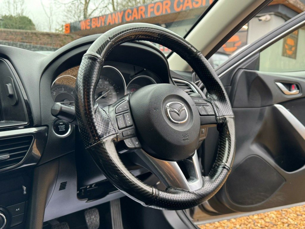 This 2014 Mazda6 SKYACTIV-D SE-L Nav presents an exceptional ownership proposition with its remarkably low mileage of just 81,000 miles for its age. This well maintained example boasts a clear vehicle history check and will be supplied with a full 12 months MOT for your peace of mind. Under the bonnet lies an efficient 2.2 litre diesel engine, compliant with Euro 6 emissions standards, making it a sensible choice. The SE-L Nav trim level ensures a comfortable and connected driving experience, featuring an integrated Bluetooth system for both phone calls and audio streaming, dual zone climate control for personalised comfort, and dusk sensing automatic headlights for enhanced visibility. Front parking sensors are also included to aid manoeuvrability.Beyond its impressive provenance and features, this Mazda6 stands out with several key advantages. Its fuel economy is a significant highlight, achieving an outstanding 72 miles per gallon, which will help keep running costs down. Furthermore, it falls into a low insurance group, offering further savings. The generous boot space makes it a practical choice for families or those who require ample storage. Coupled with its low CO2 emissions, this Mazda6 offers a compelling blend of efficiency, practicality, and cost effectiveness, setting it apart from many other vehicles in its class.. 12V Power Socket - Front, 17in Alloy Wheels, ABS - Anti Lock Braking System, AUX Socket, Adjustable Speed Limiter, Air Conditioning - Dual Zone Climate Control, Airbags - Curtain Front, Airbags - Curtain Rear, Airbags - Driver, Airbags - Front Passenger, Airbags - Front Passenger Deactivation System, Armrest - Front Centre with Slide Function, Armrest - Rear, Armrest - Rear Centre with Cupholders x2, Auto Dimming Rear View Mirror, Box - Between Driver and Passenger Seats, Combined Bluetooth Phone and Audio Streaming System, Cruise Control, DSC - Dynamic Stability Control, Daytime Running Lights, Deadlocking, Decoration Panel - Dark Gloss, Door Handles - Body Coloured, Door Mirrors - Electrically Adjustable-Heated-Folding, Door Mirrors - Integrated Turning Signals, Door Pockets - Front, Door Pockets - Rear, Dusk Sensing Automatic Headlights, Electric Windows - Front and Rear with Timer Function, Electronic Power Assisted Steering, Emergency Stop Signalling System - ESS, Engine Start-Stop Button, Exhaust Tailpipes - Twin, Front Centre Console with Storage Box, Front Fog Lights, Front Side Airbags, Gear Knob - Leather, Glovebox Illumination, Grab Handles - Front Passenger and Two Rear with Coat Hooks, Handbrake - Leather Wrapped, Head Restraints - Front Height Adjustment, Head Restraints - Rear, Headlights - Halogen, Headlights - Manual Levelling, Hill Hold Assist, ISOFIX Child Seat Anchorage for Outer Rear Seats, Immobiliser, Integrated Bluetooth System, Interior Light Dome with Integral Spot Light, Luggage Compartment - Light, Multimedia Commander, Multimedia System, Parking Sensors - Front, Pollen Filter, Privacy Glass - Rear and Rear Side Windows, Rain-Sensing Front Wipers, Rear Air Vents, Rear Parking Sensors, Remote Central Locking, SCR - Secondary Collision Reduction, SRS - Supplementary Restraint System, Satellite Navigation - Powered by TomTom Technology, Seatback Pocket - Driver and Front Passenger, Seatbelt Reminder for Front and Rear, Seats - 60-40 Split Folding Rear, Seats - Drivers Lumbar Adjustment, Seats - Drivers Manual Height Adjustment, Single CD Player - MP3 Compatibility, Smart City Brake Support, Speakers x6, Steering Wheel - Leather, Steering Wheel - Mounted Remote Audio Controls, Steering Wheel - Tilt and Height Adjustment, Sunvisors - Drivers and Passengers with Covered Vanity Mirror-Ticket Holder-Illumination, TCS - Traction Control System, Thatcham Category 1 Alarm and Immobiliser, Touch Screen - 5.8in Colour, Trip Computer, Tyre Pressure Monitoring System, Tyre Repair Kit, USB Connection, Voice Control For Navigation, i-ELOOP Status, i-Stop Status, iPod Connectivity.