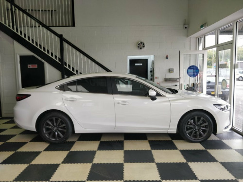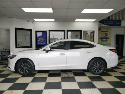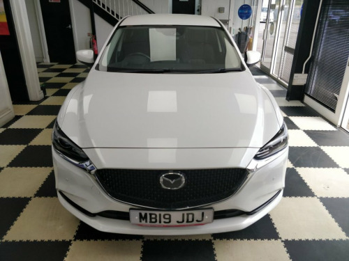 This 2019 Mazda6 SKYACTIV-D SE-L Nav+ offers excellent value and is a very well equipped model featuring a 2.2 litre diesel engine, meeting Euro 6 emissions standards.  Inside, you'll find dual zone climate control for personalised comfort, and a multimedia system with Bluetooth connectivity for seamless entertainment and calls.  The SE-L Nav+ trim also benefits from LED headlights with automatic levelling, front and rear parking sensors to aid manoeuvring, and advanced safety features including blind spot monitoring with rear cross traffic alert.  This Mazda6 stands out with its impressive 55 mpg fuel economy, indicating it is more economical than many similar vehicles. Furthermore, its low CO2 emissions and low insurance group highlight its cost effectiveness for everyday driving. These factors combine to make this Mazda6 a sensible and appealing choice for those seeking a reliable and feature rich car. 17in Alloy Wheels - Gunmetal, ABS - Anti Lock Braking System, Active Bonnet, Advanced Smart City Brake Support, Air Conditioning - Dual Zone Climate Con, Auto Dimming Rear View Mirror, Blind Spot Monitoring with Rear Cross Tr, Bumper - Front Body Coloured with Black , Bumper - Rear Body Coloured with Black L, Colour Active Driving Display - Colour H, Colour TFT Display with Traffic Sign Rec, Cruise Control with Adjustable Speed Lim, Daytime Running Lights, Door Mirrors - Electrically Adjustable -, Door Pockets - Driver and Front Passenge, DSC - Dynamic Stability Control, Dual Chrome Exhaust Tailpipe, Dual Front Airbags, Dusk Sensing Automatic Headlights, EBD - Electronic Brakeforce Distribut