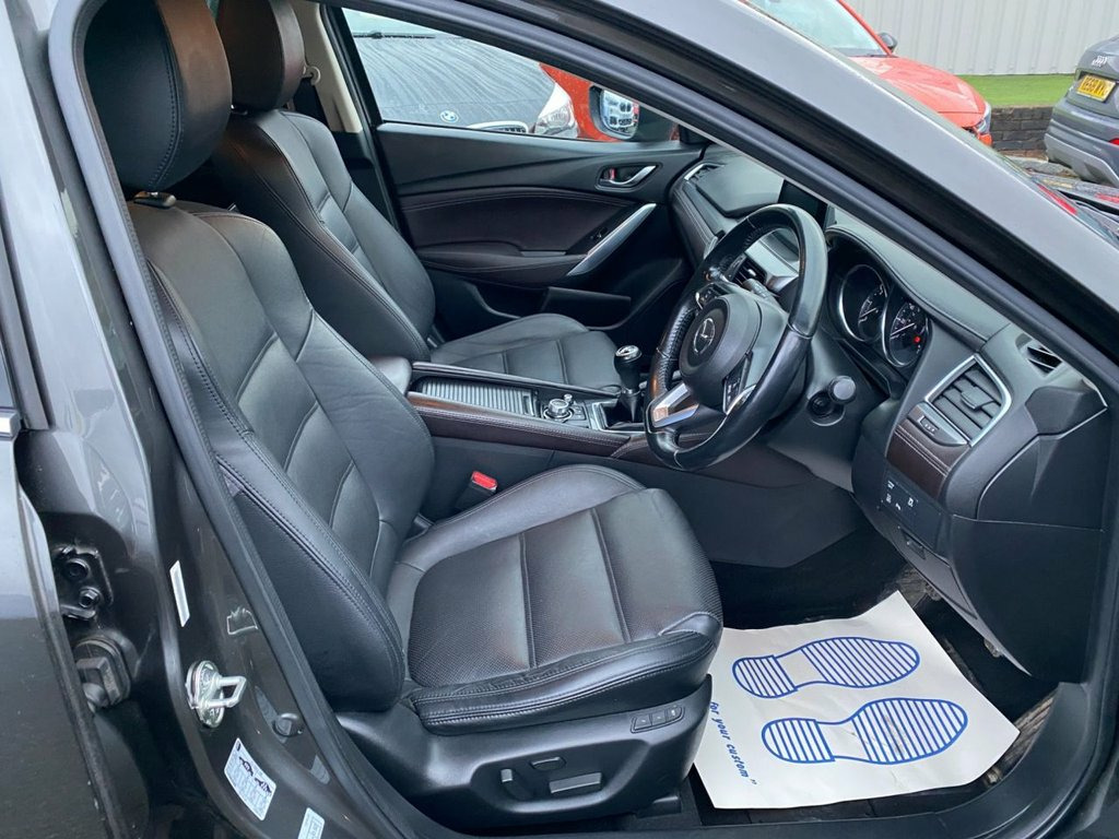 This 2017 Mazda6 SKYACTIV-D Sport Nav presents an exceptional ownership proposition with its remarkably low mileage of just 72,000 miles for its age. This particular Mazda6, a 2.2 litre diesel model, adheres to the Euro 6 emission class. Inside, you'll find a wealth of technology designed for comfort and convenience, including a Meter Set Display with an Active Driving Display featuring a Head Up Display, Smart Keyless Entry, a Heated Steering Wheel, and a Reversing Camera for easier parking. The integrated Bluetooth system ensures seamless connectivity on the go. This Mazda6 stands out with its impressive fuel economy, achieving an excellent 64 miles per gallon, which is a significant advantage over many other vehicles. Coupled with its low CO2 emissions and a low insurance group, these factors collectively demonstrate how this Mazda6 offers a more economical and cost effective driving experience compared to similar models. 19in Alloy Wheels - Bright Finish, Adjustable Speed Limiter, Air Conditioning - Dual Zone Climate Con, Anti-lock Braking System with Electronic, Armrest - Front Centre with Slide Functi, Auto Dimming Rear View Mirror, Cruise Control with Manual Speed Adjustm, Dashboard Panel - Deep Red Vinyl Leather, Dome Interior Courtesy Light with Integr, Door Handles - Body Coloured, Door Mirrors - Electrically Adjustable -, Dual Exhaust System, Dual Front Airbags, Dynamic Stability Control - DSC - with T, Electric Windows - Front and Rear with O, Electronic Parking Brake with Auto-Disen, Electronic Power Assisted Steering, Emergency Stop Signalling System - ESS, Emergency Tyre Repair Kit, Engine Start-S
