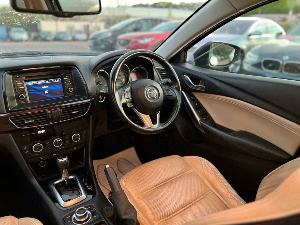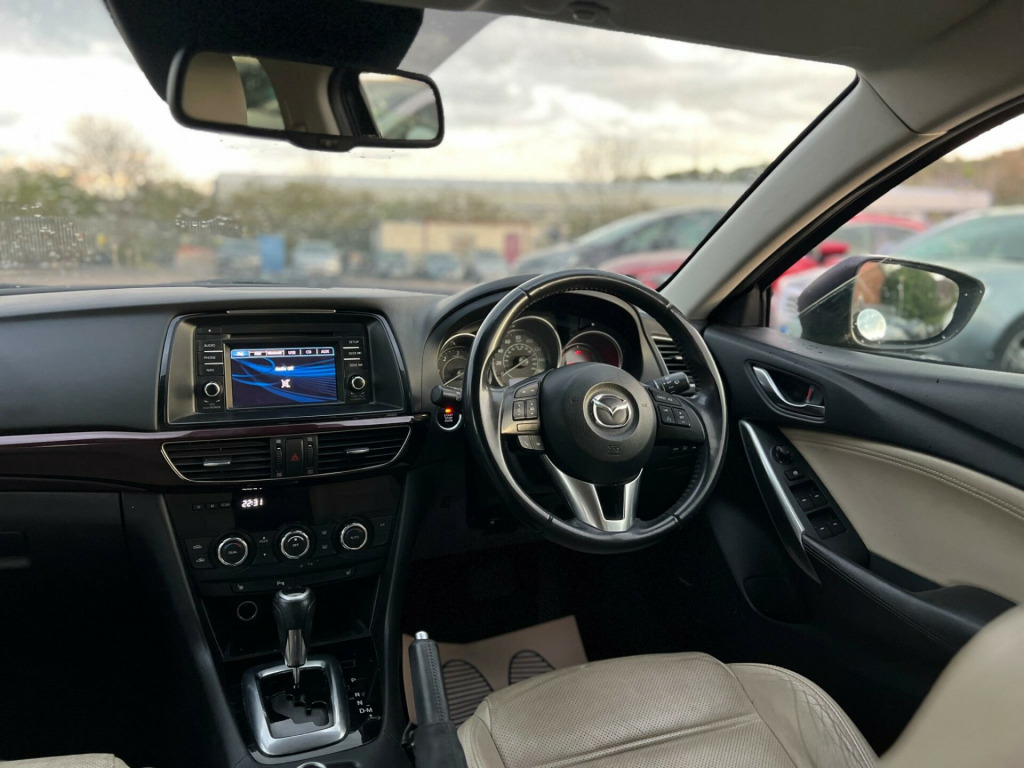HPI CLEAR, ULEZ COMPLIANT here we have got this LOW MILAGE hot seller Mazda Mazda6 2.2 SKYACTIV-D Sport Nav Tourer 5dr Diesel Auto Euro 6 (s/s) (175 ps) has just arrived in our Stock! Kitted out with tonnes of features, including 2 keys, Air Con and much more. The car is a great example of BEAUTY, IDEALLY FULL SERVICE HISTORy, ONE FORMER KEEPER only. Mechanically and Electrically all Good. Shifts Nicely in all the Gears with Smooth Drive, A tidy family car for the perfect blend of performance & fuel efficiency Whether you're navigating city streets or cruising on the motorway, with no rips and tears to the Interior, cheap to insure and Tax, Car has got FULL mostly DEALER service history and comes with long MOT. Body work is good as per the Age car offers, the spacious and comfortable cabin of the car, you'll find a host of features designed to enhance your driving experience like Cruise Control with Speed Limiter,SAT NAV,Cruise Control,Multimedia Commander,19in Alloy Wheels,Roof Rails,Parking Sensors ,Rear View Camera.This car also comes with free 12 months AA-Breakdown cover, AA-approved dealer, all major Debit/Credit Cards accepted, finance options available, FCA registered and work with all major Finance companies. We have a wide selection of cars, all our stock is carefully picked, so you can buy from us with confidence. Each vehicle undergoes a thorough inspection by a highly qualified specialist, all our vehicles are HPI checked. Looking to part exchange we guaranty the best prices paid for your trade in vehicle, you can reserve any of our cars with a refundable £99 deposit. Nationwide Delivery Available, 5 days drive away insurance and extended warranty packages are also available at extra reasonable price. Please don't hesitate to call us if you need any more info about this car. Visit www.mabauto.co.uk for more stock options, Read our reviews on auto trader and judge for yourself what our customers think about us, WE ARE AUTO TRADER ''HIGHLY RATED CUSTOMER SERVICE AWARD WINNER 2020 &2021''. Please contact us to confirm the precise Vehicle specifications. fety pack, leather - light stone, 12v power socket - cargo area, 12v power socket - front, 19in alloy wheels, abs - anti lock braking system, aux socket, adjustable speed limiter, air conditioning - dual zone climate control, airbags - curtain front, airbags - curtain rear, airbags - driver, airbags - front passenger, airbags - front passenger deactivation system, armrest - front centre with slide function, armrest - rear, armrest - rear centre with cupholders x2, auto dimming rear view mirror, box - between driver and passenger seats, combined bluetooth phone and audio streaming system, cruise control, dsc - dynamic stability control, deadlocking, decoration panel - red gloss, door handles - body coloured, door mirrors - electrically adjustable-heated-folding, door mirrors - integrated turning signals, door pockets - front, door pockets - rear, dusk sensing automatic headlights, electric windows - front and rear with timer function, electronic power assisted steering, emergency stop signalling system - ess, engine start-stop button, exhaust tailpipes - twin, front centre console with storage box, front fog lights, front side airbags, gear knob - leather, glovebox illumination, grab handles - front passenger and two rear with coat hooks, handbrake - leather wrapped, head restraints - front height adjustment, head restraints - rear, headlights - adaptive front lighting system, headlights - automatic levelling, headlights - bi-xenon, headlights - cleaning, hill hold assist, isofix child seat anchorage for outer rear seats, immobiliser, integrated bluetooth system, interior light dome with integral spot light, karakuri tonneau cover, led daytime running lights, luggage compartment - cargo net, luggage compartment - light, multimedia commander, multimedia system, parking sensors - front, pollen filter, premium bose centrepoint surround system - speakers x11, privacy glass - rear and rear side windows, rain-sensing front wipers, rear air vents, rear parking sensors, reversing camera, roof rails, scr - secondary collision reduction, srs - supplementary restraint system, satellite navigation - powered by tomtom technology, seatback pocket - driver and front passenger, seatbelt reminder for front and rear, seats - 60-40 split folding rear, seats - drivers electric 6-way adjustment, seats - drivers electric adjustment with memory, seats - drivers electric height adjustment, seats - drivers power lumbar adjustment, seats - electric 4-way front passenger, seats - front heated, shark fin antenna, single cd player - mp3 compatibility, smart city brake support, smart keyless entry, speakers x11, spoiler - rear roof body coloured, steering wheel - leather, steering wheel - mounted remote audio controls, steering wheel - paddle shift, steering wheel - tilt and height adjustment, sunvisors - drivers and passengers with covered vanity mirror-ticket holder-illumination, tcs - traction control system, thatcham category 1 alarm and immobiliser, touch screen - 5.8in colour, trip computer, tyre pressure monitoring system, tyre repair kit, usb connection, voice control for navigation, i-eloop status, i-stop status, ipod connectivity