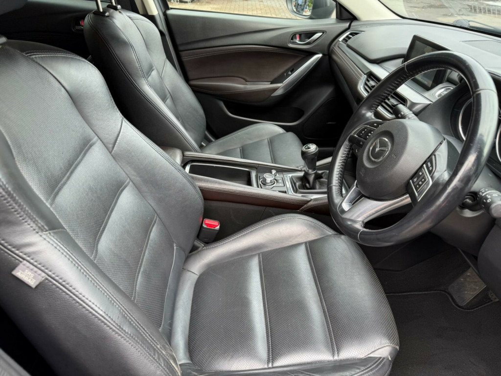 VISIT OUR WEBSITE AT bnlcars.co.uk TO APPLY FOR FINANCE FROM THE COMFORT OF YOUR HOME, COMPLETE THE APLICATION AND YOU GET A DECISION IN MINUTES.We are delighted to present this: Mazda Mazda6 2.2 SKYACTIV-D Sport Nav Tourer Euro 6 (s/s) 5drHEATED LEATHER, HEAD UP DISPLAY, PARKING SENSORS, NAVIGATION, KEYLESS ENTRY, REAR CAMERA AND MUCH MORE, SEE BELOW FOR FULL SPEC.COMES WITH FULL SERVICE HISTORY, JUST BEEN SERVICED, BOOK PACK, READY TO DRIVE AWAY, Will be supplied with a full year mot for the new owner and 18 months extended WARRANTYDrive away insurance available. Finance available with low APR.Extended warranties available.We can arrange nationwide delivery at cost and on request, for full details or to arrange a test drive please call 07838529660. We offer full dealer facilities. All our vehicles are HPI checked and mileage verified. We are open 7 days a week. in alloy wheels - bright finish, adjustable speed limiter, air conditioning - dual zone climate control, anti-lock braking system with electronic brake-force distribution and emergency brake assist, armrest - front centre with slide function, auto dimming rear view mirror, cruise control with manual speed adjustment, dashboard panel - deep red vinyl leather, dome interior courtesy light with integrated spotlight, door handles - body coloured, door mirrors - electrically adjustable - heated - power folding with integrated indicator lights, dual exhaust system, dual front airbags, dynamic stability control - dsc - with traction control system - tcs, electric windows - front and rear with one-touch auto down - up and timer function, electronic parking brake with auto-disengage function, electronic power assisted steering, emergency stop signalling system - ess, emergency tyre repair kit, engine start-stop button, front centre console with storage box, front fog lights - led, front passenger airbag cut-off switch, front side airbags, front and rear curtain airbags, front and rear parking distance sensors, g-vectoring, gear shift - leather-wrapped, glovebox illumination, grab handles - front passenger and two rear with coat hooks, head restraints - rear, headlights - adaptive front lighting system, headlights - coming-leaving home, headlights - dusk-sensing lights, headlights - led with auto headlight levelling, heated front seats with 3-stage settings, heated steering wheel, hill hold assist, isofix child seat anchorage for outer rear seats, immobiliser, integrated bluetooth system, karakuri tonneau cover, led daytime running lights, luggage compartment - cargo net, luggage compartment - light, luggage compartment - power outlet, meter set display - active driving display, multimedia commander, multimedia system, pollen filter, privacy glass - rear, rain-sensing front wipers, rear air vents, rear roof spoiler, rear seats - 60-40 fold down seats, rear seats - centre armrest with two cupholders, reversing camera, roof rails, skyactiv-body engineered triple h body structure to help protect occupants from impact forces, satellite navigation system, scuff plates - blacks, seatback pocket - driver and front passenger, seatbelt reminder audible warning, seatbelts - front 3-point - elr - x2 with pre-tensioners and load-limiters - height-adjustment, seatbelts - rear 3-point - elr - x3 with pre-tensioners, seats - drivers power lumbar adjustment, seats - drivers power slide-recline and height adjustment with memory function, seats - passengers power slide-recline and height adjustment, shark fin antenna, smart city brake support, smart keyless entry, steering wheel - leather wrapped, steering wheel - tilt and height adjustment, storage spaces - door pockets, storage spaces - two cup holders in centre console, sunvisors - drivers and passengers with covered vanity mirror-ticket holder-illumination, thatcham catergory 1 alarm, traffic sign recognition, transient control, trip computer, tyre pressure monitoring system, wipers - front adjustable speed with intermittent, wipers - rear adjustable speed with intermittent, i-eloop status and i-stop status, safety pack, leather - black