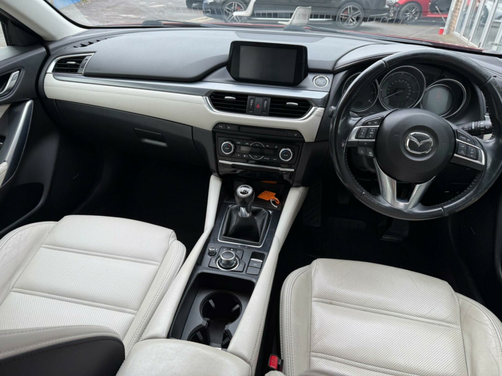 VISIT OUR WEBSITE AT bnlcars.co.uk TO APPLY FOR FINANCE FROM THE COMFORT OF YOUR HOME, COMPLETE THE APLICATION AND YOU GET A DECISION IN MINUTES.We are delighted to present this: Mazda Mazda6 2.2 SKYACTIV-D Sport Nav Tourer Euro 6 (s/s) 5drHEATED LEATHER, HEAD UP DISPLAY, PARKING SENSORS, NAVIGATION, KEYLESS ENTRY, REAR CAMERA AND MUCH MORE, SEE BELOW FOR FULL SPEC.COMES WITH FULL SERVICE HISTORY, JUST BEEN SERVICED, BOOK PACK, READY TO DRIVE AWAY, Will be supplied with a full year mot for the new owner and 18 months extended WARRANTYDrive away insurance available. Finance available with low APR.Extended warranties available.We can arrange nationwide delivery at cost and on request, for full details or to arrange a test drive please call 07838529660. We offer full dealer facilities. All our vehicles are HPI checked and mileage verified. We are open 7 days a week. v power socket - cargo area, 12v power socket - front, 19in alloy wheels, abs - anti lock braking system, aux socket, adjustable speed limiter, air conditioning - dual zone climate control, airbags - curtain front, airbags - curtain rear, airbags - driver, airbags - front passenger, airbags - front passenger deactivation system, armrest - front centre with slide function, armrest - rear, armrest - rear centre with cupholders x2, auto dimming rear view mirror, box - between driver and passenger seats, combined bluetooth phone and audio streaming system, cruise control, dsc - dynamic stability control, deadlocking, decoration panel - red gloss, door handles - body coloured, door mirrors - electrically adjustable-heated-folding, door mirrors - integrated turning signals, door pockets - front, door pockets - rear, dusk sensing automatic headlights, electric windows - front and rear with timer function, electronic power assisted steering, emergency stop signalling system - ess, engine start-stop button, exhaust tailpipes - twin, front centre console with storage box, front fog lights, front side airbags, gear knob - leather, glovebox illumination, grab handles - front passenger and two rear with coat hooks, handbrake - leather wrapped, head restraints - front height adjustment, head restraints - rear, headlights - adaptive front lighting system, headlights - automatic levelling, headlights - bi-xenon, headlights - cleaning, hill hold assist, isofix child seat anchorage for outer rear seats, immobiliser, integrated bluetooth system, interior light dome with integral spot light, karakuri tonneau cover, led daytime running lights, luggage compartment - cargo net, luggage compartment - light, multimedia commander, multimedia system, parking sensors - front, pollen filter, premium bose centrepoint surround system - speakers x11, privacy glass - rear and rear side windows, rain-sensing front wipers, rear air vents, rear parking sensors, reversing camera, roof rails, scr - secondary collision reduction, srs - supplementary restraint system, satellite navigation - powered by tomtom technology, seatback pocket - driver and front passenger, seatbelt reminder for front and rear, seats - 60-40 split folding rear, seats - drivers electric 6-way adjustment, seats - drivers electric adjustment with memory, seats - drivers electric height adjustment, seats - drivers power lumbar adjustment, seats - electric 4-way front passenger, seats - front heated, shark fin antenna, single cd player - mp3 compatibility, smart city brake support, smart keyless entry, speakers x11, spoiler - rear roof body coloured, steering wheel - leather, steering wheel - mounted remote audio controls, steering wheel - paddle shift, steering wheel - tilt and height adjustment, sunvisors - drivers and passengers with covered vanity mirror-ticket holder-illumination, tcs - traction control system, thatcham category 1 alarm and immobiliser, touch screen - 5.8in colour, trip computer, tyre pressure monitoring system, tyre repair kit, usb connection, voice control for navigation, i-eloop status, i-stop status, ipod connectivity, 19in alloy wheels - bright finish, dab radio, electronic parking brake, front fog lights - led, gear shift indicator, grab handles - front passenger, grab handles - two rear with coat hooks, head up display, headlights - coming-leaving home, headlights - led, premium bose centrepoint surround sound system, radio-cd, rear lights - led, satellite navigation - european mapping with 3-years map updates, scuff plates, seats - driver electric 8-way power adjustment, seats - front passenger electric 6-way power adjustment, sunvisors - driver and passenger with covered mirror-illumination, sunvisors - driver ticket holder, thatcham catergory 1 alarm, touch screen - 7in colour tft, usb connection x2, safety pack, leather - light stone
