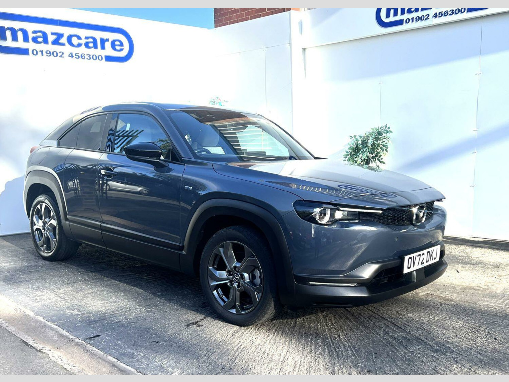 Immaculate Mazda MX30, just 7928 miles, full service history, MOT September 2026, 2 keys and supplied with both charging cables. Features included on this Mazda MX30 include heated front seats, position memory for drivers front seats, bluetooth, cruise control, adaptive lighting, reverse camera, keyless entry and heads up display. Part exchange welcome and finance available, quotations on request. For further assistance call 01902 456300 or visit our website www.mazcare.co.uk