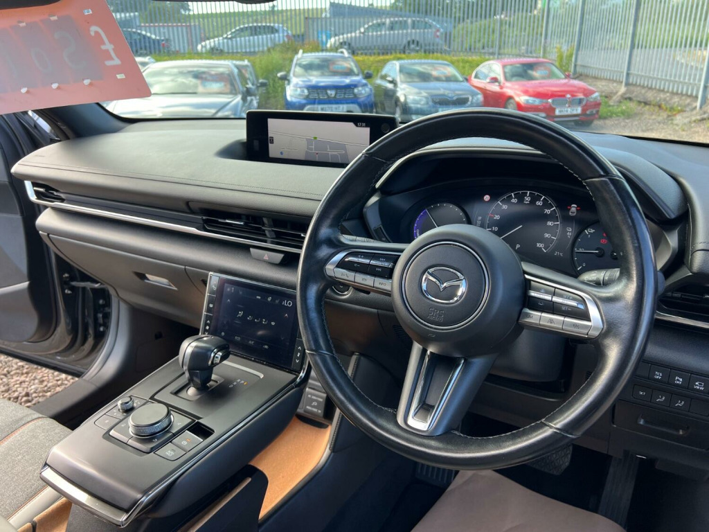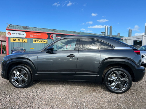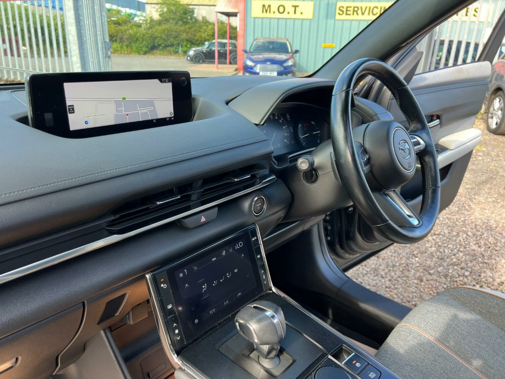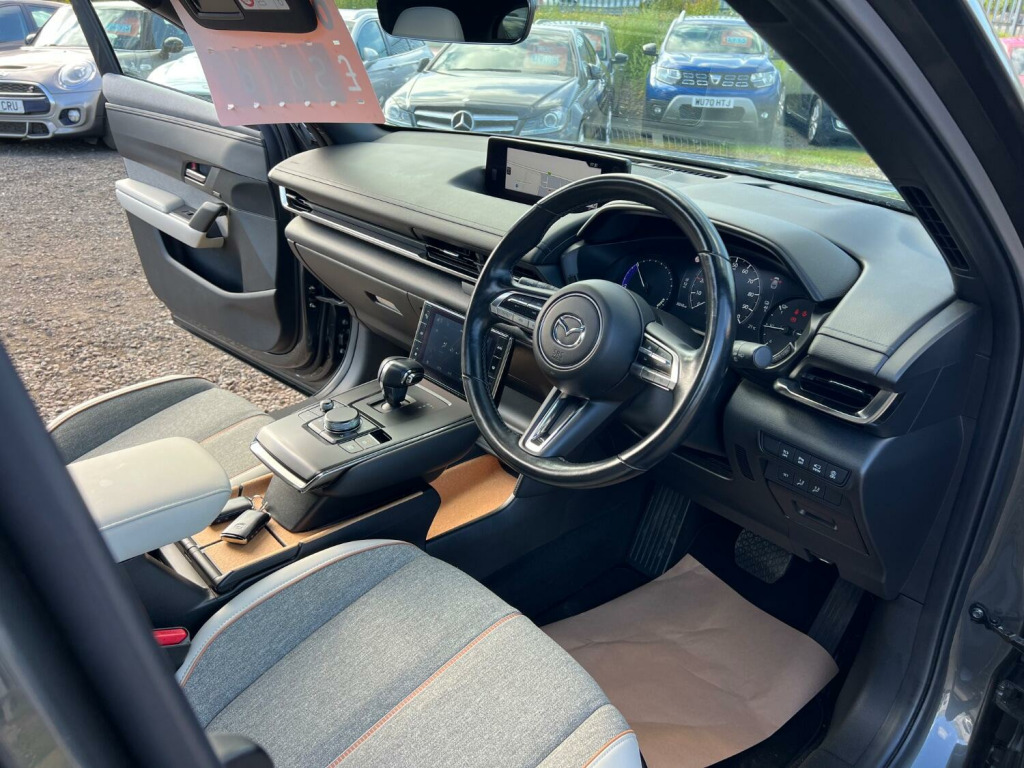 ????2022 72 MAZDA MX-30 107kW GT Sport Tech 35.5kWh AUTOMATIC 5DR ONLY 8,000 MILES F/S/H/BEAUTIFUL EXAMPLE IN MATALIC GREY WITH FULL SERVICE HISTORY AND 2 X KEYS/, 3rd brake light, Anti-lock Brake System (ABS), Electronic Stability Program (ESP), Front cross traffic camera, One touch indicator, Power assisted brakes, Rear cross traffic alert, Rear cross traffic camera, Tyre pressure monitor, Hands-free Bluetooth system, Telephone, Voice control for telephone, Autopilot function, Check control system, Configurable dashboard display, Cruise control, Keyless go, Navigation system, Service interval indicator, Steering wheel audio controls, Steering wheel with cruise control operation, Tool kit, Travel data recorder, Trip computer, Power Assisted Steering, Rev counter, Traction control, Digital radio, Radio/CD, USB input, Body coloured bumpers, Electric sunroof, Rear boot, Daytime running lights, Door mirror indicators, LED daytime running lights, Xenon headlights, Air conditioning, Front centre armrest, Front head restraints, Front interior 12V power outlet, Rear headrests, Heated steering wheel, Steering wheel manually adjustable, Steering wheel rake adjustment, Steering wheel reach adjustment, Leather gear selector trim, Leather handbrake trim, Leather interior door trim, Leather steering wheel, Electric door mirrors, Metallic Paint, Electric parking brake, Rear park assist camera, Front parking sensor, Rear parking sensor, Surround view, 3x3 point rear seat belts, Active front head restraints, Drivers airbag, Isofix child seat anchor points, Manual child proof locks, Passenger airbag, Electrically adjustable drivers seat, Heated front seat, Height adjustable drivers seat, Height adjustable passenger seat, Lumbar support, Alarm, Central locking, Immobiliser, Remote central locking, Leather seat upholstery, Alloy wheels, Tyre repair kit, Front electric windows, Rear electric windows/only 8,000 miles f/s/h/comes with 12 months mot and full engine service/6 months warranty/finance available,delivery can be arranged/buy with confidence,read our 5 star reviews,ms car sales Cupar ky154rd/£13,850