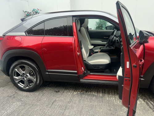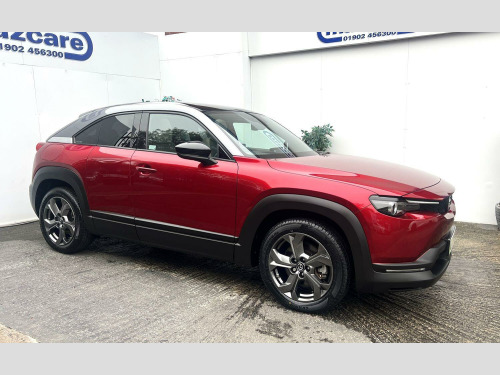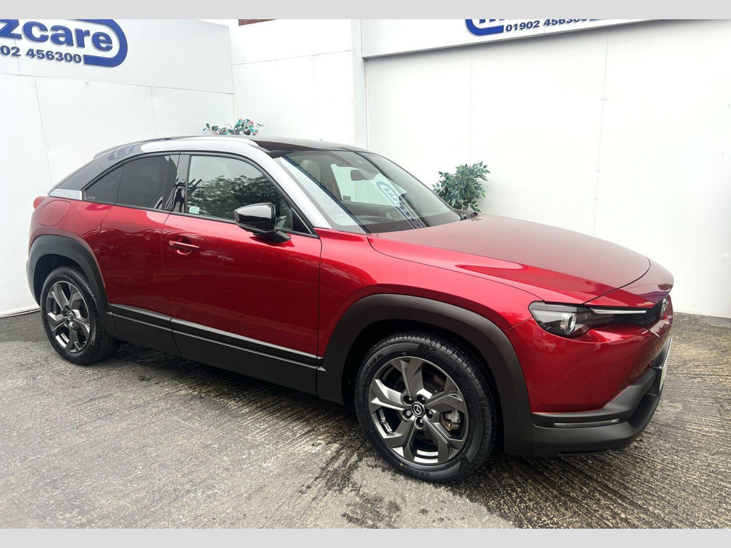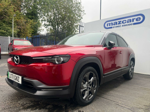 Presenting for sale this stunning Mazda MX30 GT Sport Tech finished in soul red crystal and benefiting from full service history. The car is supplied with 2 keys and is HPI clear. Part exchange welcome and finance options available, call 01902 456300 for further assistance. The GT Sport Tech trim level comes equipped with a host of advanced features which includes heads up display, Apple car play and android auto, powered front seat, heated front seats and steering wheel, adaptive cruise control, navigation, DAB, Bose sound system, surround camera with front and rear parking sensors, blind spot monitoring, sunroof.