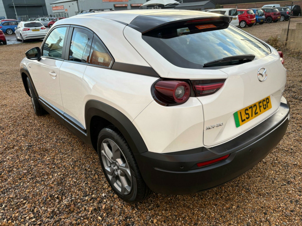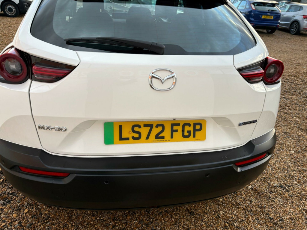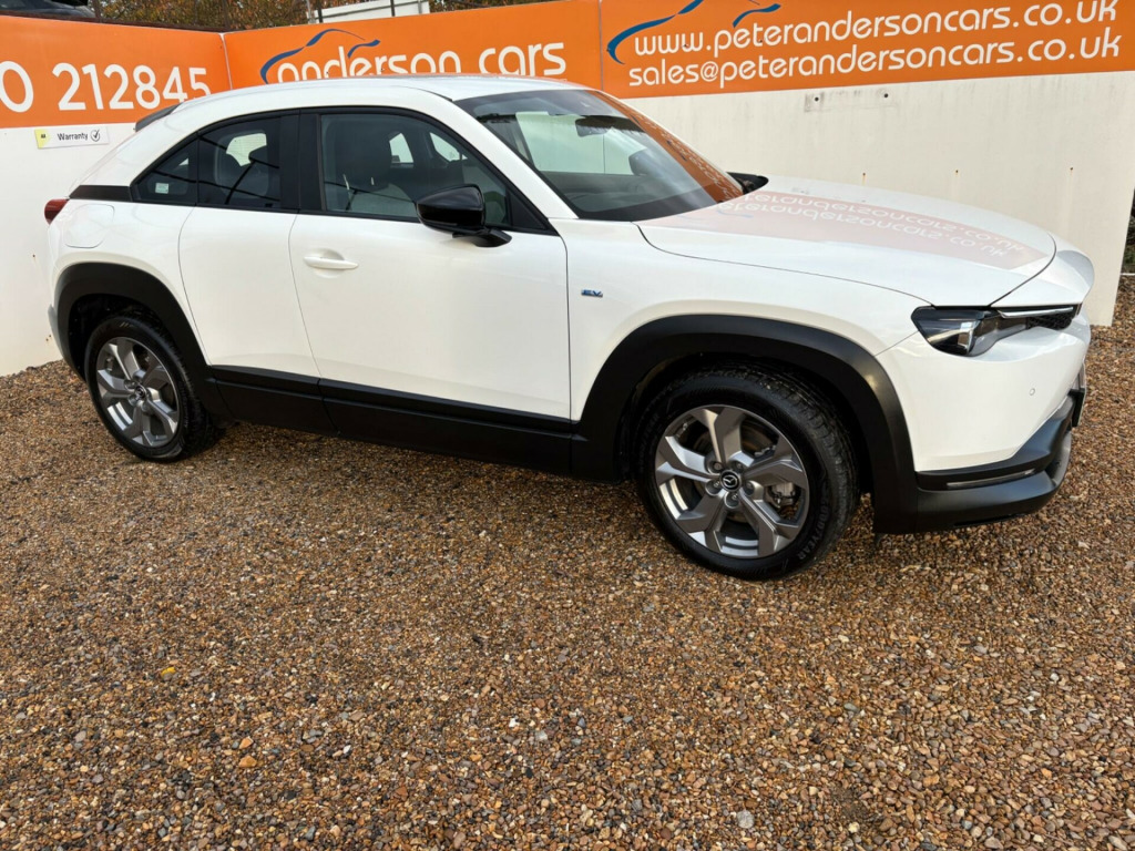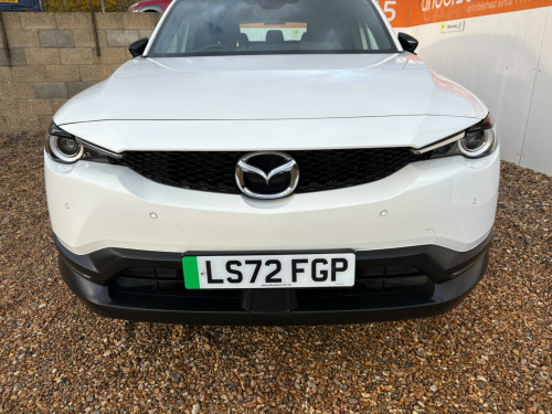 This 2022 Mazda MX-30 Prime Line is a superb example, boasting a full dealership service history and having been owned by just one careful owner. As an all electric vehicle, it features a 36 kWh battery offering a maximum range of 124 miles when new. Charging is convenient, with a full charge at home using a 7kW charger taking approximately 4 hours, and rapid charging to 80% from empty achievable in just 33 minutes at a public station. This particular model comes with a 3 month warranty for your peace of mind.The Prime Line trim level is well equipped with notable features designed to enhance your driving experience. Integrated Bluetooth connectivity keeps you connected on the go, while dusk sensing lights automatically illuminate the road ahead. Parking is made easier with front and rear parking sensors providing audible and visual warnings. For added safety and convenience, this MX-30 includes adaptive cruise control, maintaining a set distance from the vehicle in front, and an emergency lane keeping system with blind spot assist, offering an extra layer of security. These features collectively demonstrate the thoughtful design and advanced technology present in this Mazda MX-30.. 12V Electrical Power Outlet, 18in Alloy Wheels - Silver Metallic, ABS - Anti Lock Braking System, Adaptive Cruise Control, Air Conditioning - Climate Control, Airbags - Front Driver Knee, Airbags - Front Dual Stage Driver and Single Stage Front Passenger, Airbags - Front Passenger Cut-off Switch, Airbags - Front Side, Airbags - Front and Rear Curtain Airbags, Apple CarPlay and Android Auto, B-Pillar and C-Pillar Garnish - Material Black, Blind Spot Monitoring, Coming Home-Leaving Home Lights, DC Socket for Rapid Charging up to 50KW, DSC - Dynamic Stability Control, Door Mirrors - Black - Electrically-Adjustable - Heated - Auto Power Folding, Door Panel Trim in Cloth with Soft Touch Armrest, Driver Attention Alert - DAA, Drivers Seat - Manual Slide - Recline - Height and Seat Tilt, Dusk-Sensing Lights, Electric Windows - Front, Electronic Parking Brake with Auto Hold Function and Auto-Disengage Function, Electronic Power Assisted Steering, Emergency Lane Keeping with Blind Spot Assist, Emergency Lane Keeping with Road Keep Assist, Emergency Stop Signalling System - ESS, Emergency Tyre Repair Kit, Front Passenger Seat - Manual Slide - Recline - Height Adjustment, Gear Shift - Leather-Wrapped, Glovebox with Interior Illumination, Grab Handles - Driver - Front Passenger and Two Rear with Coat Hooks, Head-Up Display, Headlights - LED with Auto Headlight Levelling, High Beam Control, Hill Hold Assist, ISOFIX Child Seat Anchorage for Outer Rear Seats, Instrument Panel 7in TFT Colour Driver Display, Integrated Bluetooth, Intelligent Speed Assist, Interior Lighting, LED Daytime Running Lights, LED Rear Combination Lights, Lane Keep Assist with Lane Departure Warning System, Luggage Compartment - LED Illumination, Mazda Connect with 8.8in TFT Colour Centre Display, Mazda Connected Services, Mazda Heritage Cork Console Tray and Cupholder Lids, Mazda Navigation System, Multimedia Commander including Separate Volume Dial, Parking Sensors - Front and Rear with Audible and Visual Warning, Power Start-Stop Button, Pre-Crash Safety - Smart Brake Support - SBS, Radiator Grille - Black, Rain-Sensing Front Wipers, Rear Roof Spoiler - Gloss Black, Rear Seats - 60-40 Split Fold Down, Rear Seats - Folding Centre Armrest Equipped with Two Cup Holders, Rear Wiper, Remote Central Locking with Deadlocking and Automatic Door Lock when Driving, Reversing Camera, Roof Mounted Sunglasses Holder, Seatback Pocket - Located on Rear of Front Passenger Seat, Seatbelt Reminder Audible Warning, Steering Wheel - Leather Wrapped, Steering Wheel - Paddle Shift, Steering Wheel - Tilt and Telescopic Adjustment, Steering Wheel Mounted Audio and Bluetooth Controls, Storage Spaces - Door Pockets, Storage Spaces - Front Centre Storage with Two Cupholders, Sunvisors - Drivers and Front Passengers with Covered Vanity Mirror and Drivers Ticket Holder, TCS - Traction Control System, Thatcham Accredited Alarm and Immobiliser, Three Height Adjustable Rear Head Restraints, Traffic Sign Recognition, Trip Computer, Type 2 Mode 2 AC Charging Via 3-Point Plug, Type 2 for Mode 3 AC Charging Via Home or Public Charge Points, Tyre Pressure Monitoring System, USB Input, e G-Vectoring Control Plus - eGVC Plus, e-Call with GPS. Full dealership history