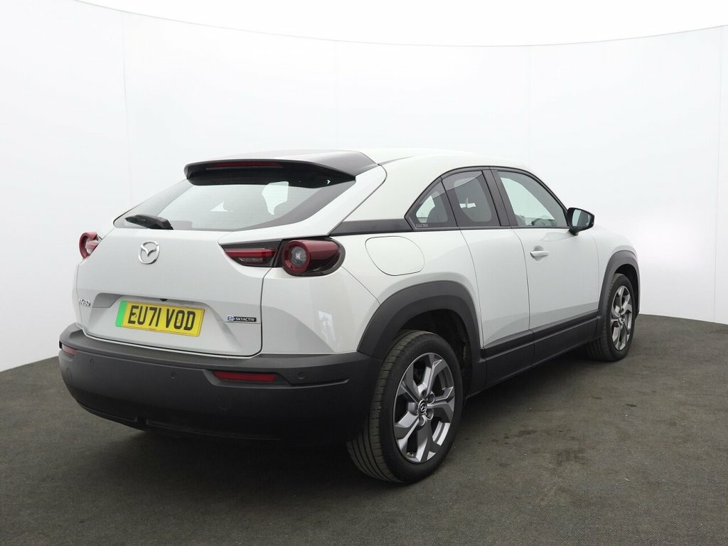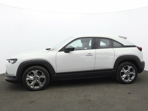 This 2021 Mazda MX-30 SE-L Lux is presented with a clear vehicle history check, offering peace of mind for its next owner. This all electric model boasts a 36 kWh battery with a maximum range of 124 miles when new. Charging is convenient, with a full charge at home taking approximately 5 hours using a 7kW charger, and rapid public charging can take the battery from empty to 80% in just 48 minutes. The SE-L Lux trim level comes equipped with a range of notable features designed to enhance your driving experience. These include dusk sensing automatic headlights, emergency lane keeping with blind spot assist, and Mazda Radar Cruise Control with intelligent speed assist for effortless journeys. Comfort is assured with climate control air conditioning and integrated Bluetooth connectivity for seamless phone integration. These features collectively contribute to a refined and convenient driving experience, setting this Mazda MX-30 apart. 7in Colour Touch Screen for Climate Cont, 8.8in TFT Colour Centre Display with Maz, AM-FM-DAB Radio - MP3 with 8 Speakers, Apple CarPlay and Android Auto, DC Socket for Rapid Charging up to 50KW, e-Call with GPS, Integrated Bluetooth, Mazda Navigation System, Mobile Phone App Interface, OEM Sound System, USB - iPod Connectivity, USB and 12v Outlet, 18in Alloy Wheels - Silver, Bumpers - Body Coloured, Door Mirrors - Electrically Adjustable -, Electric Windows - Front, Radiator Grille - Black, Air Conditioning - Climate Control, Engine Start-Stop Button, Front and Rear Centre Armrest, Front Head Restraints, Front Passenger Seat - Manual Height Adj, Head Restraints - Rear, Instrument Panel 7in