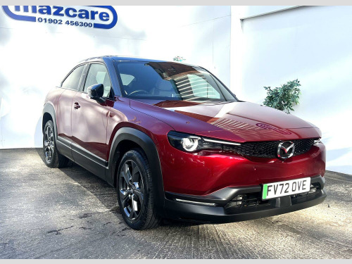 Mazda MX30 Sport Lux finished in Soul Red Crystal, just 26k miles, first registered November 2022, with full service history, AND SUPPLIED WITH 12MTHS WARRANTY! The MOT is until 3/10/2026. The car features bluetooth, heads up display with traffic recognition, navigation, cruise control, blind spot monitoring, front and rear parking sensors with the additional benefit of reverse camera. The car is supplied with state of health report for the battery, grade A, 2 keys and book pack, Finance quotations available, hire purchase and PCP, to discuss this further please call the team on 01902 456300. We would love to help you drive this Mazda MX30 home, call the team on 01902 456300, we will be happy to assist