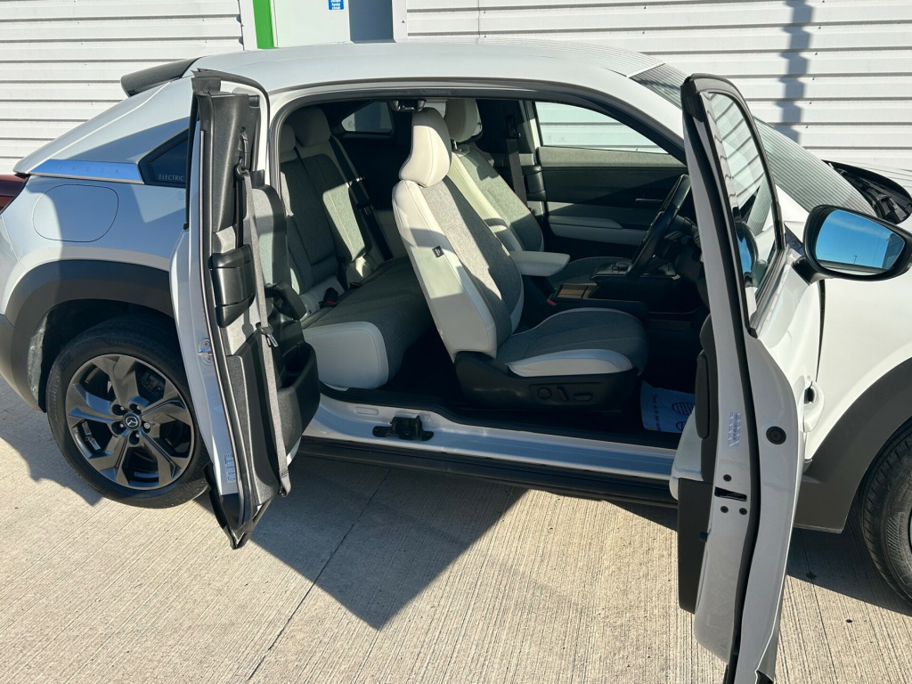 Very nice example with both keys, V5 and HistoryThis 2021 Mazda MX-30 35.5kWh Sport Lux SUV with 19900 miles on the clock is a stylish and environmentally friendly electric vehicle that's perfect for both city and suburban driving. With 5 seats and 5 doors, this SUV offers plenty of space for the whole family. Plus, it's ULEZ compliant, so you can drive in low emission zones without any issues. The sleek design and 18in Alloy Wheels give this car a modern look, while the Auto Dimming Drivers Door Mirror and Body Coloured Bumpers add extra convenience and style. The electrically adjustable, heated, power-folding door mirrors and electric windows make driving this car a breeze. With a powerful 145 ps engine, this Mazda MX-30 is both practical and fun to drive, making it the perfect choice for anyone looking for an electric SUV that stands out from the crowd. in alloy wheels - bright, auto dimming drivers door mirror, bumpers - body coloured, door mirrors - electrically adjustable - heated - power folding with integrated indicator lights - painted black, electric windows - front, privacy glass - rear, radiator grille - black, satin trim on d pillar, tyre repair kit, window trim - piano black, 3x 3-point rear seat belts, abs - anti lock braking system, airbags - driver, airbags - rear, drivers knee airbags, esp - electronic stability control, electronic parking brake with auto hold function and auto-disengage function, emergency lane keeping with blind spot assist, front - side and curtain airbags, front passenger airbag, front smart brake support with pedestrian detection, g-vectoring control plus - gvc plus, hill hold assist, isofix child seat anchorage for outer rear seats, internal combustion engine sound emulator, led indicator lights, lane keep assist system, rear wiper, remote central locking with deadlocking and automatic door lock when driving, reverse parking aid, smart brake support with turn across traffic, smart keyless entry, tcs - traction control system, thatcham accredited alarm and immobiliser, 7in colour touch screen for climate control settings, 8.8in tft colour centre display with mazda connect infotainment, am-fm-dab radio - mp3 with 8 speakers, apple carplay and android auto, dc socket for rapid charging up to 50kw, integrated bluetooth, mazda navigation system, mobile phone app interface, oem sound system, usb - ipod connectivity, usb and 12v outlet, e-call with gps, air conditioning - climate control, chrome glove box handle, chrome start button, engine start-stop button, frameless auto dimming rear-view mirror, front head restraints, front passenger seat - manual height adjustment, front and rear centre armrest, head restraints - rear, instrument panel 7in tft colour driver display, leather-wrapped steering wheel and shift lever with telescopic and tilt adjustment, luggage compartment - tonneau cover, rain-sensing front wipers, seats - 60-40 split folding rear, seats - driver electric 8-way power adjustment with memory, seats - drivers power lumbar adjustment, seats - front heated, steering wheel - paddle shift, steering wheel chrome centre bezel, steering wheel mounted audio and bluetooth controls, automated high-beam assist, dusk sensing automatic headlights, headlights - led, led 3rd brake light, led daytime running lights, led rear combination lights, blind spot monitoring with rear cross traffic alert, digital instrument cluster, driver attention alert - daa, lane departure warning system, mazda radar cruise control with intelligent speed assist, multimedia commander including separate volume dial, parking sensors - front and rear, power steering, reversing camera, service indicator, trip computer, type 2 mode 2 ac charging via 3-point plug, type 2 for mode 3 ac charging via home or public charge points, tyre pressure monitoring system, window projection colour active driving display with traffic sign recognition