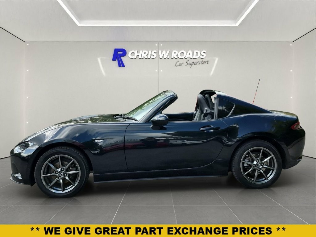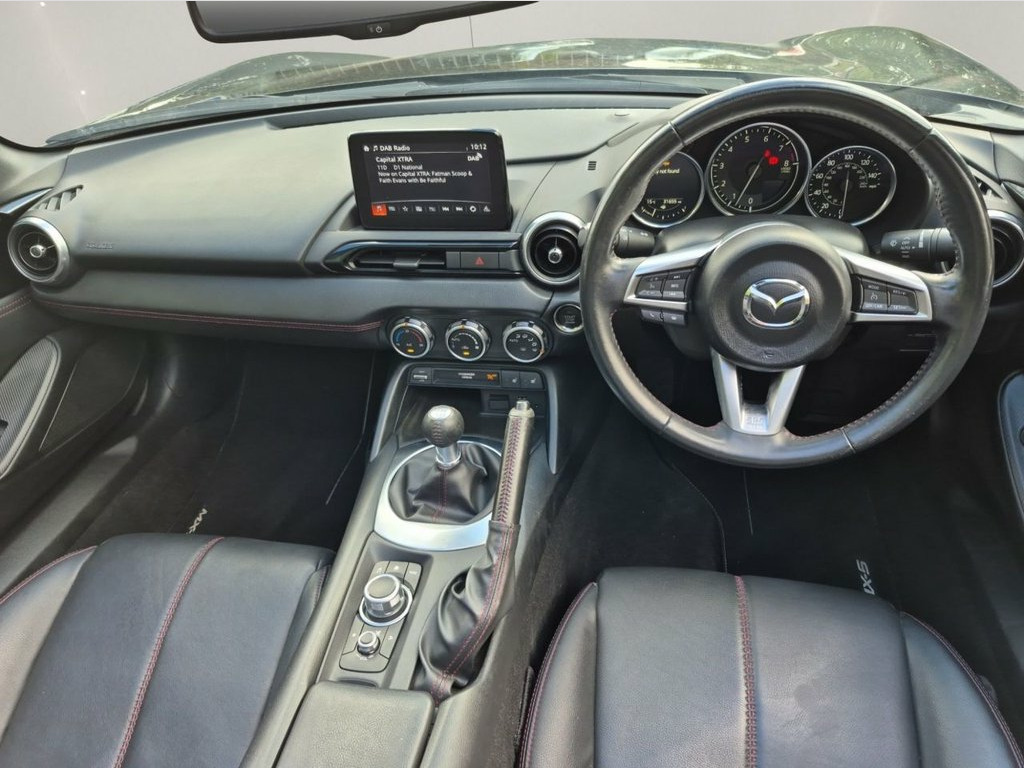 Turn every journey into an experience with this stunning 2019 Mazda MX-5 RF Sport Nav+, finished in the sleek and sophisticated Jet Black Mica. Renowned for its exhilarating drive, lightweight design, and timeless roadster styling, this RF (Retractable Fastback) edition combines open-top freedom with the everyday practicality of a coupe. This car isn't just about driving—it's about the experience. With perfectly balanced rear-wheel drive handling, precise steering, and a roof that opens at the touch of a button, it delivers smiles mile after mile. Finished in Jet Black Mica, it exudes elegance with a hint of menace, ensuring you stand out whether parked or in motion. Comes with 5 Services recorded as well as just being serviced by ourselves, MOT until October 2026 and it has 2 Keys. Features include Satellite Navigation, Black Leather with Heated Seats, Rear Parking Sensors, Bluetooth, Cruise Control, 16in Alloys and more. See below for the full list of features. Book today to view and test drive. Open 7 days a week. All part exchanges welcome. Please ask for details of our finance and extended warranty options, subject to status, T's and C's apply. Satellite Navigation System, Black Leather with Red Stitching, Heated Seats, 7in Colour Touch Screen Display, Integrated Bluetooth, Cruise Control with Manual Speed Adjustm, Climate Control Air Conditioning , Rear Parking Sensors, 16in Alloy Wheels , Auxiliary and Two USB Input, Multimedia System, Aha App and Stitcher App Integration, Auto Dimming Rear View Mirror, Electric Windows, Leather Steering Wheel , Steering Wheel Mounted Audio and Bluetoo, Front Cupholder x2, Leather Gear Knob with Chrome Surround, Leather Wrapped Handbrake , Engine Start-Stop Button, Steering Wheel Tilt and Telescopic Adjus, Trip Computer, Rear Centre Storage Box with Lockable Li, Power Retractable Hardtop , Windbl