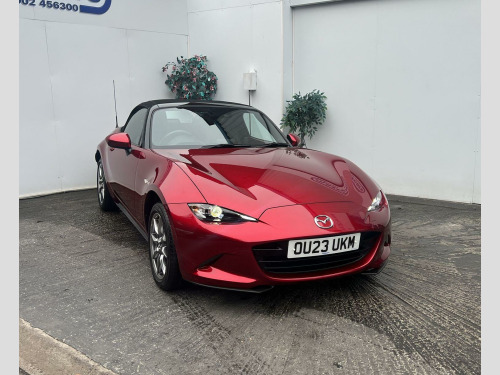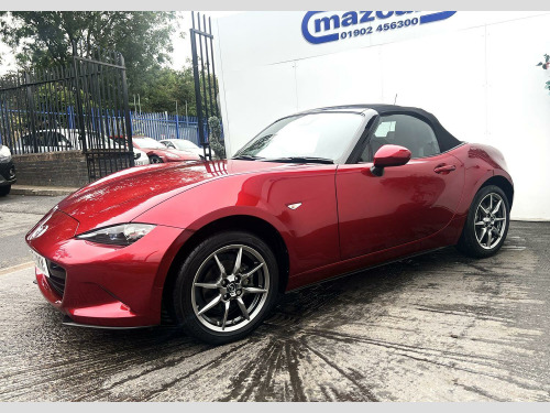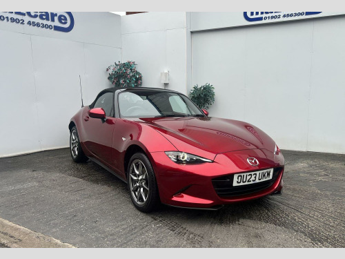Available now! 2023 Mazda MX5 1.5 Exclusive Line finished in Crystal Soul Red with contrasting black cloth hood and black leather. The car has covered just 4909 miles, serviced in May 2025 at Johnsons Mazda, is supplied with 2 keys and is HPI clear. The car benefits from a host of features including keyless entry, climate control air conditioning, cruise control, bluetooth, Carplay, cruise control, navigation. Iconic styling to legendary handling makes the Mx5 one of the best sports cars of all time and as a Mazda specialist we know how impressed customers are with their cars. Part exchange is welcome and finance options are available, for more assistance please call 01902 456300, visit www.mazcare.co.uk