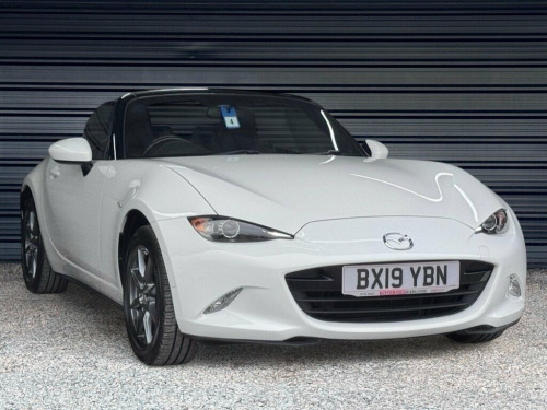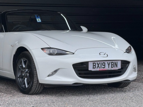 JUST ARRIVED & READY TO DRIVE AWAY! 2019/19 Mazda MX-5 1.5 SKYACTIV-G SE+ finished in Arctic White. We are pleased to offer this lovely 2 door sports convertible. This is the highly desirable and economical 1.5 litre model with a 6 speed manual transmission that offers 130 BHP and over 45 MPG. It has covered just 46,955 miles with service history (6 services) and drives as you would expect. Just serviced upon arrival. MOT until 28th September 2026 with no advisories. The car is ready to drive away. We will also include a complimentary 12 month AA breakdown cover. Two owners from new, the last owner has had the car since 2021. Euro 6 status - ULEZ compliant. A superb low mileage example with the sought-after SE+ specification. Key features include; A/C, USB, AUX, 16" gloss grey alloy wheels, keyless start, bluetooth connectivity, LED headlights and a multi-function steering wheel. Advertised below the AutoTrader RRP. Please let us know if you would like any further information or a video sent via WhatsApp. Please be aware many of our cars sell before the photos go live so please call or reserve to avoid any disappointment. Cloth - Black with Black Stitching, Arctic White, 16in Alloy Wheels - Silver, Air Conditioning - Manual, Air Conditioning Dials - Black, Air Vent Surrounds - Black, Analogue Speedometer, Automatic Passenger Airbag Deactivation , Auxiliary - AUX - and USB Input, Black Fashion Bars, Body Coloured Door Mirrors, Chrome Meter Rings, Coinbox, Convertible Top - Premium Cloth Soft Top, Cupholder - Front x1, DHS - Deployable Hood System, Door Mirrors - Power Operated and Heated, Double Pinion Electric Power Assisted St, Driver and Passenger Front Airbags, Dual Exhaust System, Dynamic Stability Control - DSC - with T, Electric Windows - One Touch Auto Down, Emergency Tyre Repair Kit, Engine Start-Stop