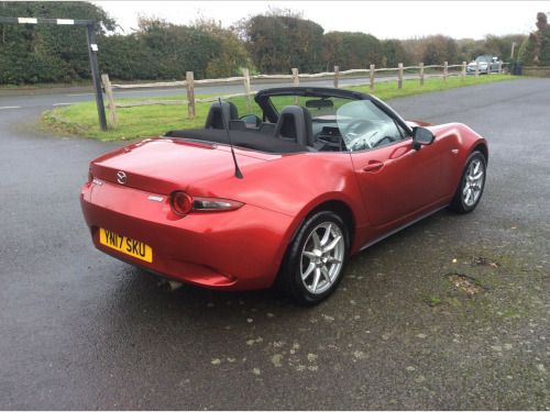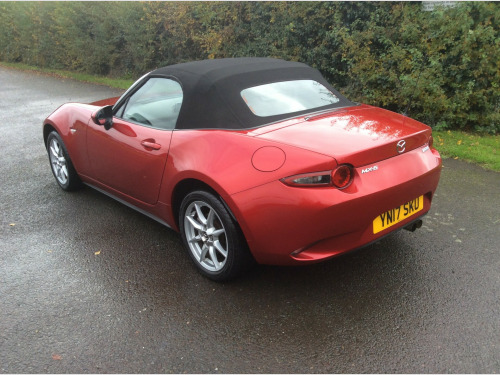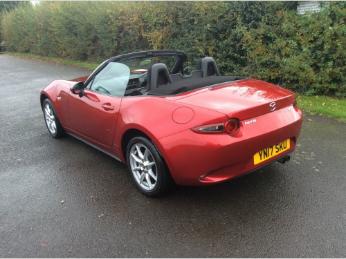 This 2017 Mazda MX-5 1.5 SE 2dr convertible has covered just 34,000 miles and is finished in Soul Red. Fitted with air conditioning and powered by a petrol engine, this sleek 2-seater with 2 doors is ULEZ compliant and also comes with a new MOT. If this particular vehicle doesn't align with your preferences, we encourage you to explore our extensive website, which features over 25 MX-5 models in stock. For our comprehensive stock list, please visit our website at www.maidstoneautocentre.co.uk. Please note that some of our cars are stored off-site, so it's advisable to give us a call before your visit to confirm their availability. All our cars come with a comprehensive 12-month AA breakdown cover, and we also offer various finance and extended warranty packages to suit your needs. in alloy wheels - silver, body coloured door mirrors, convertible top - premium cloth soft top with heated rear window - manually operated, dual exhaust system, electric windows - one touch auto down, electrically adjustable-heated door mirrors, emergency tyre repair kit, fashion bar cladding, fuel filler lid - body colour, windblocker, air conditioning - manual, air conditioning dials - black, air vent surrounds - black, chrome meter rings, coinbox, cupholder - front, engine start-stop button, gear knob - leather with chrome surround, handbrake - leather wrapped, inner door handles - satin silver, interior courtesy light, seats - drivers manual slide-recline and tilt adjustment, seats - front passenger manual slide and recline adjustment, steering wheel - leather with chrome bezel, steering wheel - mounted audio controls, steering wheel - tilt adjustment, storage - rear centre box with lockable lid, sunvisors - drivers and passengers with covered vanity mirror-ticket holder, upper door trim - black, wipers - front adjustable speed with intermittent, analogue speedometer, double pinion electric power assisted steering - dp-epas, gear shift indicator, trip computer, tyre pressure monitoring system, automatic passenger airbag deactivation system, dhs - deployable hood system, driver and passenger front airbags, dynamic stability control - dsc - with traction control system - tcs, four-wheel anti-lock braking system - 4w-abs with electronic brake-force distribution - ebd, hill hold assist, isofix child seat anchorage - passenger seat, remote central locking with deadlocking and remote boot release, skyactiv-body engineered triple h body structure to help protect occupants from impact forces, srs - supplementary restraint system, seatbelts - 3 point - elr - 2x with pre-tensioners, seatbelts - reminder screen with audible warning, side airbags, thatcham category 1 alarm and immobiliser, auxiliary - aux - and usb input, multimedia system, usb - ipod connectivity, halogen daytime running lights, headlights - coming-leaving home, headlights - led with auto headlight levelling, rear brake light - high mounted