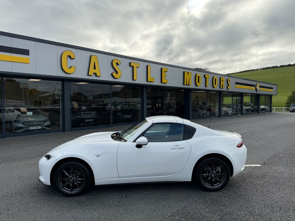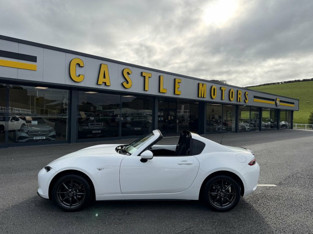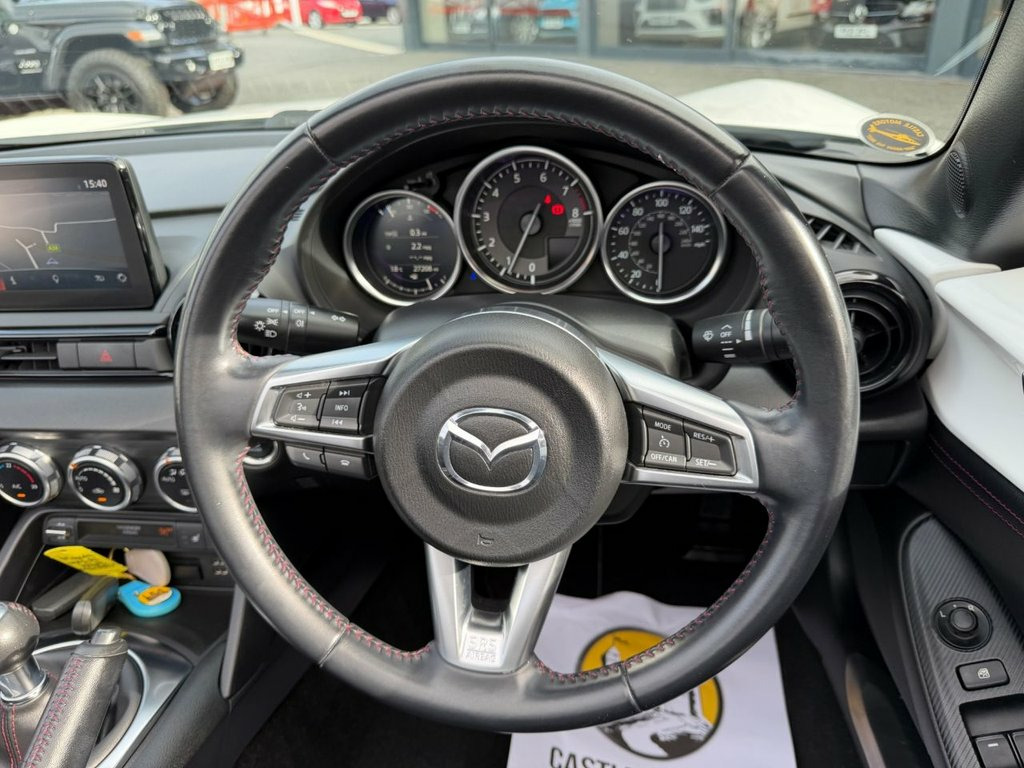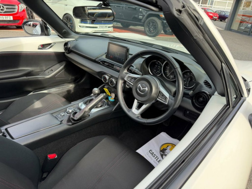 RF 1.5 SE-L Model in White with Black trim stitched Red, Anthracite wheels, Black spoiler, Navigation, Bluetooth, USB Media, heated seats, climate control AC, cruise control, wind deflector, cup holders, MX5 premium mats, stainless MX5 entry guards and more. Power folding RF Targa convertible roof model covered just 27,200 miles with excellent service history and serviced before sale including beautiful condition throughout